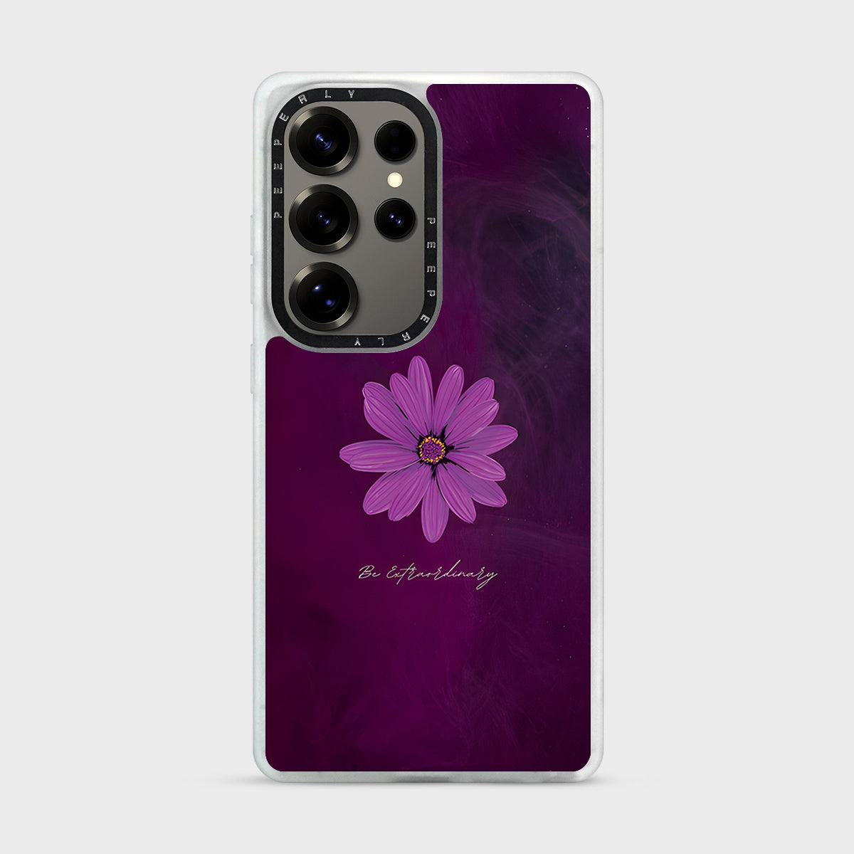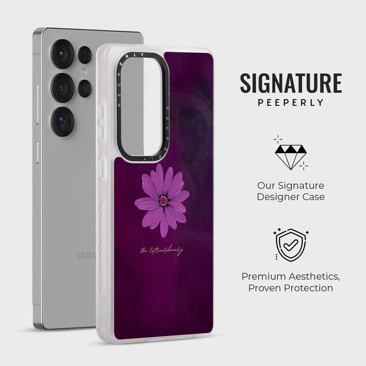 Extraordinary Bloom celebrates individuality and inner beauty— a radiant violet flower set against a deep, velvety backdrop, paired with a gentle reminder to rise beyond the ordinary. The design conveys confidence, grace, and quiet strength, inspiring self-expression and personal growth with timeless elegance.