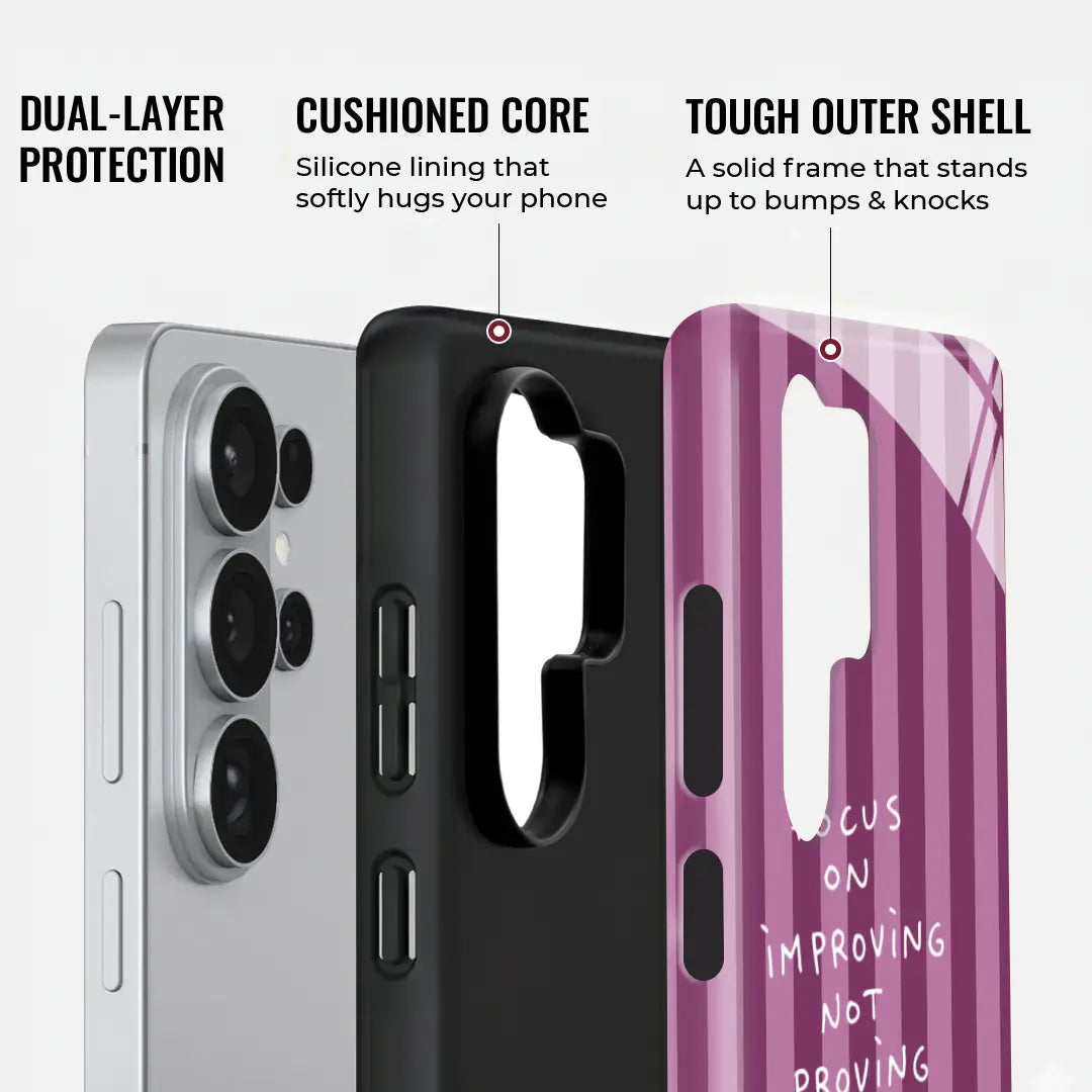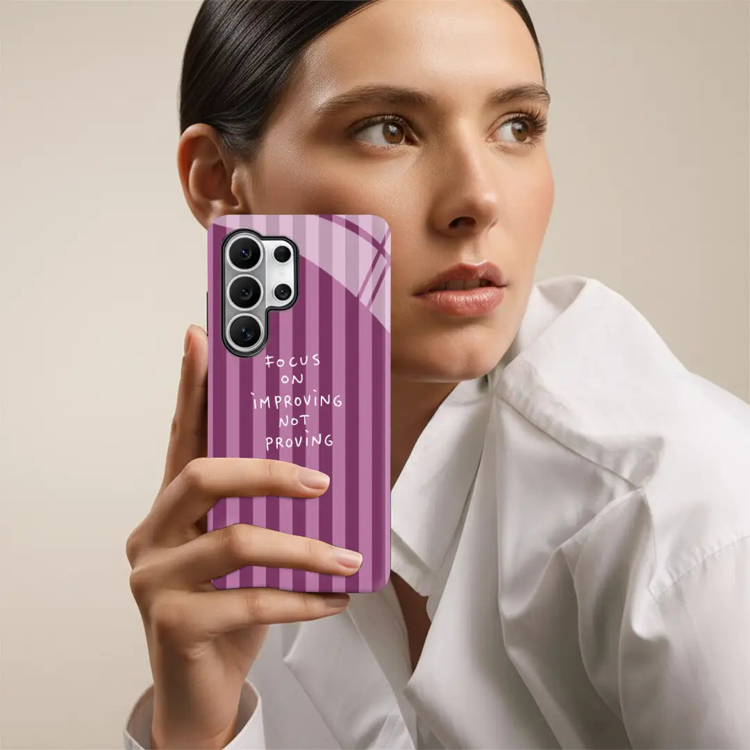 Stay inspired and grounded with the Focus Forward Case, a minimalist phone case designed to remind you that progress matters more than perfection. Featuring a clean striped background and a thoughtful motivational quote, this design encourages a growth mindset and daily self-improvement.