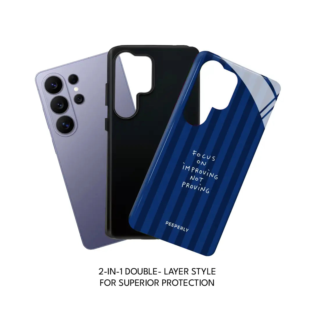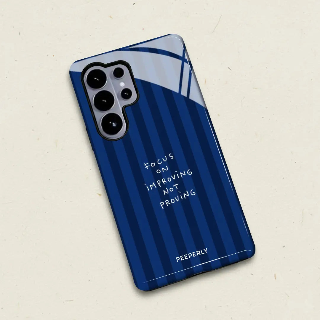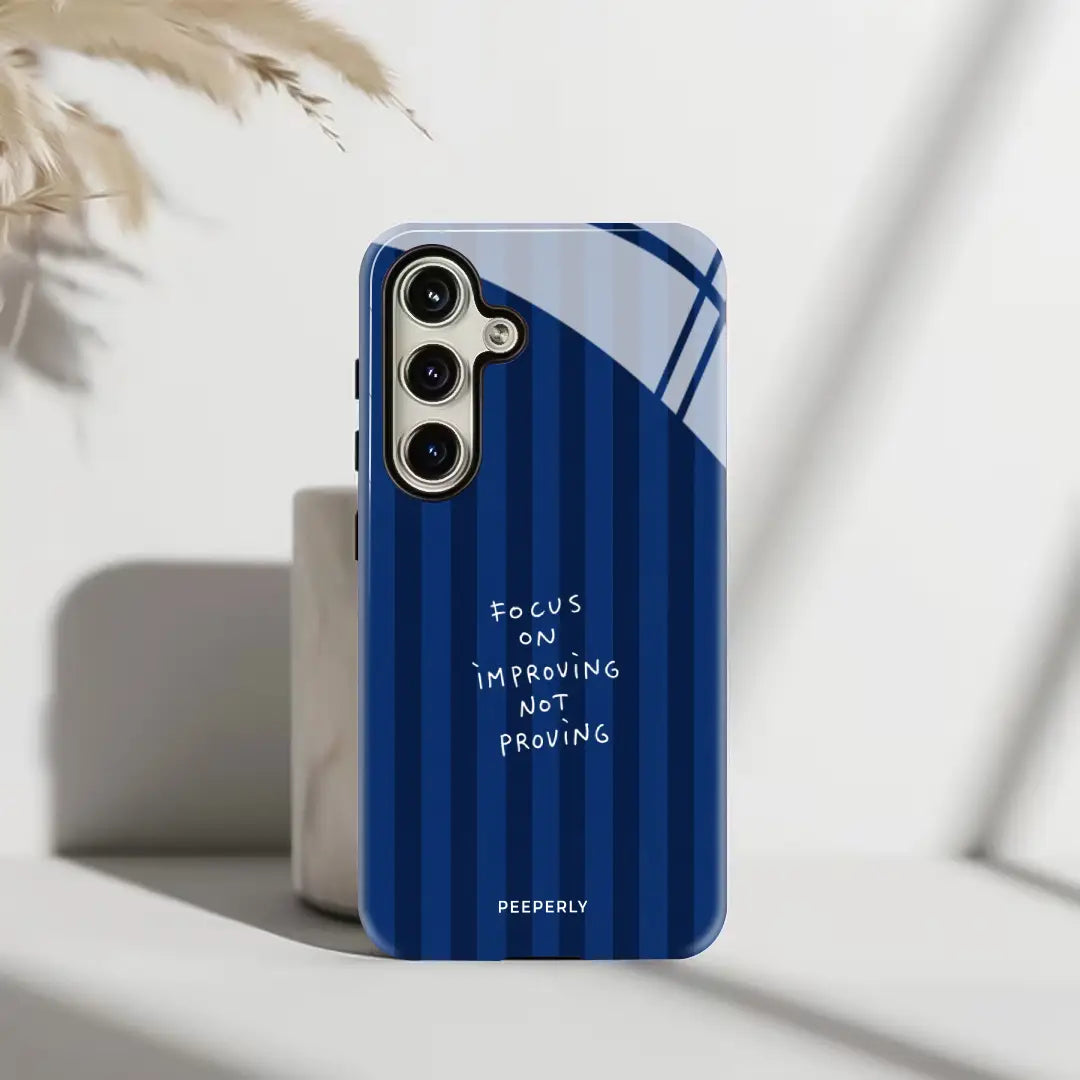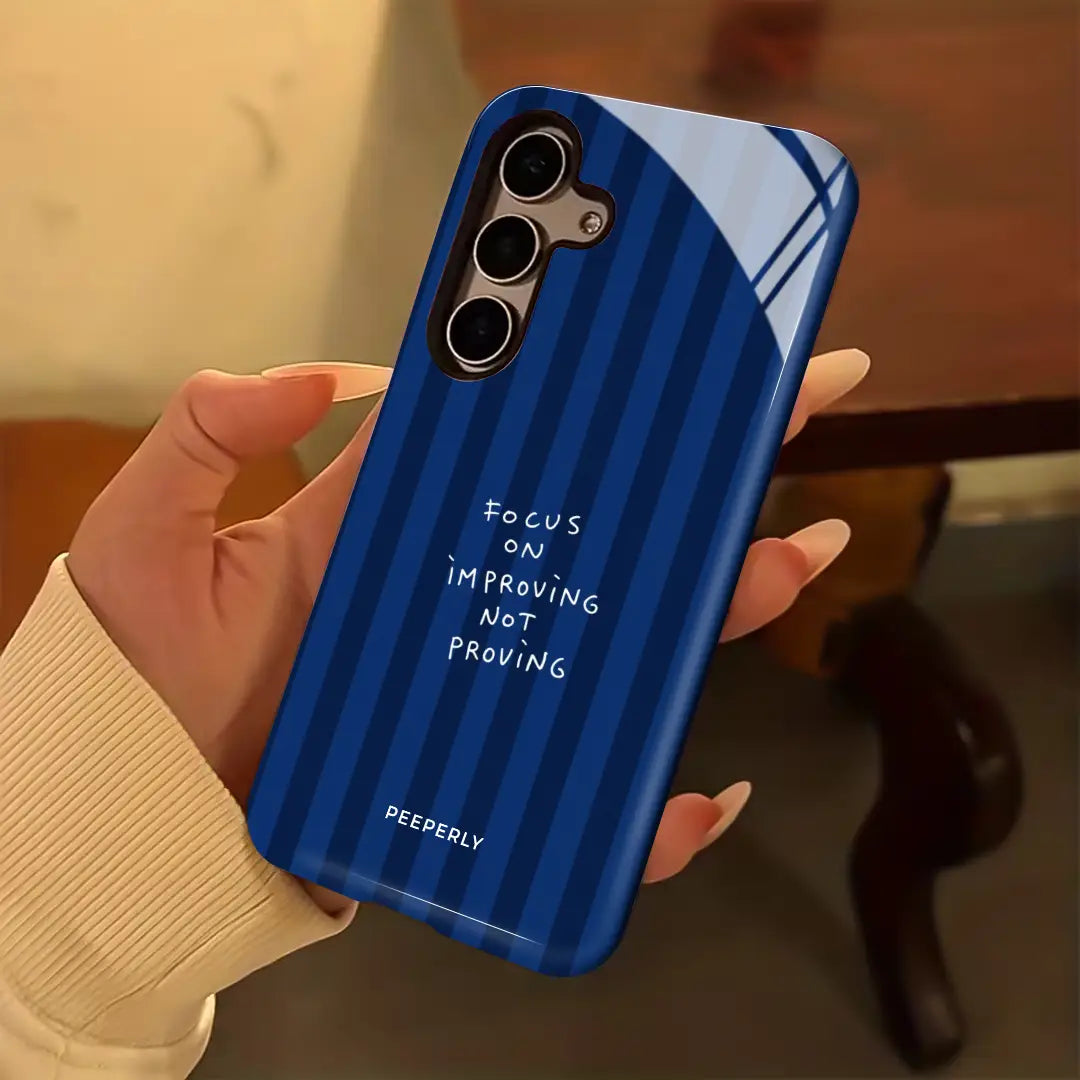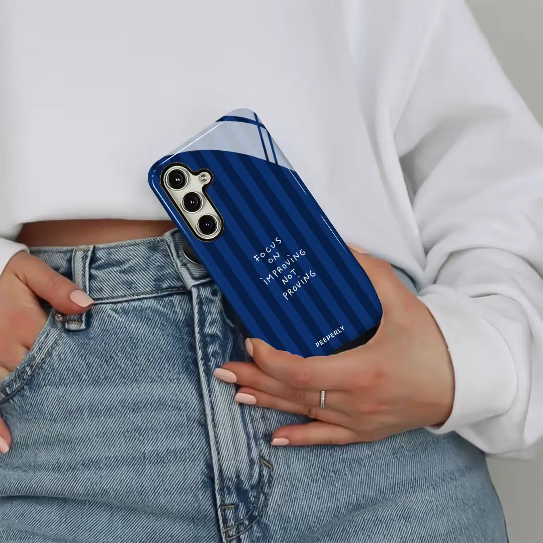 Calm, intentional, and power-driven. Focused Becoming is a reminder that growth is a journey — not a performance. Set against deep navy tones, the minimalist handwritten affirmation reflects quiet discipline and steady self-improvement.