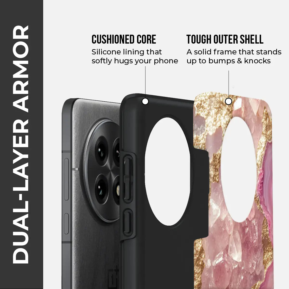 Elevate your everyday style with the Gemstone Glow Case, a masterpiece that captures the natural beauty of radiant crystals and soft pink hues. Inspired by raw gemstones and golden minerals, this case shimmers with a luxurious glow that’s both modern and timeless.