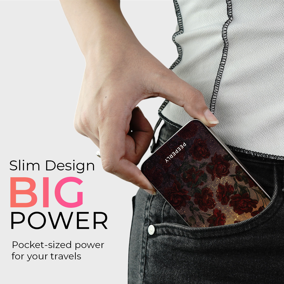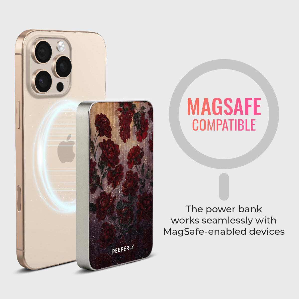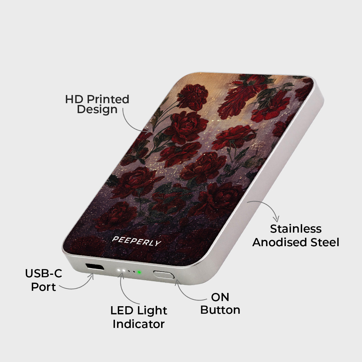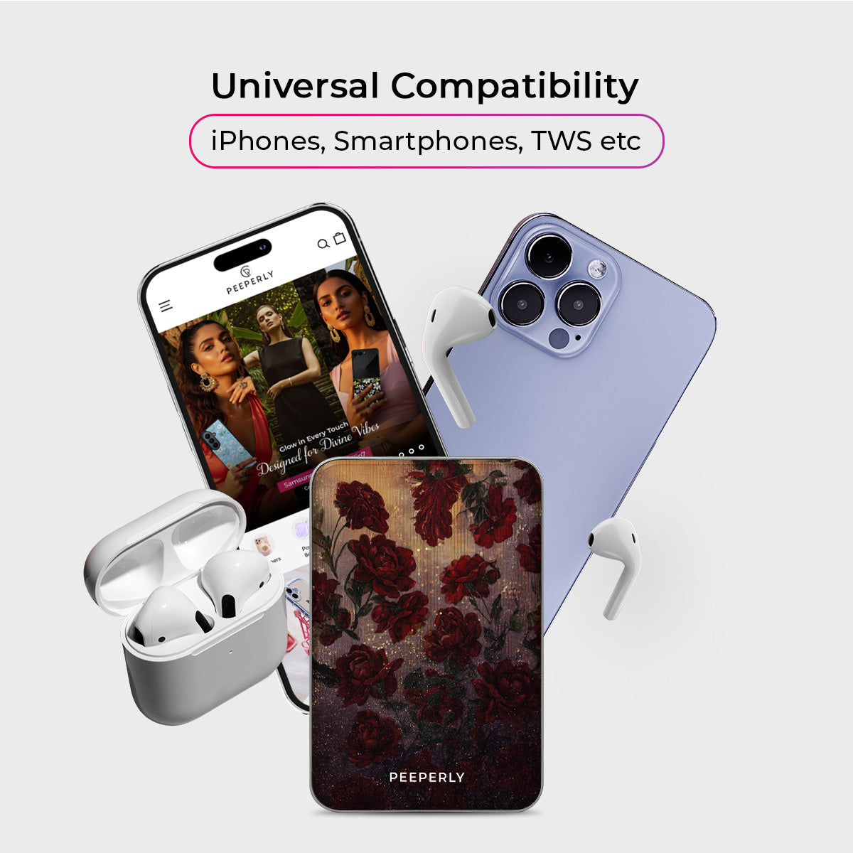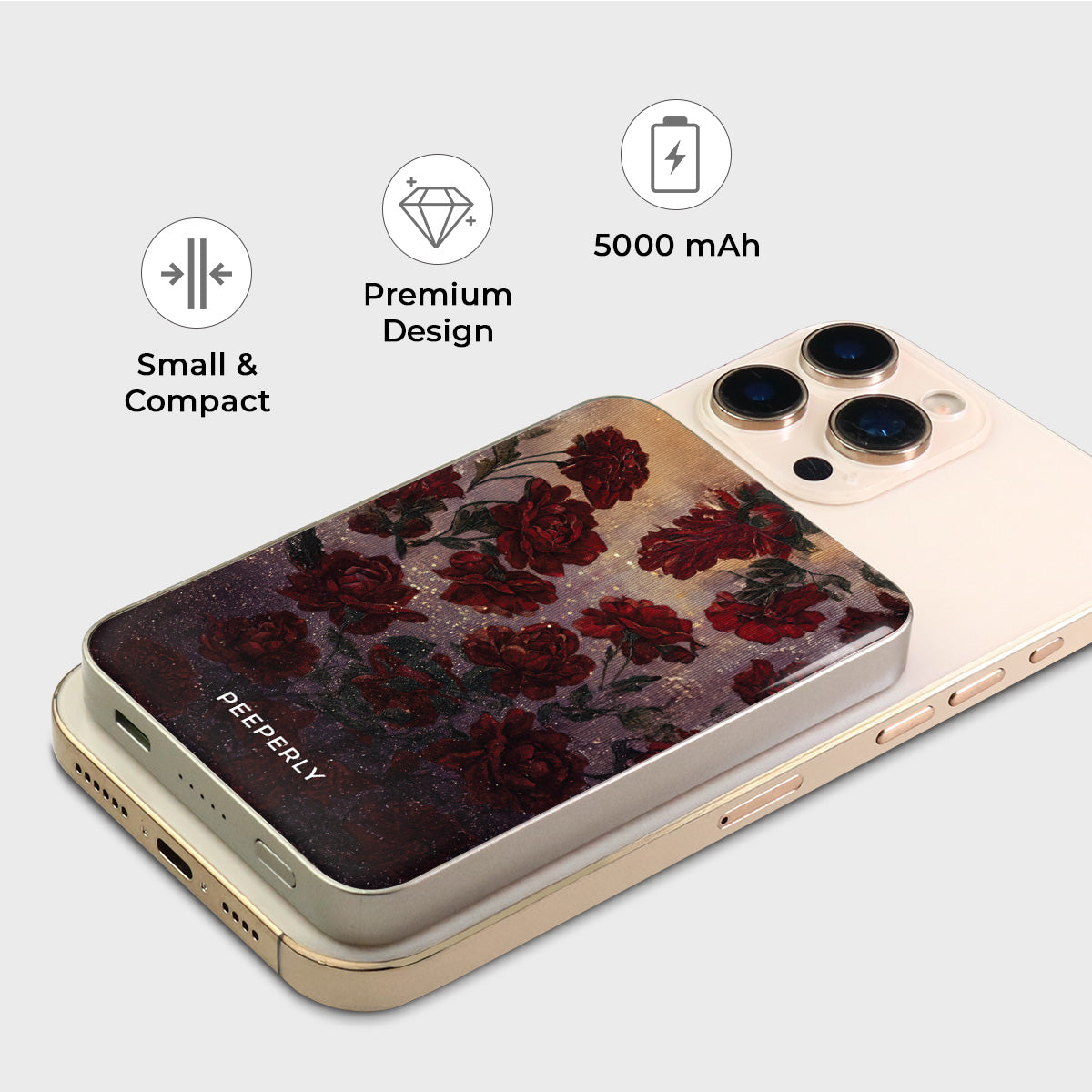 Elevate your charging style with the Gilded Roses magnetic power bank. Featuring a graceful rose-inspired design with a luxe touch, it blends elegance with dependable performance. Lightweight, portable, and easy to snap onto your device, it keeps your essentials powered while adding a hint of sophistication to your everyday carry.