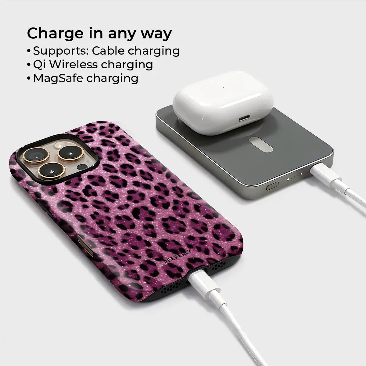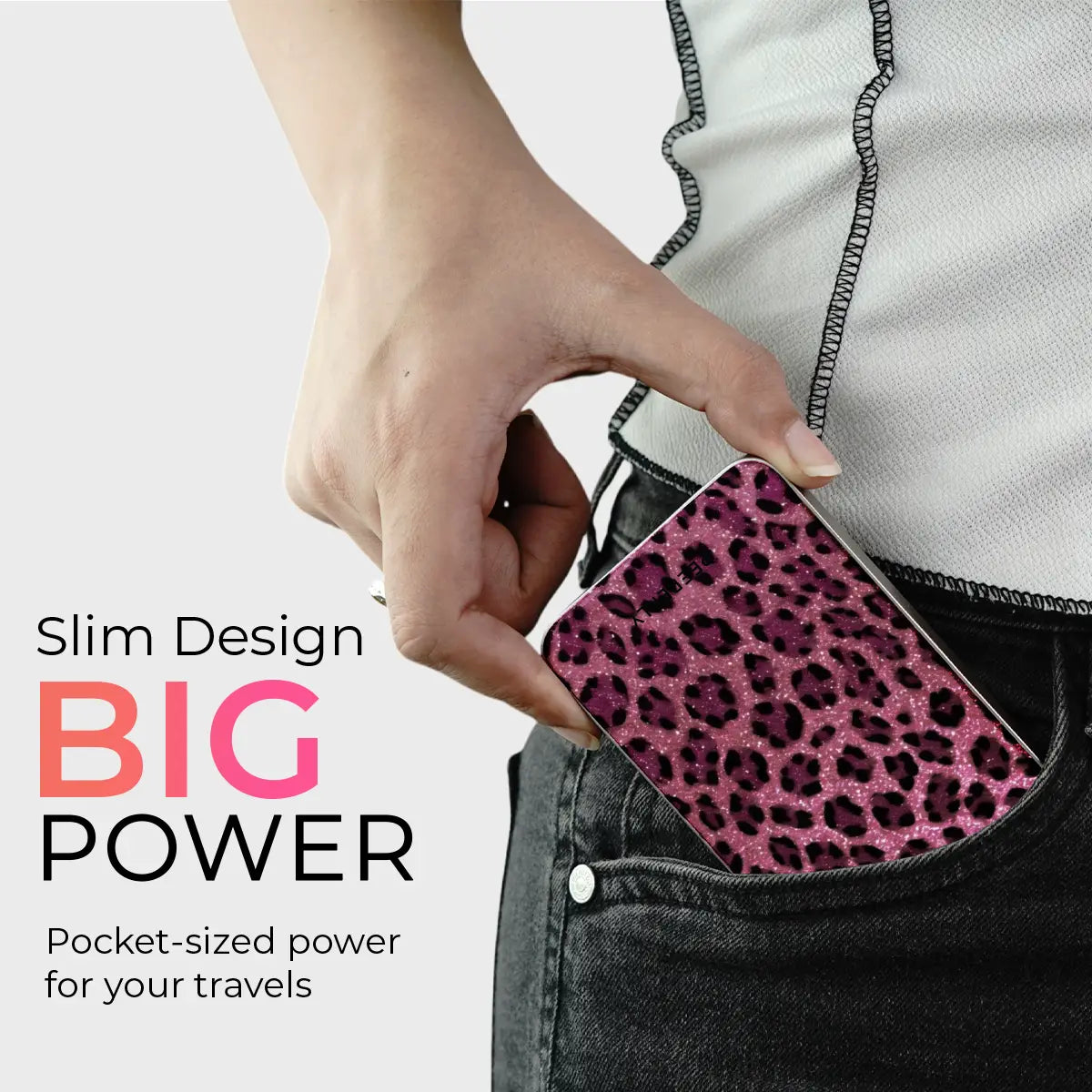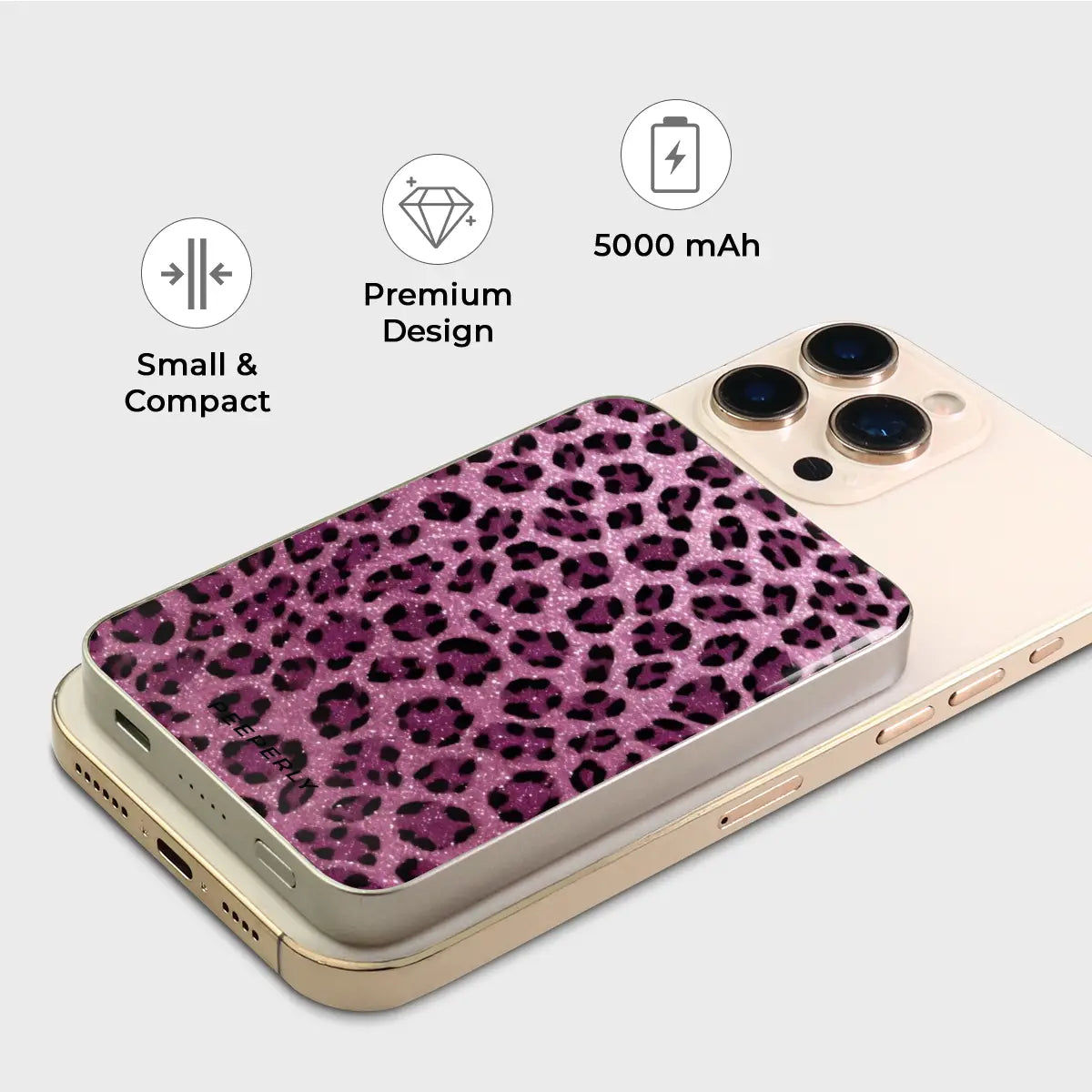 Designed with strong magnetic snap-on charging for effortless convenience, this slim and lightweight power bank delivers power with personality. Glitter Leopard is made for those who love statement pieces, glam energy, and unapologetically bold style.