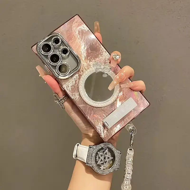 Turn your phone into a statement accessory with the Glossy Glam Mirror Reflect Case. Designed with a stunning pearlescent pink finish that shimmers beautifully under any light, this case delivers the perfect blend of elegance and sparkle.