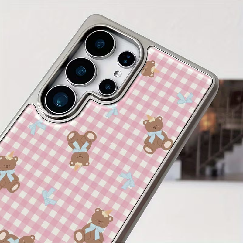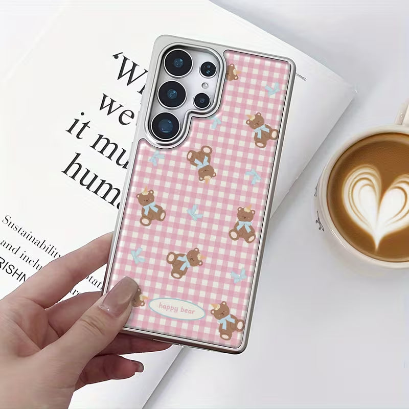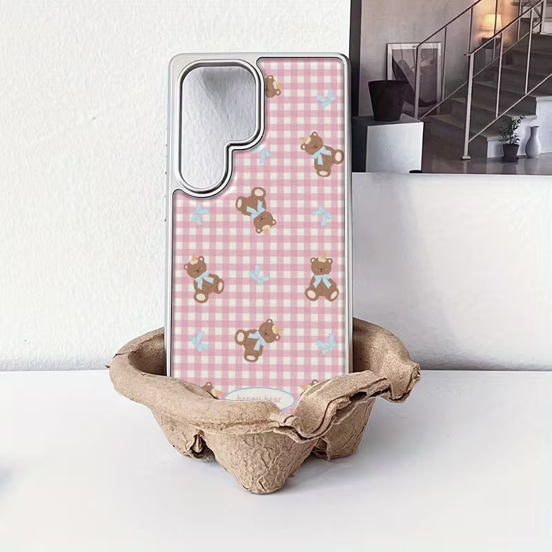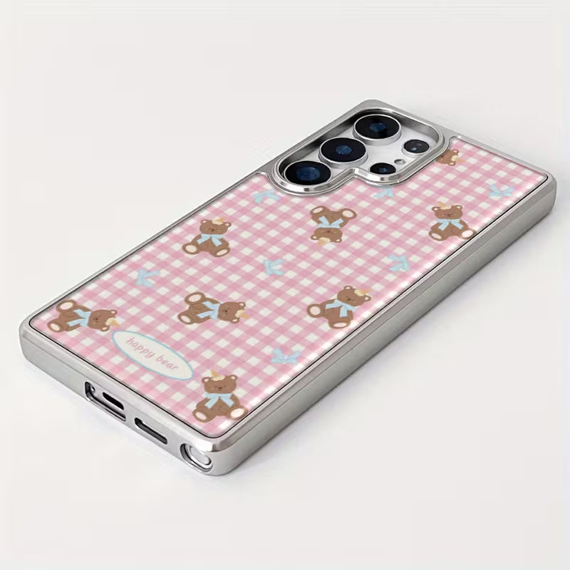 Bring a touch of sweetness to your everyday style with the Happy Bear Case. Featuring an adorable teddy bear pattern on a soft pink gingham background, this case radiates cozy, playful charm. The gentle pastel tones and cute details make it perfect for anyone who loves cheerful aesthetics and comforting designs.
