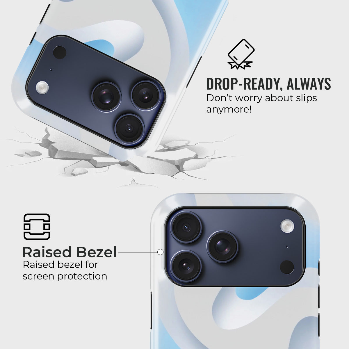 Glide into a world of cool elegance with Icy Drift, a phone case inspired by the tranquil motion of frozen waves. Its flowing white and sky-blue design creates a serene, minimalist aesthetic that feels both refreshing and refined.