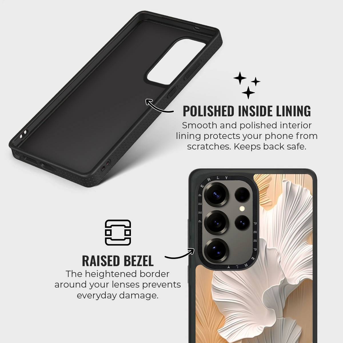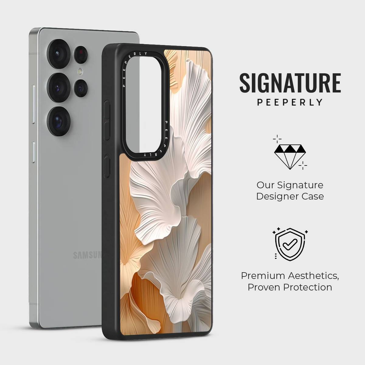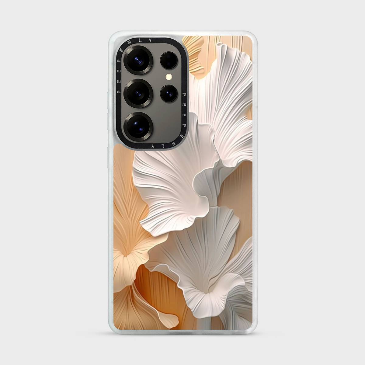 Graceful and modern, the Ivory Flourish Case showcases an elegant sculpted floral design in soft ivory and warm neutral tones. Inspired by flowing petals and organic textures, it adds a refined, artistic touch to your phone while keeping the look clean and contemporary. Perfect for those who love subtle luxury with everyday practicality.