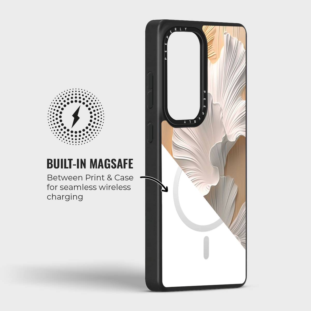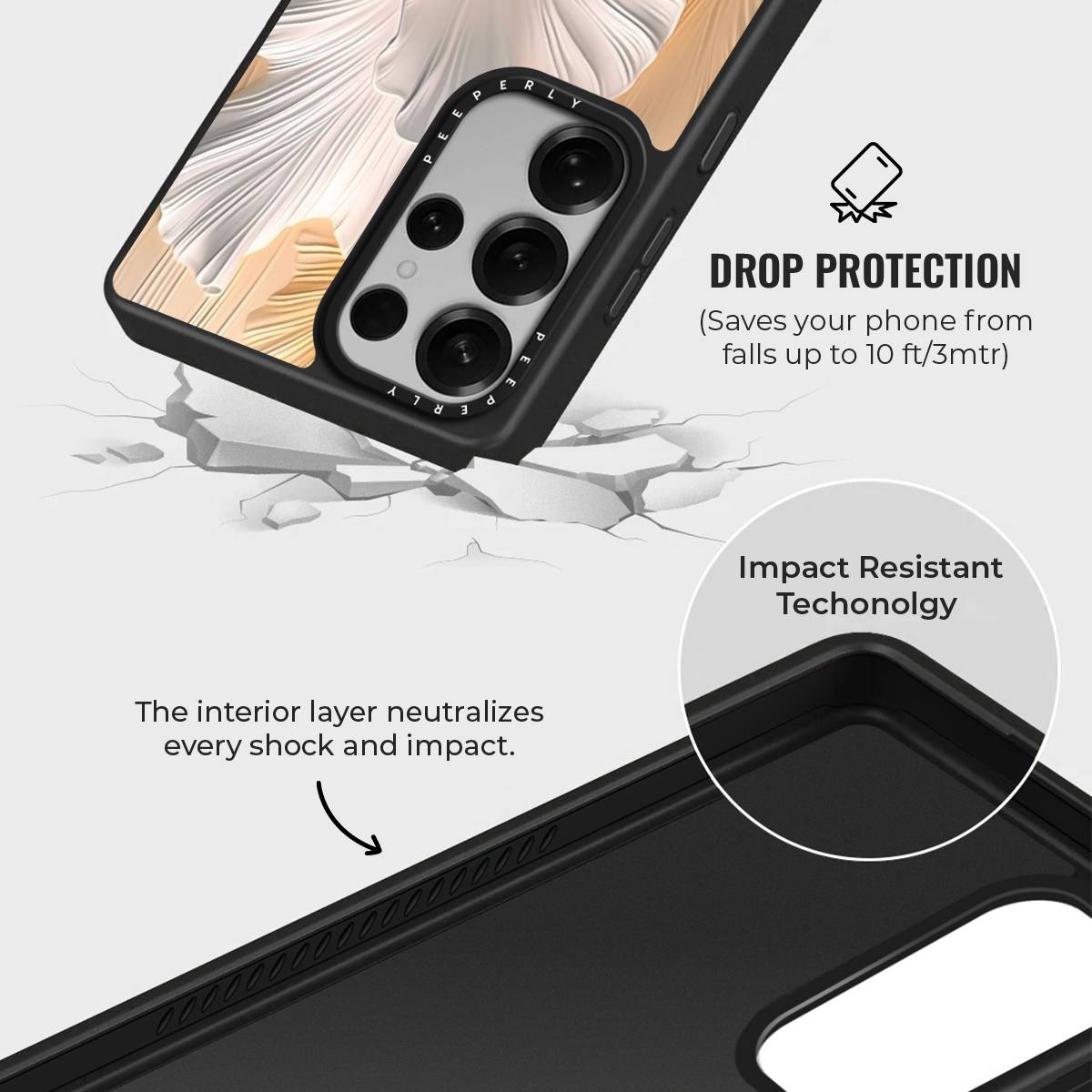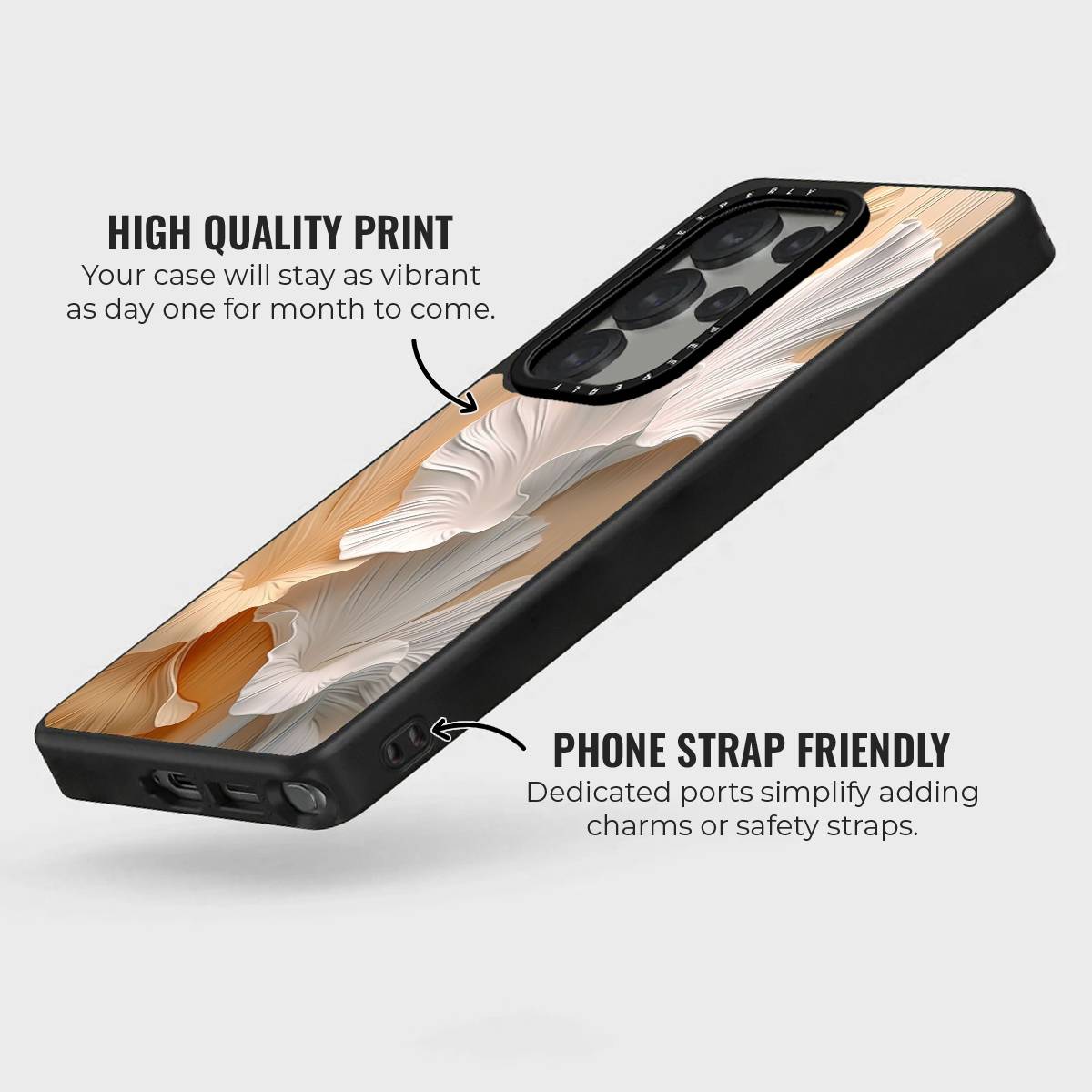 Graceful and modern, the Ivory Flourish Case showcases an elegant sculpted floral design in soft ivory and warm neutral tones. Inspired by flowing petals and organic textures, it adds a refined, artistic touch to your phone while keeping the look clean and contemporary. Perfect for those who love subtle luxury with everyday practicality.
