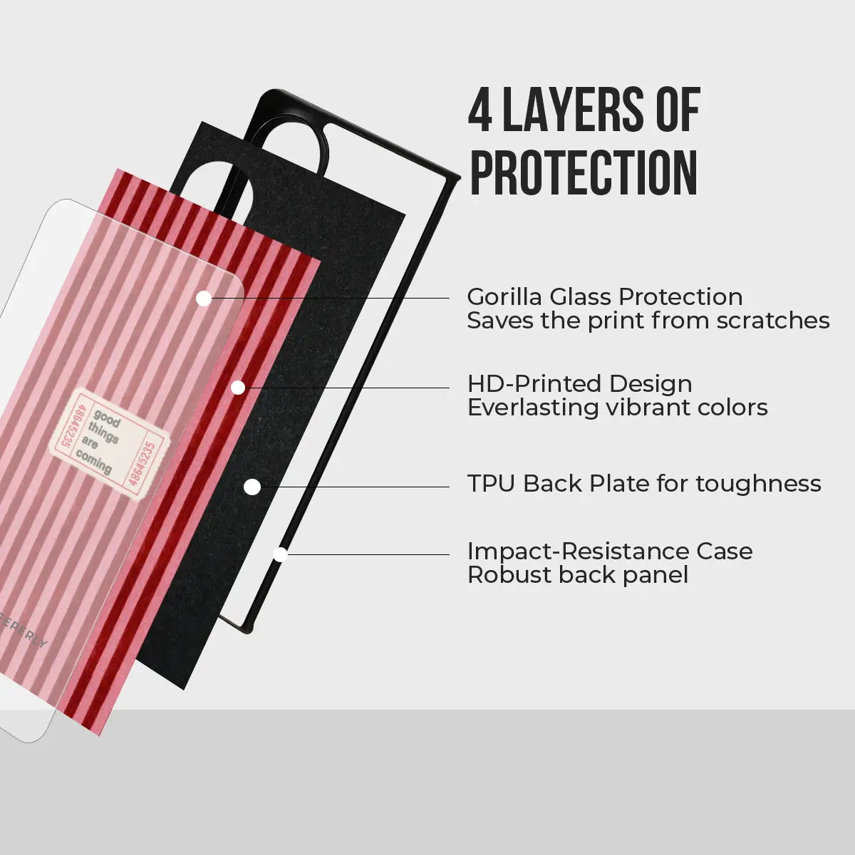 - TPU Back Plate – Tough yet flexible layer for shock absorption.
