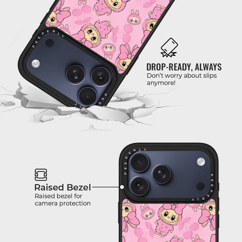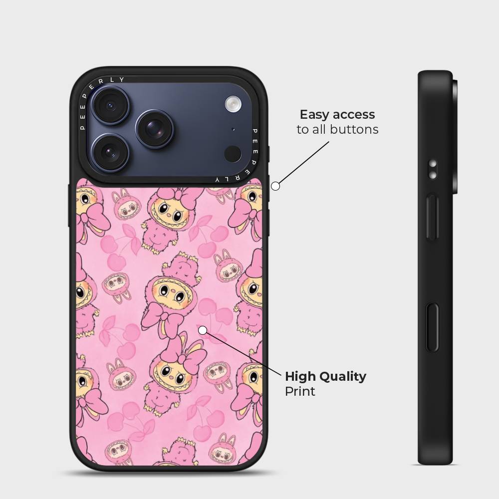Step into a world of whimsical charm with Labubu Blush – the ultimate phone case for those who adore mischief wrapped in cuteness! Drenched in a dreamy blush pink, this case features your favorite Labubu characters all dressed up in fluffy costumes, bows, and bunny ears, creating a delightful all-over print that’s impossible to ignore.