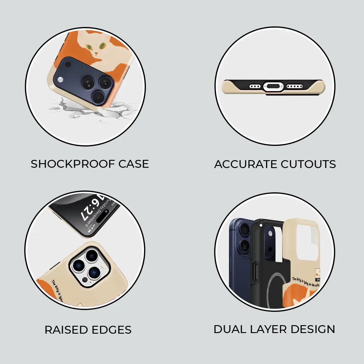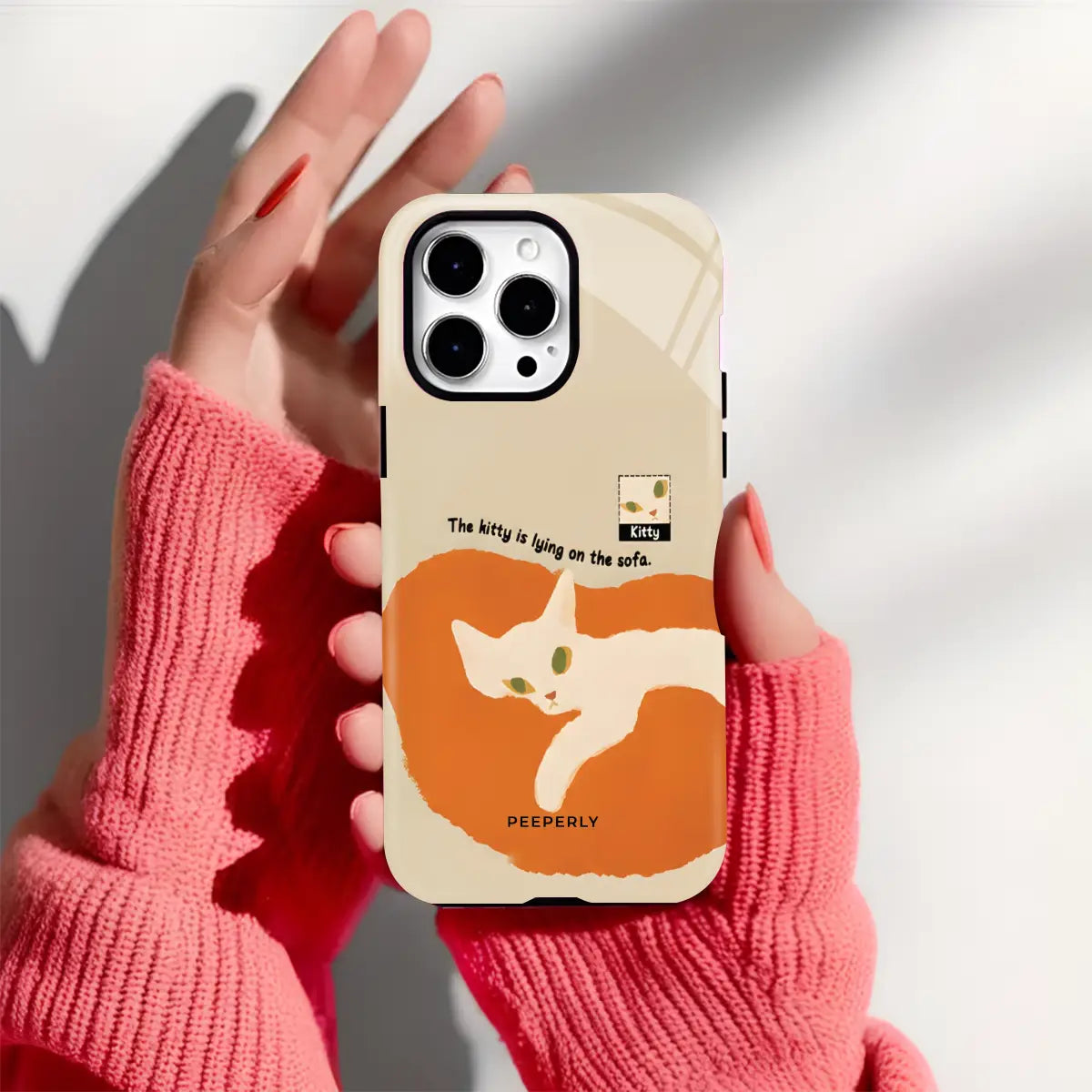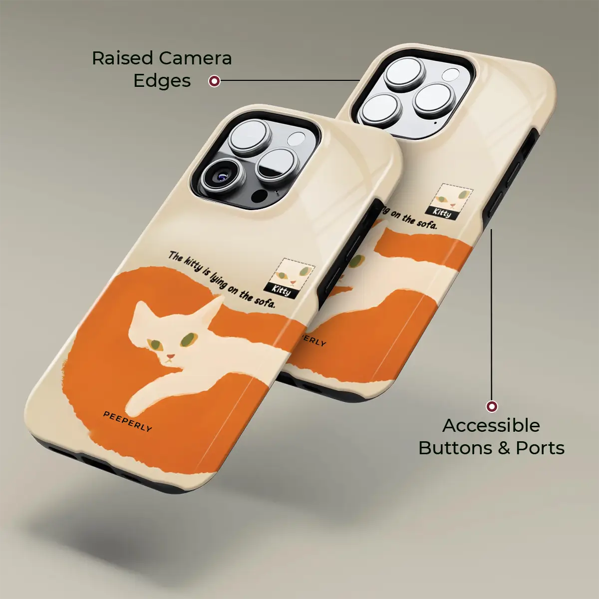 Relax into cozy charm with the Lazy Cat Case, designed for those who love calm moments and cute aesthetics. Featuring an adorable lounging cat illustration in warm, soothing tones, this case brings a playful yet peaceful vibe to your everyday style.