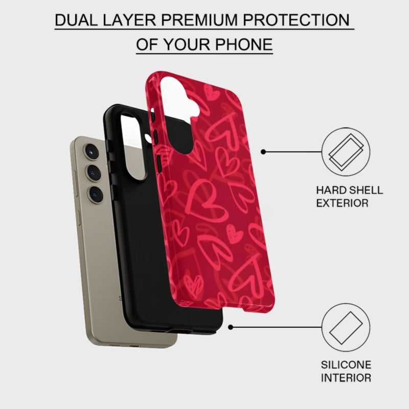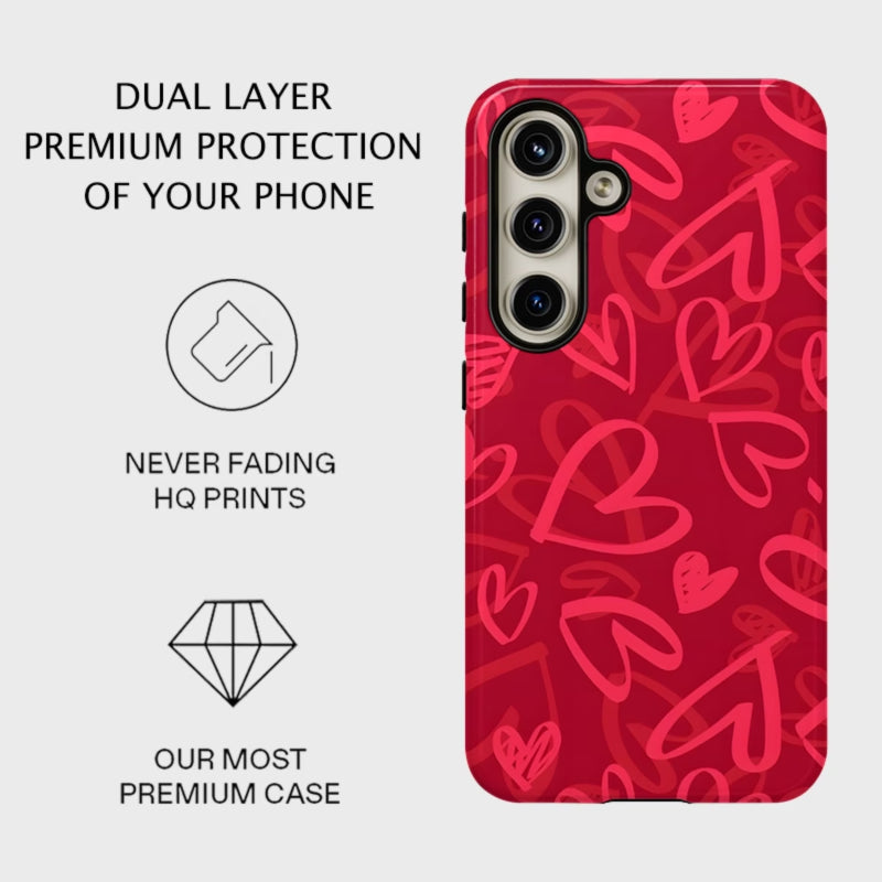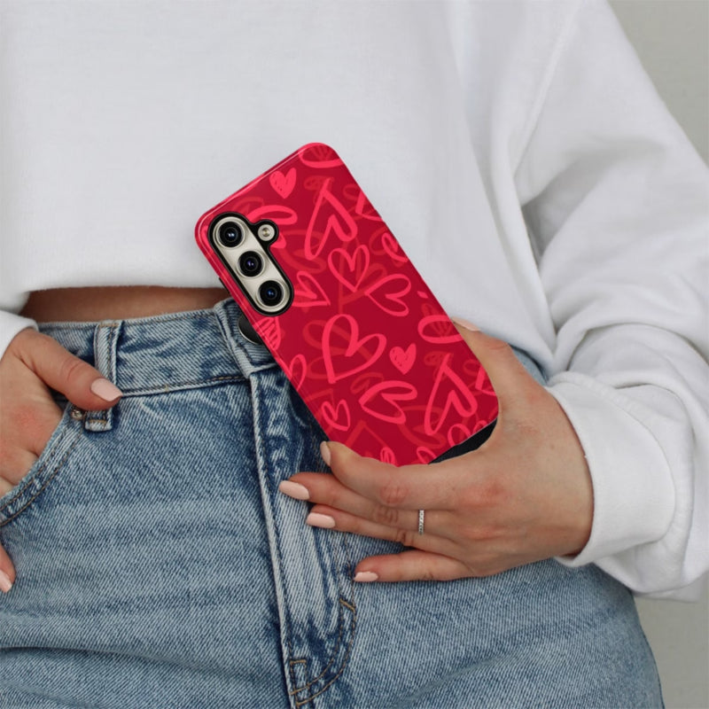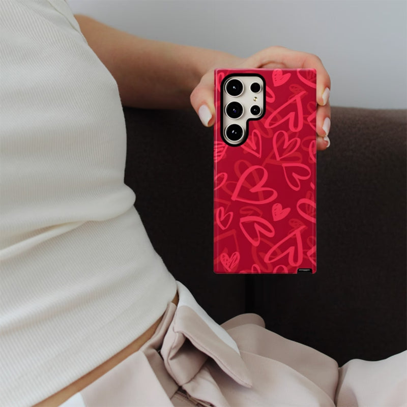 Love Rush brings playful romance to your everyday style with its lively heart-filled design. The bold pattern captures the thrill of affection, making it the perfect case for those who wear their passion proudly while keeping their phone protected in style.