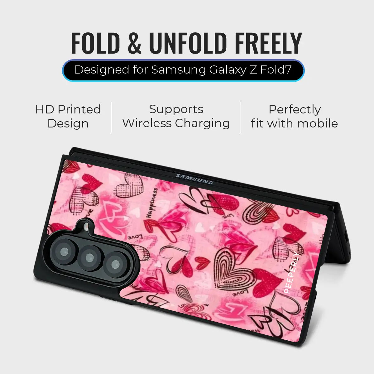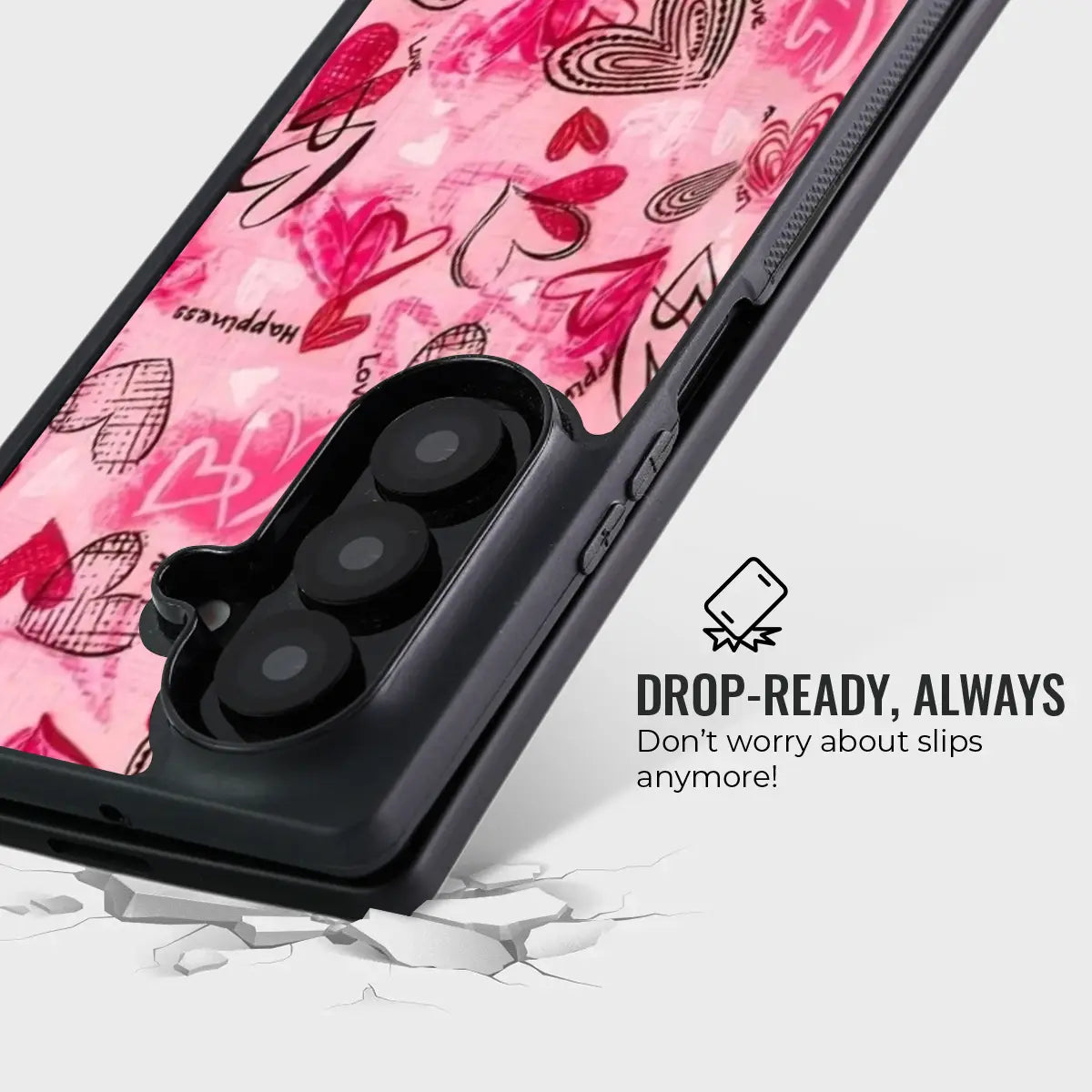 A playful collage of hand-drawn hearts, sweet words, and blush-pink textures that feels spontaneous and full of emotion. This design captures the joy of messy love notes, doodled feelings, and carefree romance—perfect for hearts that like to show their soft, expressive side.