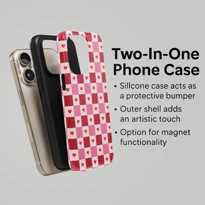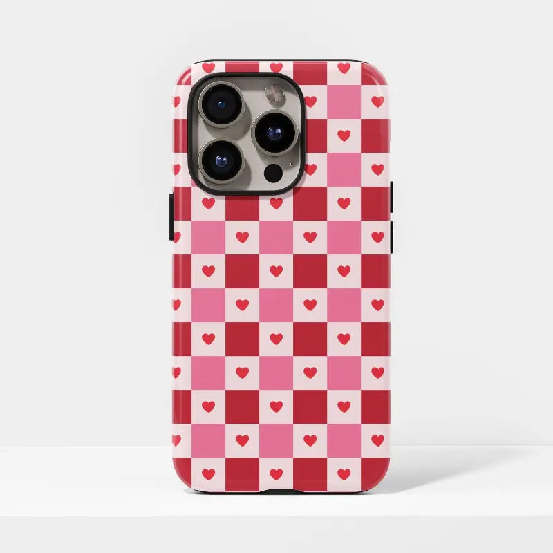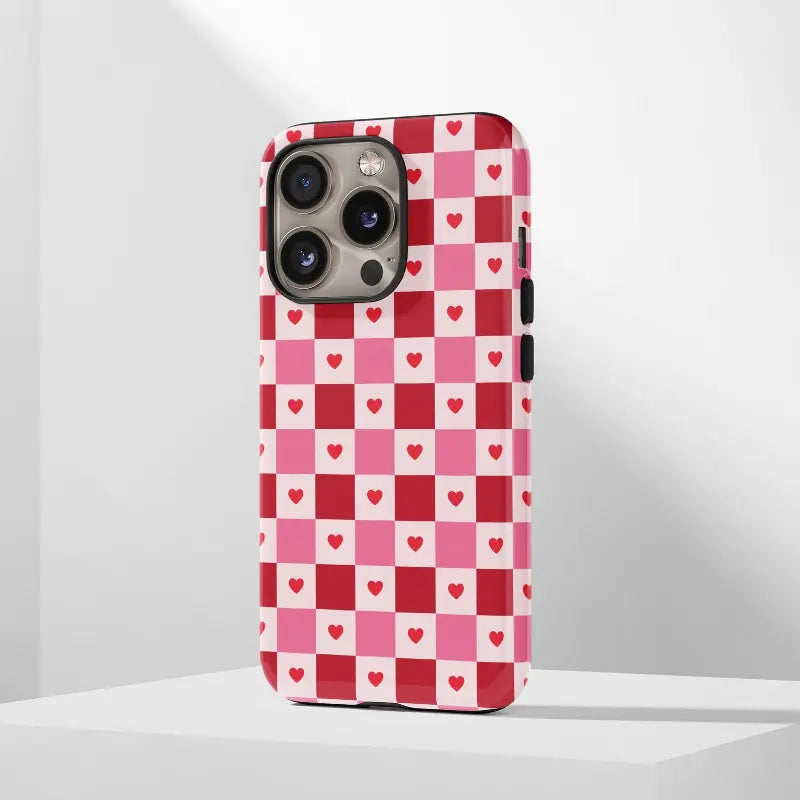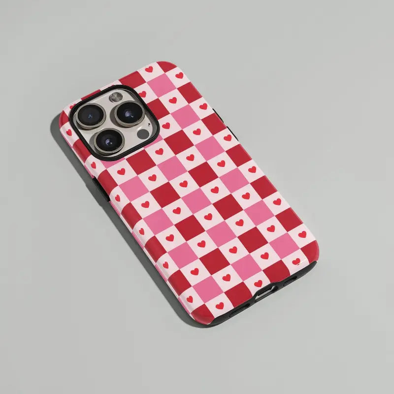 Love Squares features a classic checkerboard pattern reimagined with soft pinks, rich reds, and tiny scattered hearts. The repeating grid gives the design a bold, graphic feel, while the heart details keep it light, romantic, and fun—like a vintage picnic tablecloth with a modern twist.