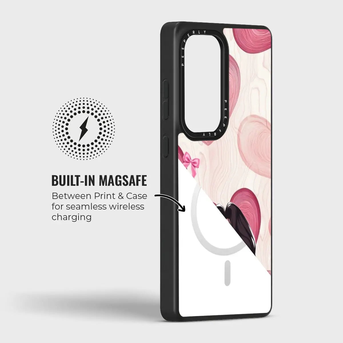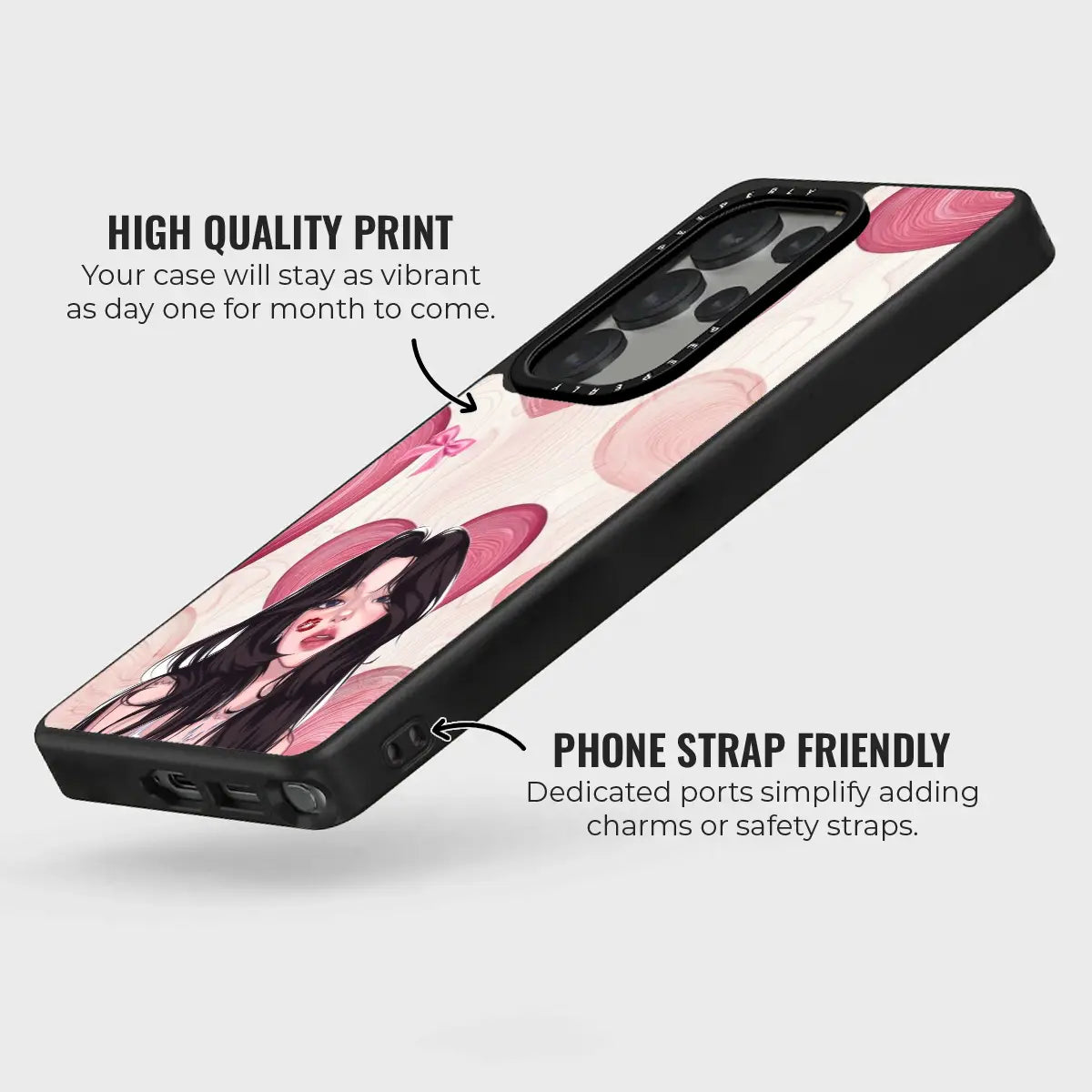 A dreamy blend of soft blush tones and romantic heart motifs, Lovestruck Glow captures the feeling of being beautifully caught in a moment of love. The elegant illustration and warm pink hues create a gentle, glowing aesthetic that’s equal parts confidence and charm—perfect for those who wear their heart with style.