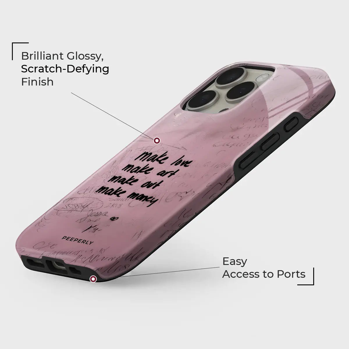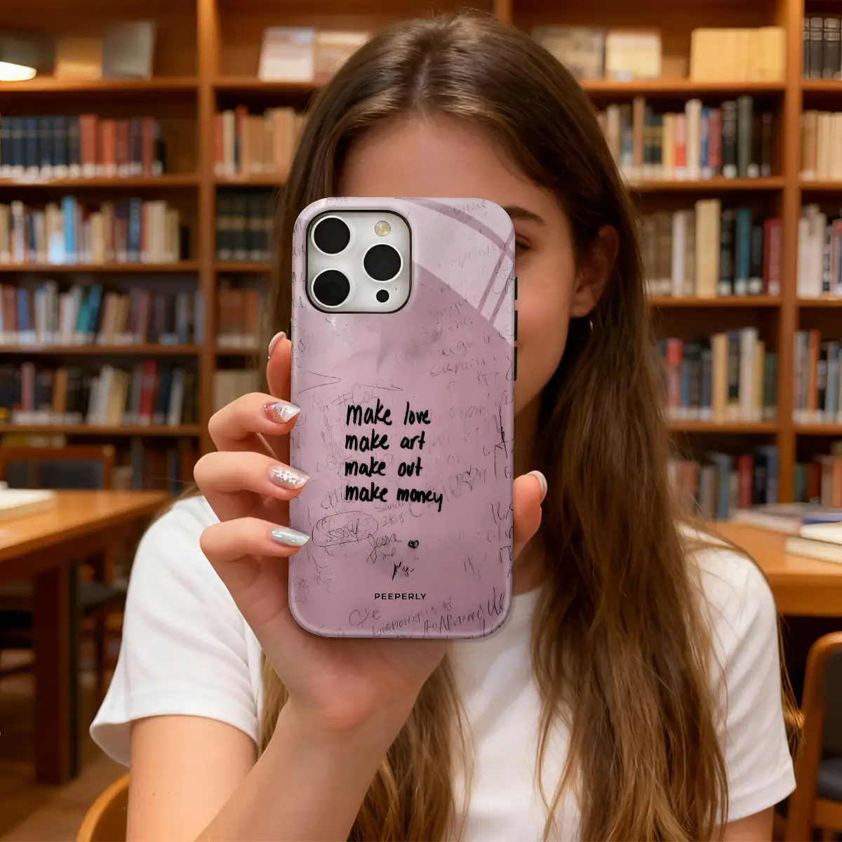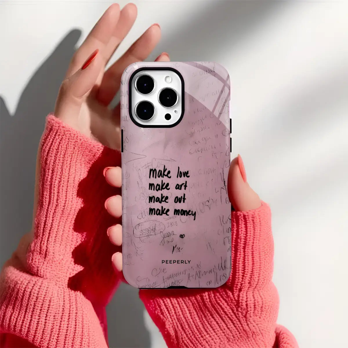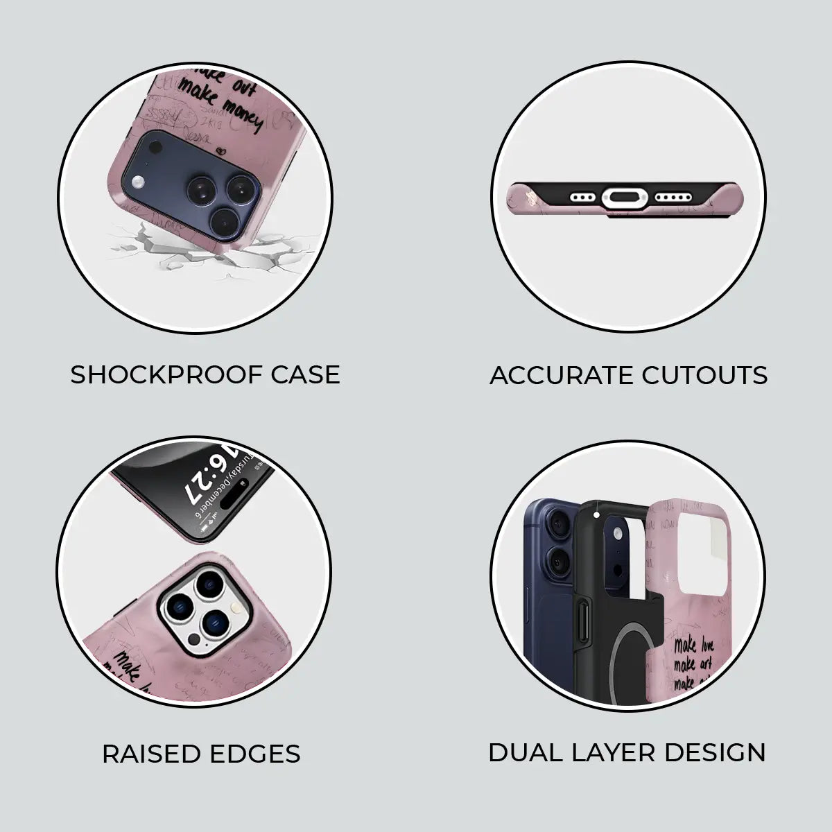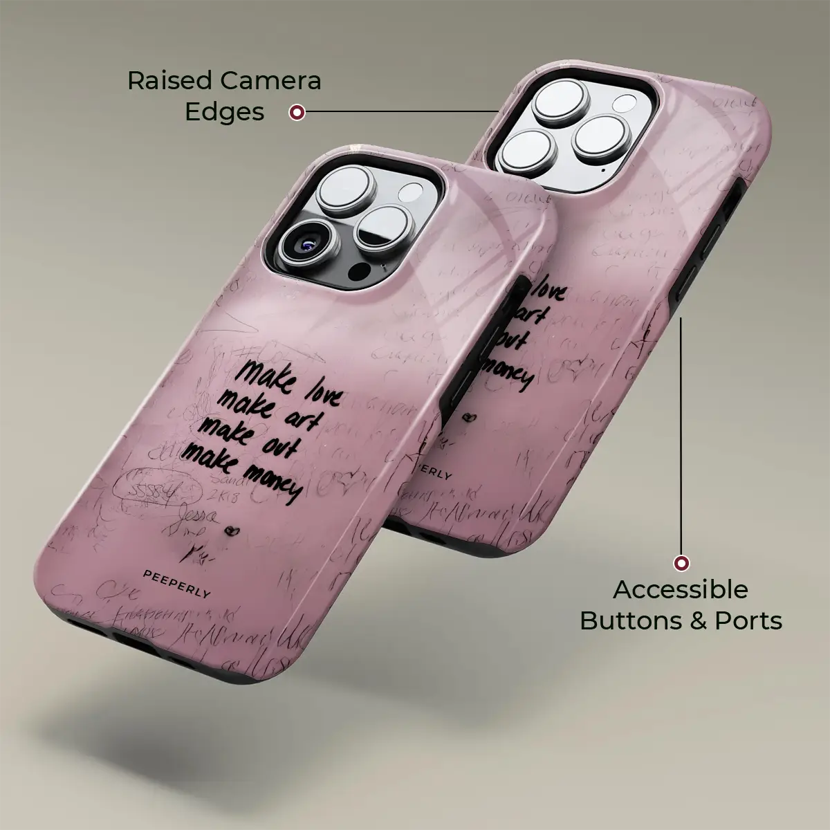 Turn everyday moments into inspiration with the Make Magic phone case. Featuring a soft pink background with expressive handwritten-style notes and a bold motivational quote, this design captures the spirit of creativity, passion, and fearless self-expression.