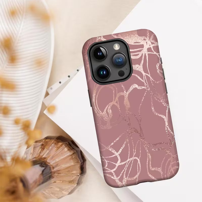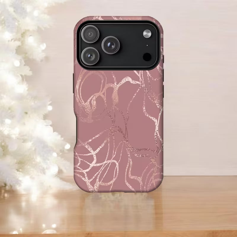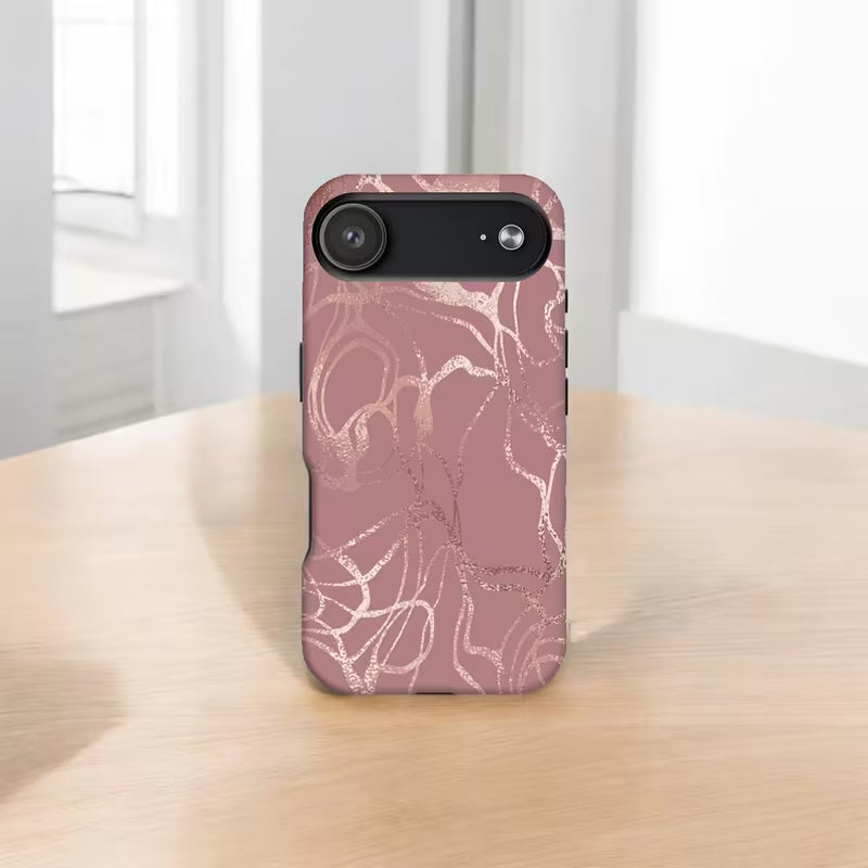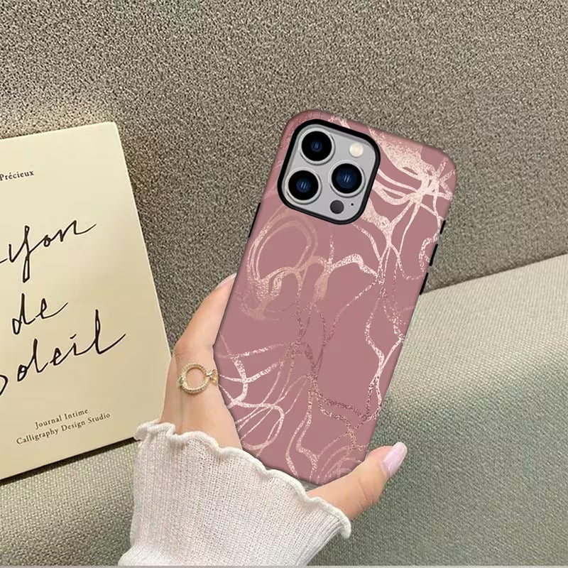 Mauve Serenity captures the beauty of calm elegance with its soft mauve base and delicate flowing line art. Designed for those who love understated luxury, this case blends a soothing color palette with a refined artistic touch.