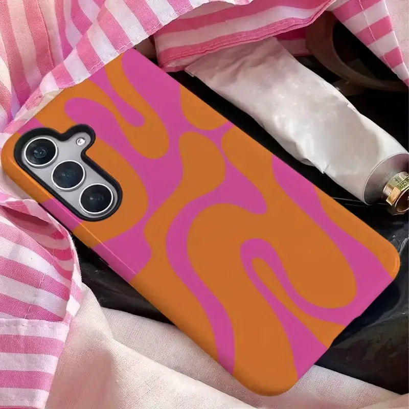Bold, fluid, and unapologetically modern, the Modern Lava Case draws inspiration from molten forms and retro color play. Its organic swirl pattern blends warm orange with vivid pink for a striking, artistic look that feels both playful and contemporary.