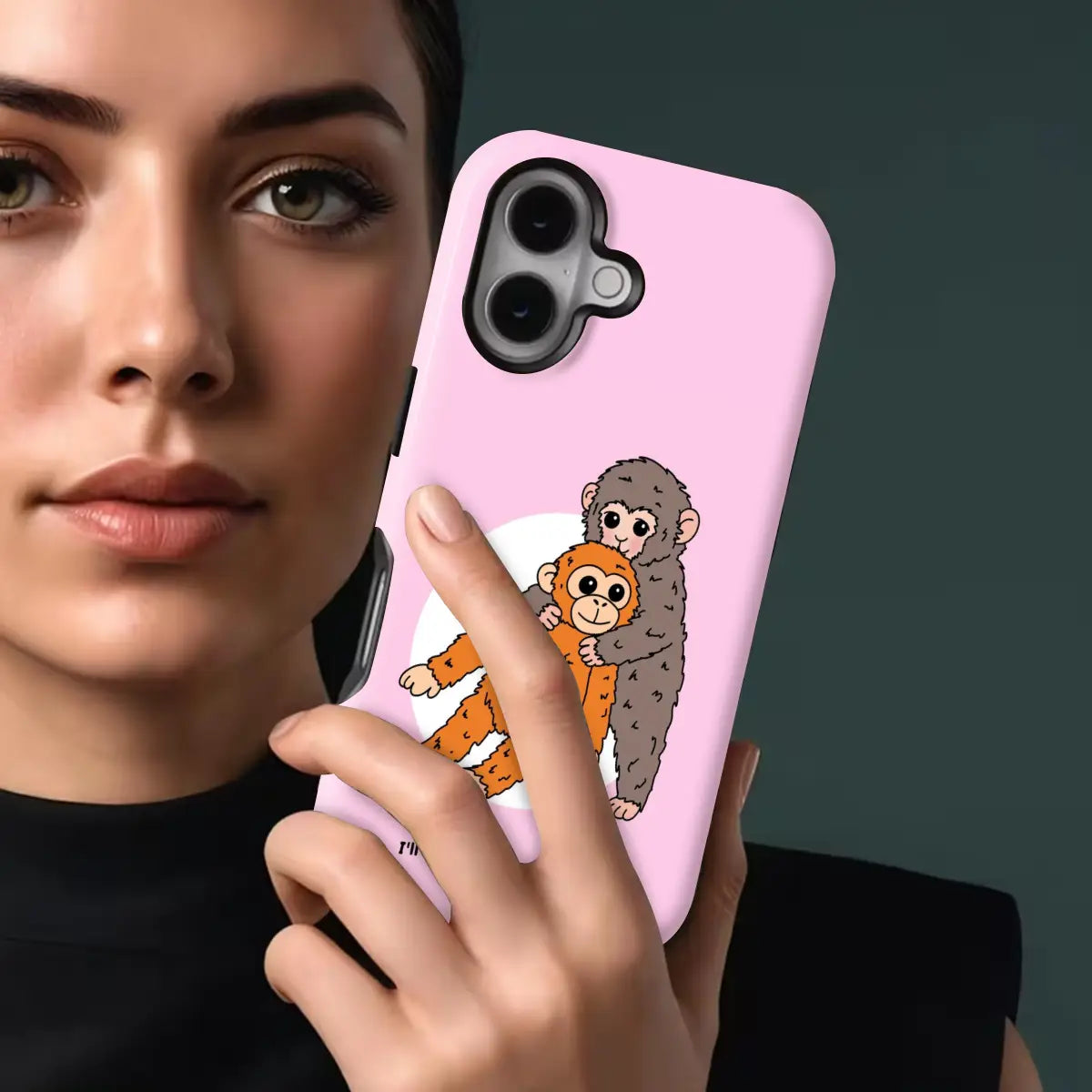 Sweet, playful, and full of heart. Monkey Hugs features an adorable duo wrapped in the coziest embrace, capturing the warmth of true friendship and unconditional love. Set against a soft pink backdrop, the charming illustration brings a cheerful, feel-good vibe that instantly brightens your day.
