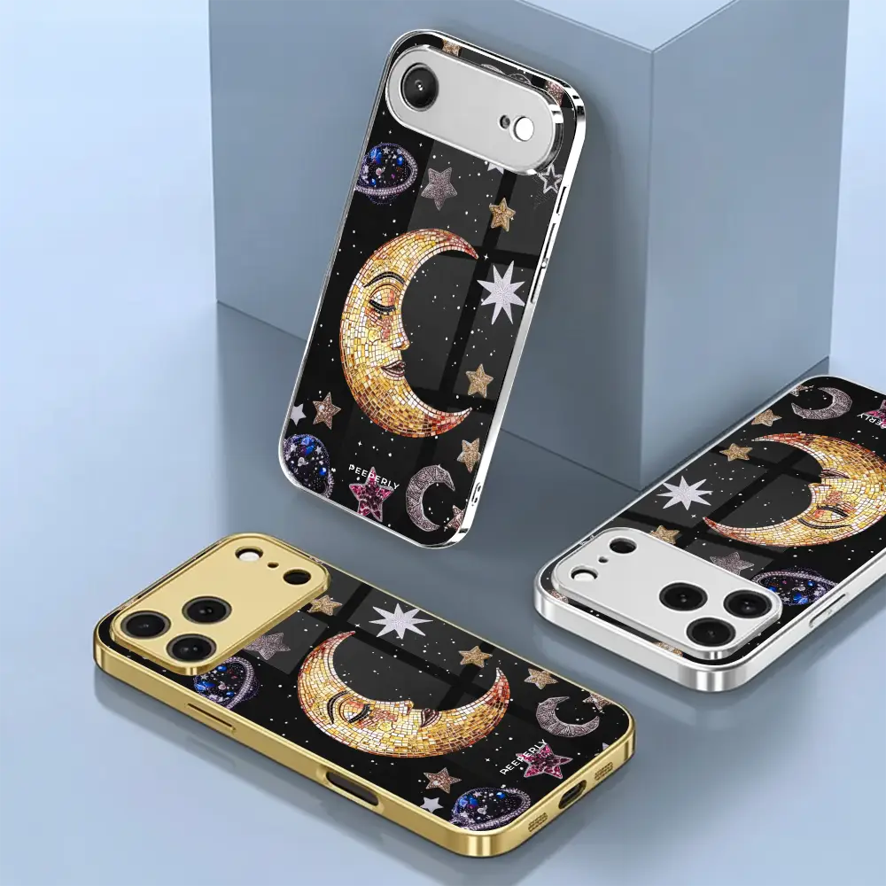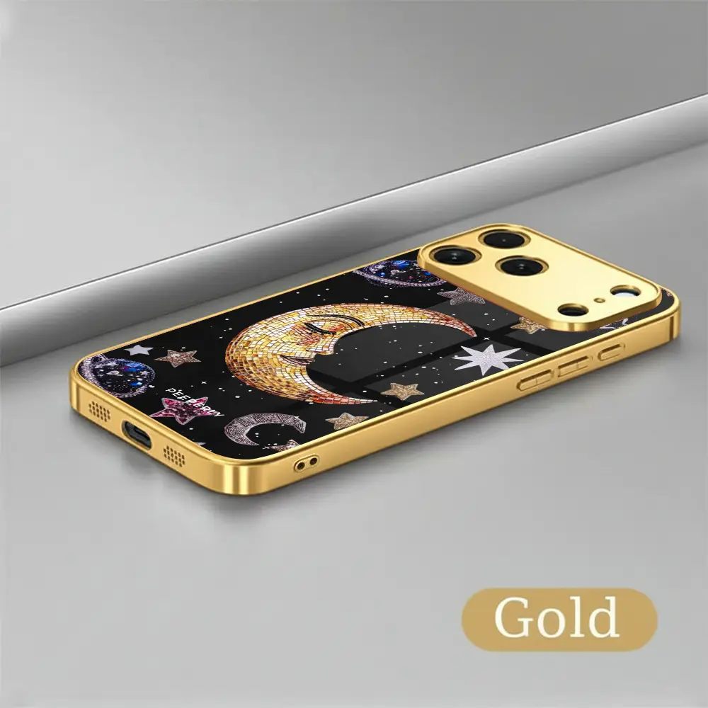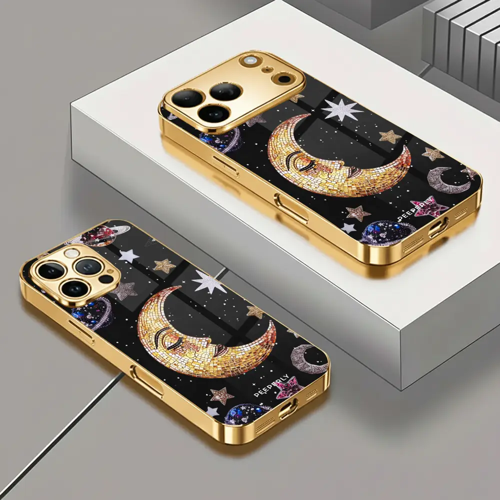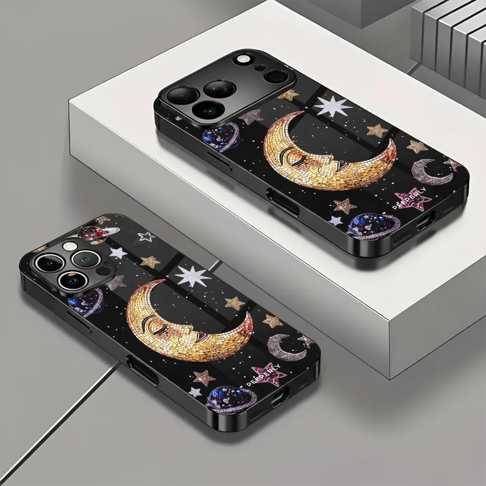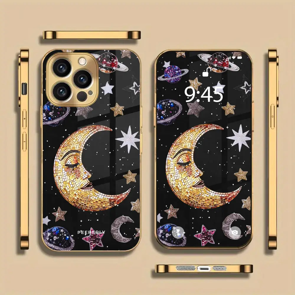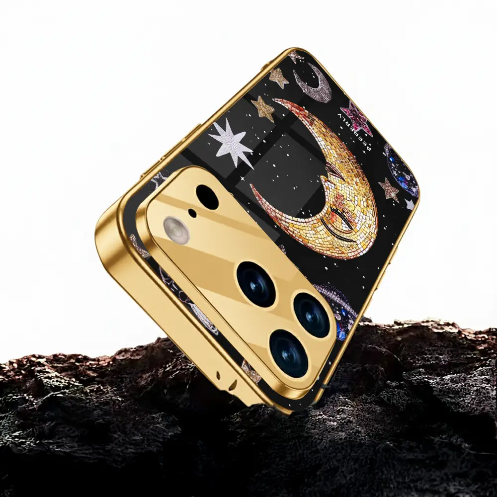 Moon Mosaic is a captivating phone case design featuring a radiant golden crescent moon crafted in a mosaic style, surrounded by shimmering stars and celestial accents against a deep black sky. Rich in texture and cosmic charm, it evokes mystery, magic, and timeless beauty.