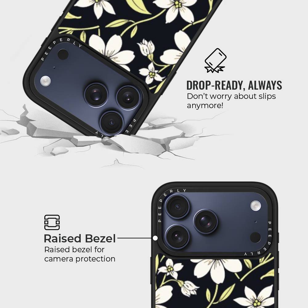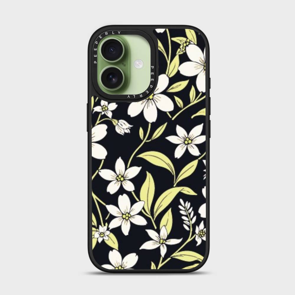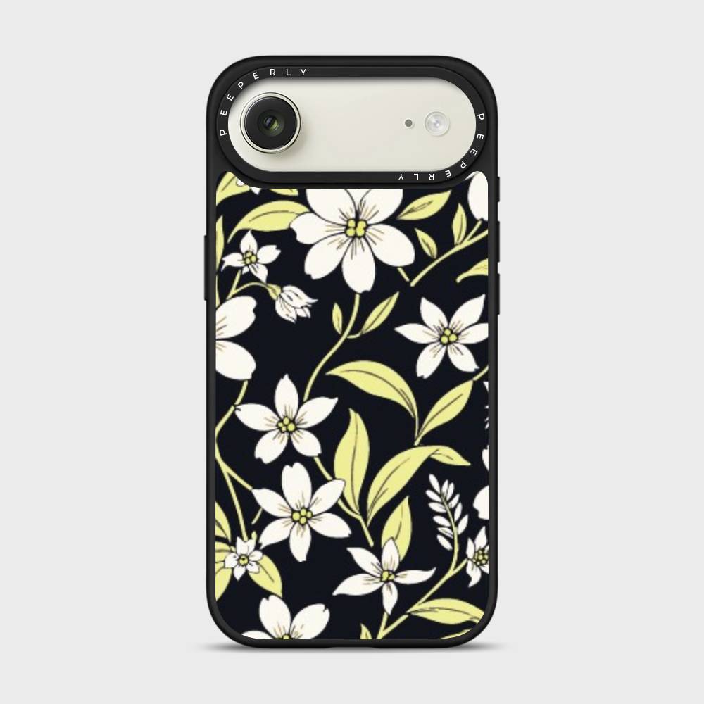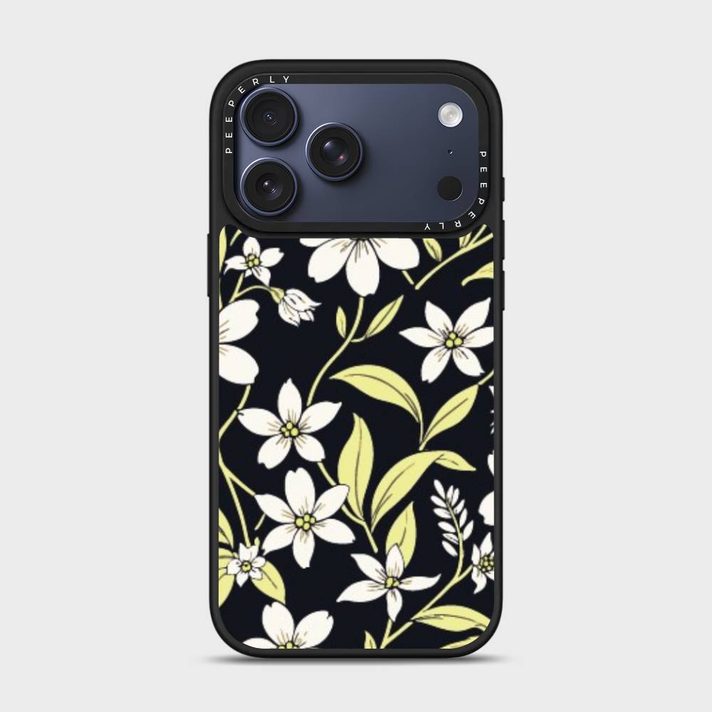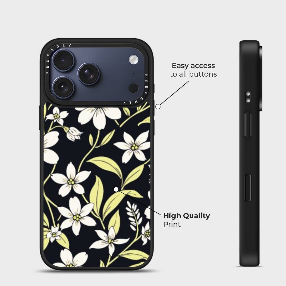 Embrace the elegance of nature after dusk with the Mystic Grace mobile case. Featuring a delicate arrangement of soft white blossoms and pale green leaves against a deep, midnight backdrop, this case captures the serene charm of a moonlit garden. Designed for those who love beauty with a bold edge, Mystic Grace blends sophistication with subtle mystique.
