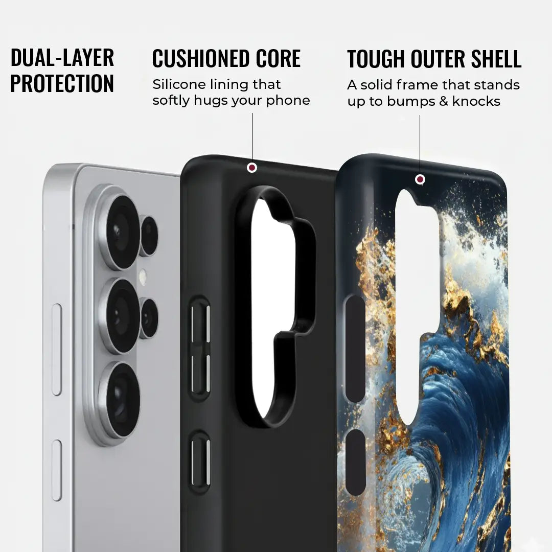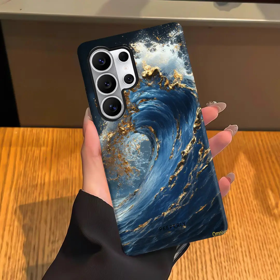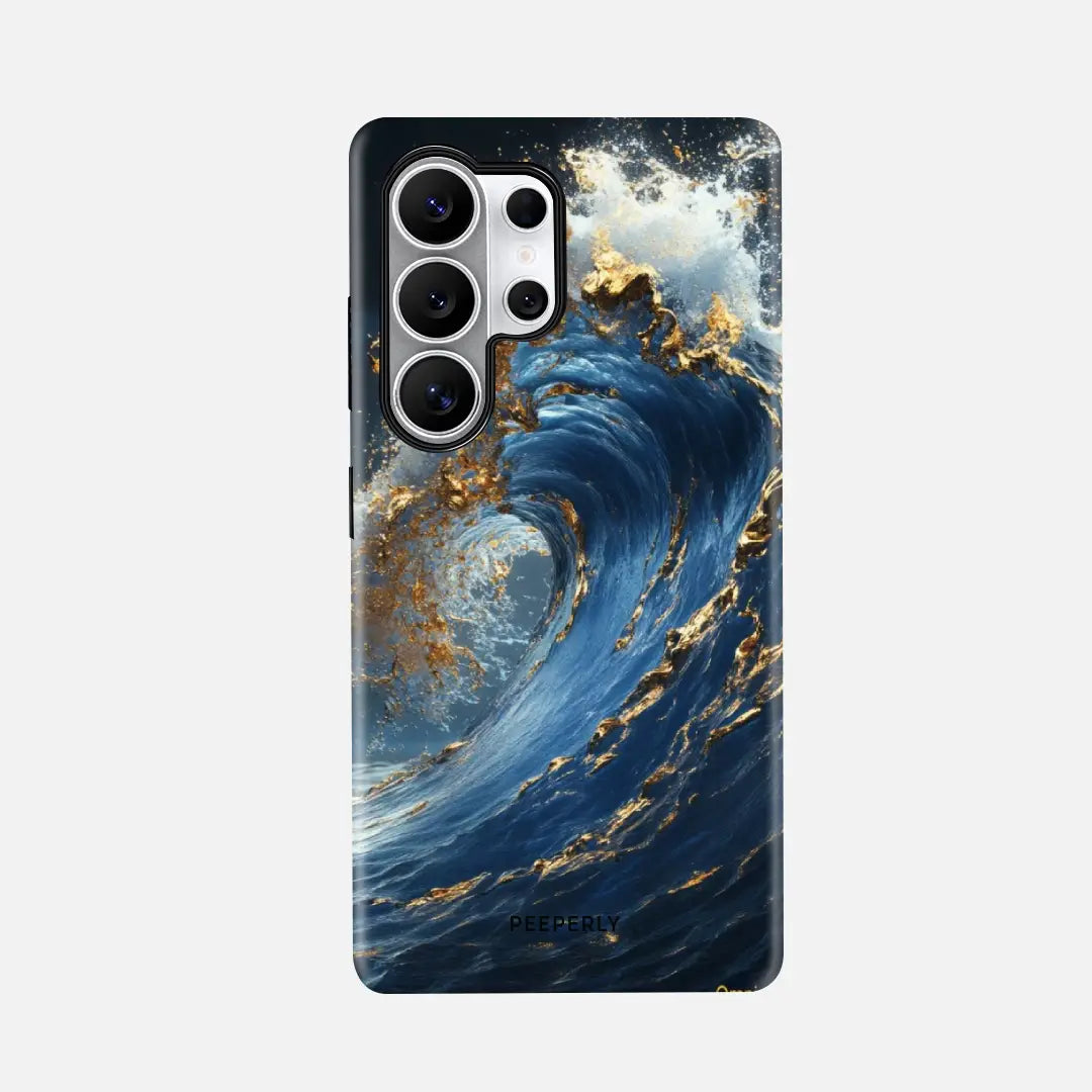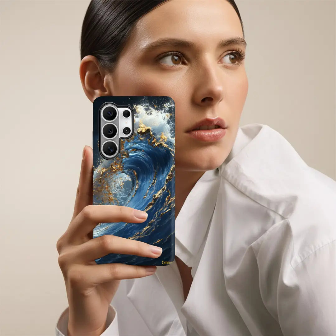 Bold and breathtaking, Ocean Majesty captures the raw power and beauty of the sea in motion. A towering sapphire wave rises dramatically, accented with shimmering touches of gold that add depth, luxury, and striking contrast.