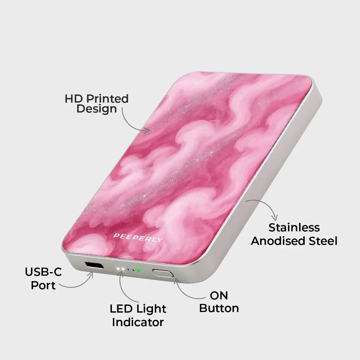 - LED Light Indicator: Displays charging status and battery level at a glance.