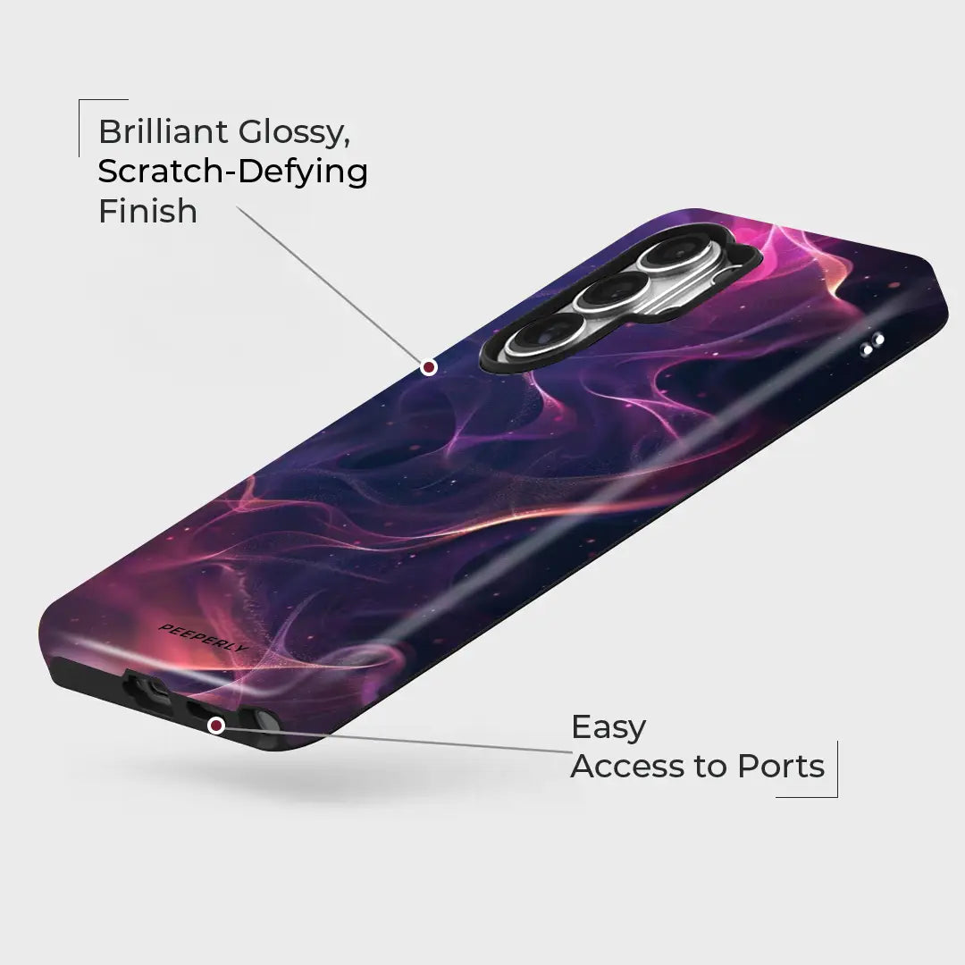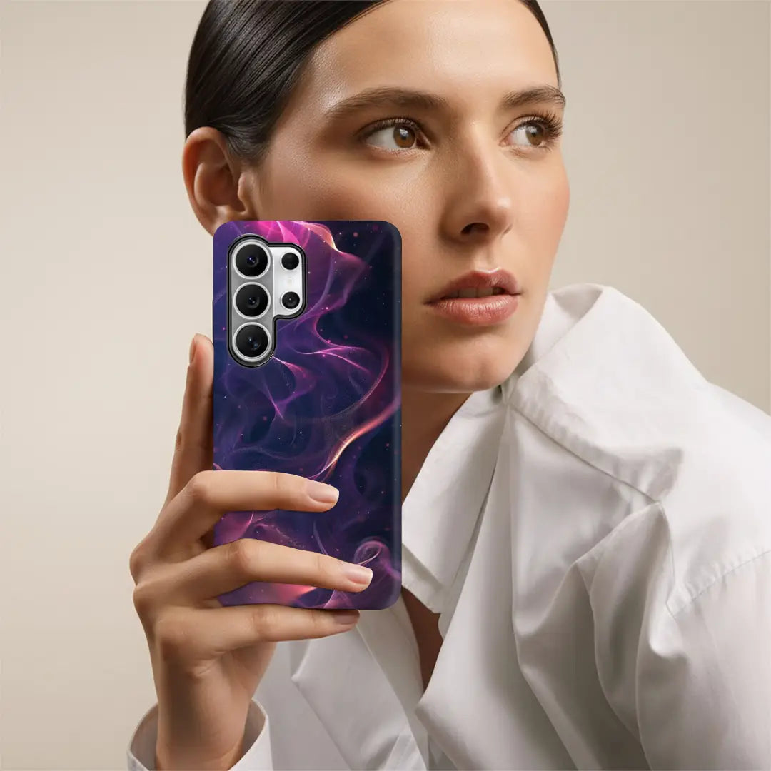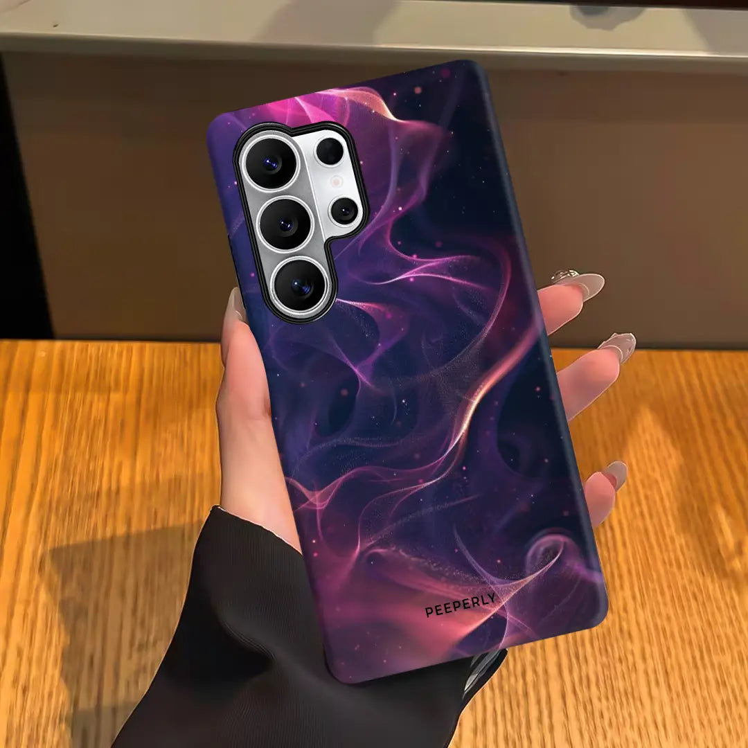 A mesmerizing blend of deep violets, electric pinks, and cosmic blues, Plasma Glow radiates with otherworldly energy. Flowing light trails ripple across the surface like charged waves in a distant galaxy, creating a luminous, almost weightless effect. Subtle spark-like details add depth and movement, giving the design a dynamic, futuristic feel.