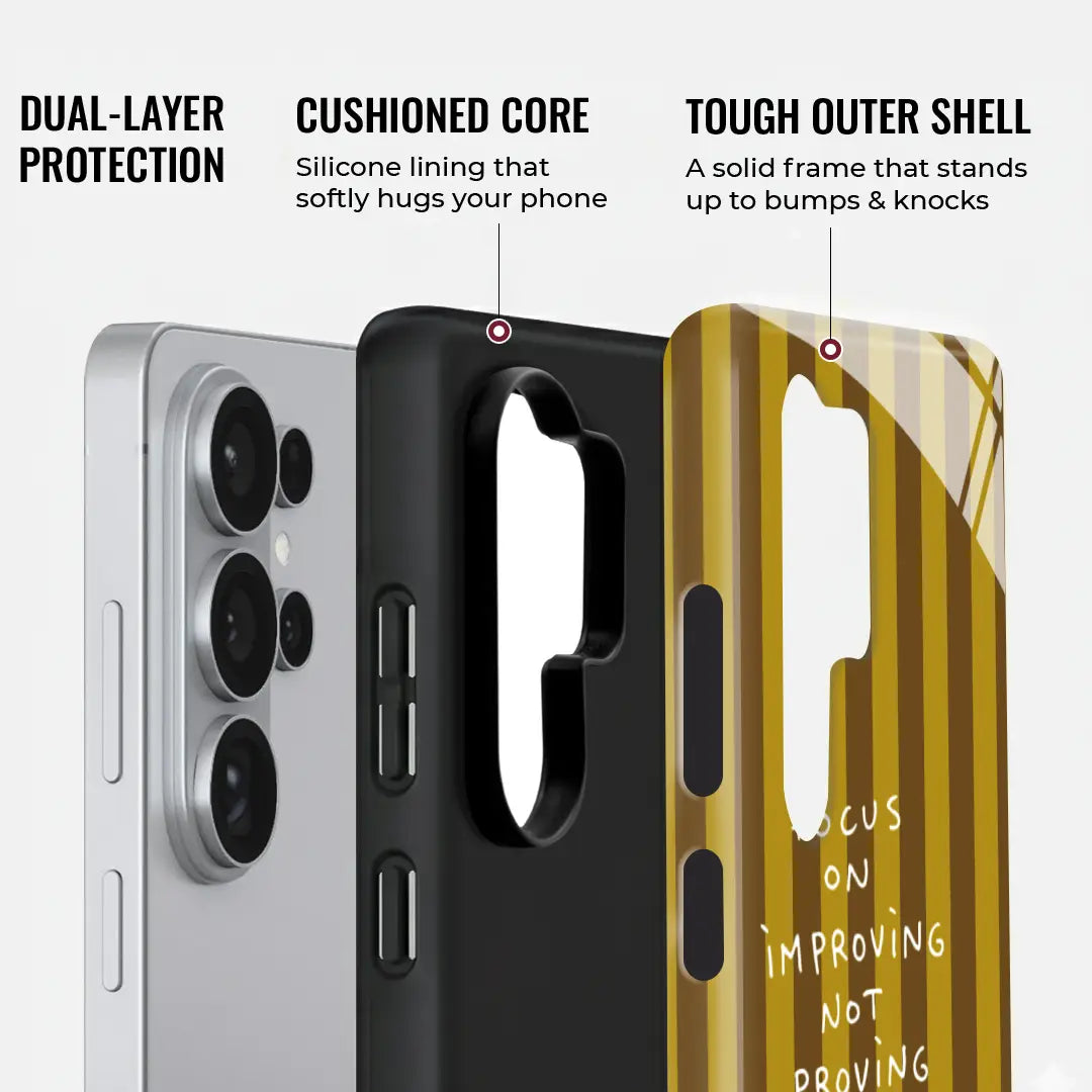 Stay inspired and grounded with the Progress Over Proof Case, a minimalist phone case designed to remind you that progress matters more than perfection. Featuring a clean striped background and a thoughtful motivational quote, this design encourages a growth mindset and daily self-improvement.