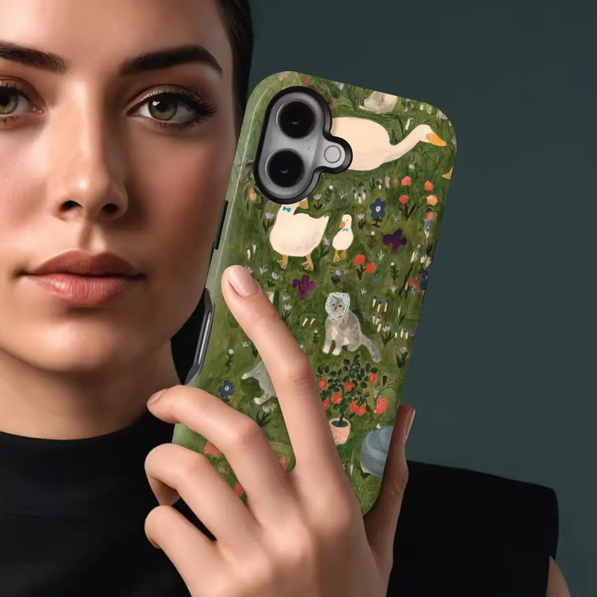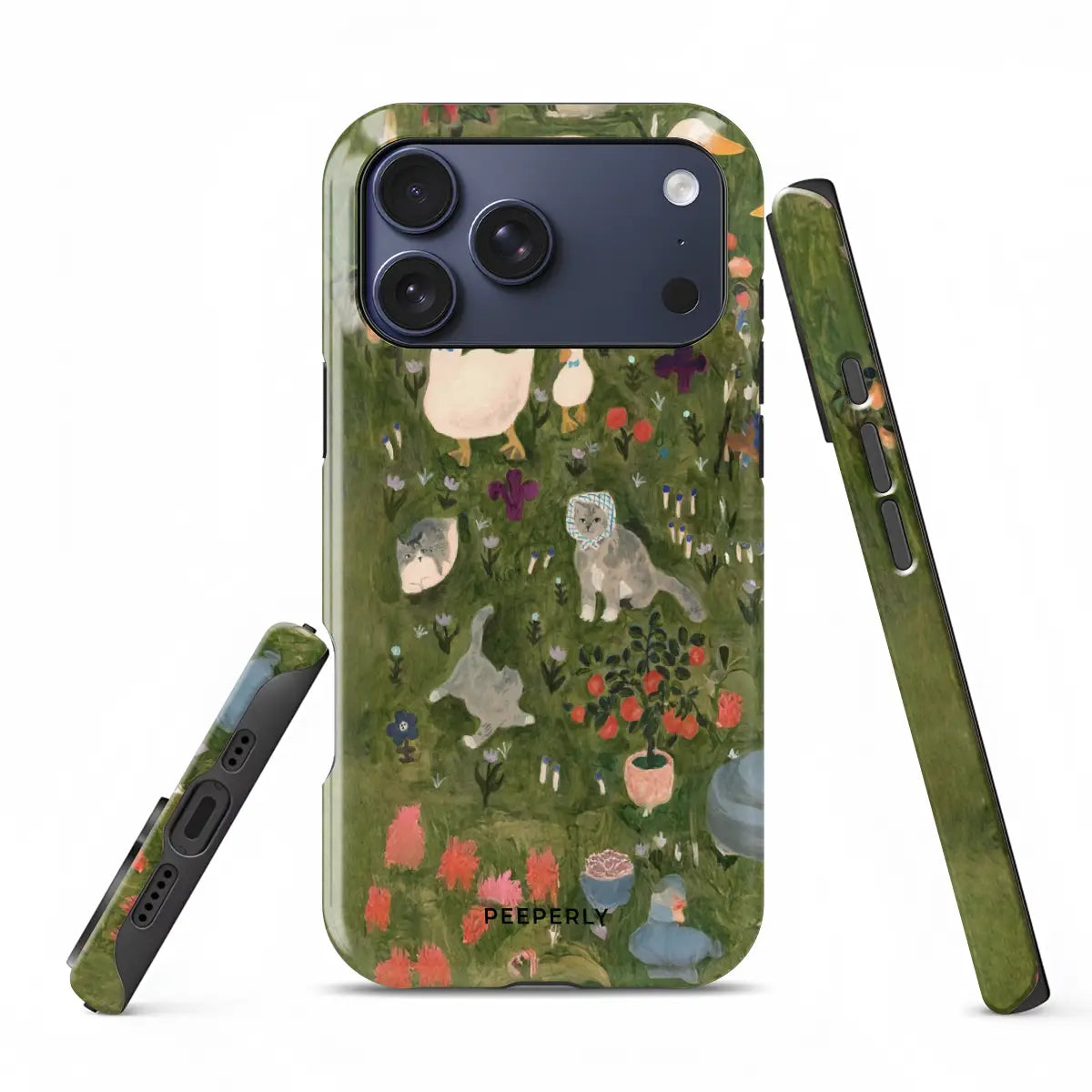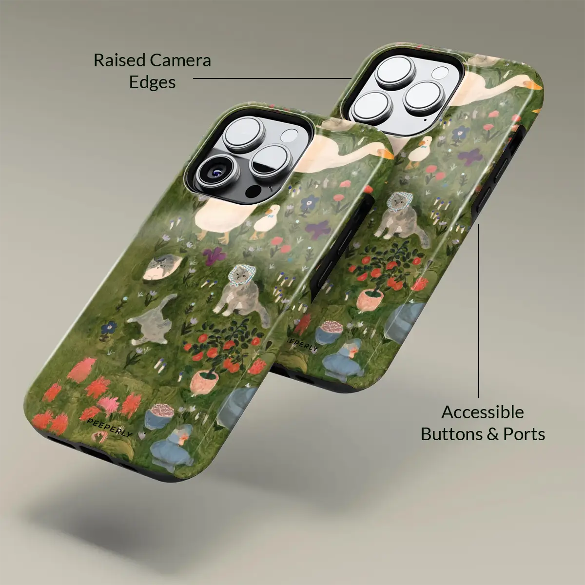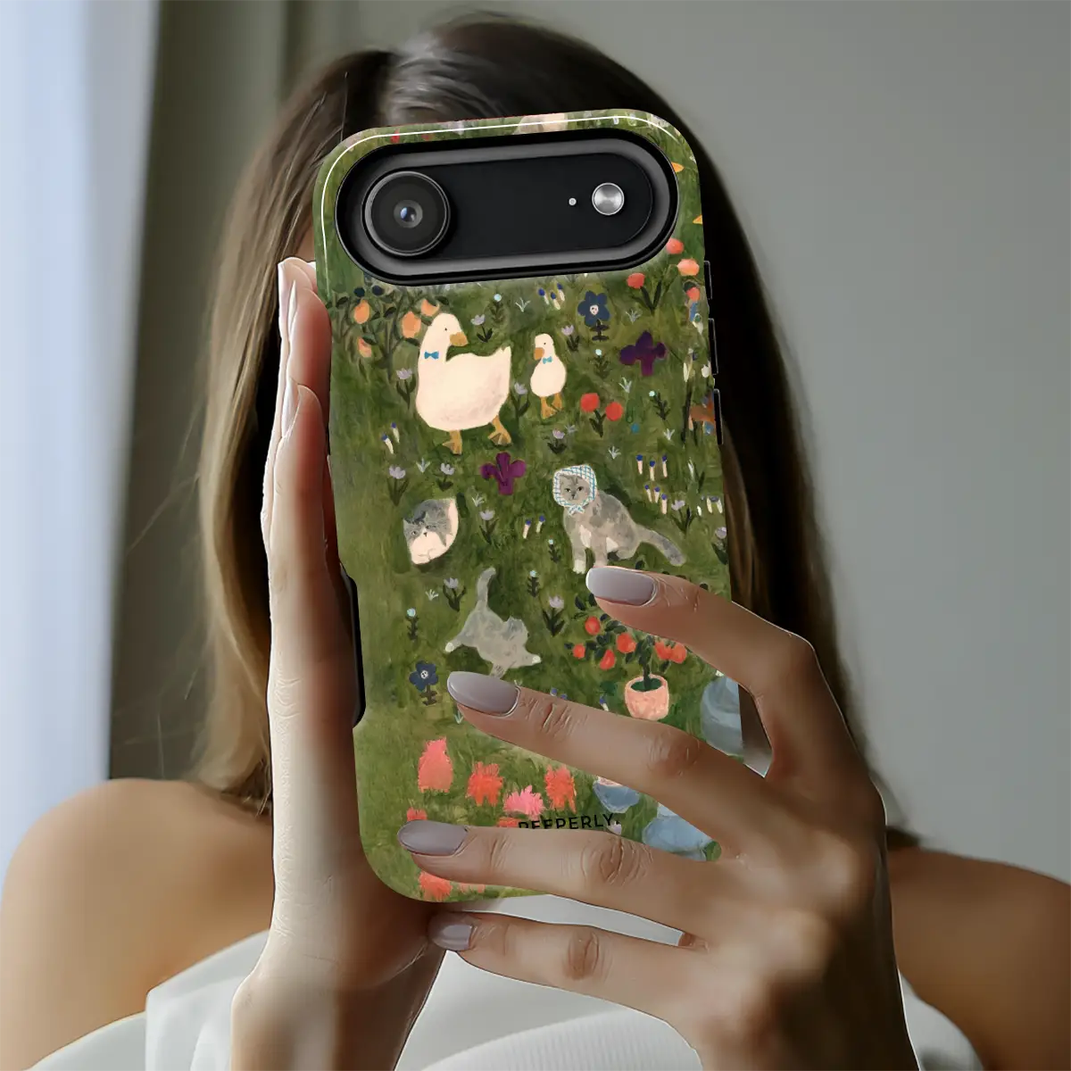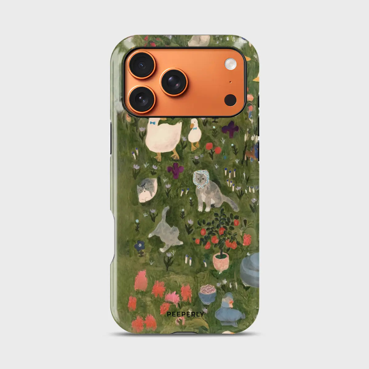 Quiet Creatures invites you into a peaceful garden where small animals wander among flowers, trees, and hidden corners. Painted in soft, earthy greens with delicate pops of color, the scene feels calm and lived-in—like a secret meadow where everything moves a little slower.