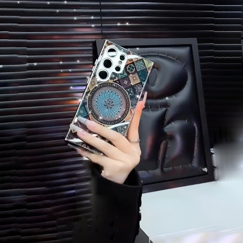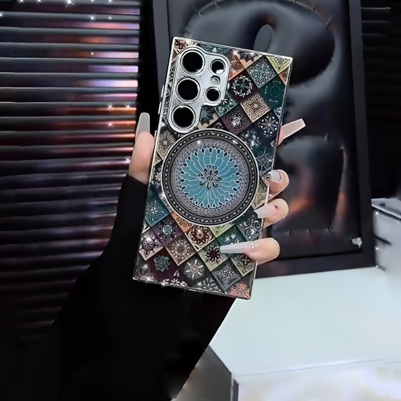 The Regal Pattern Case is a statement of refined luxury and timeless design. Featuring an intricate mosaic-inspired mandala at its center, this case blends rich textures with symmetrical elegance for a look that feels both royal and artistic.