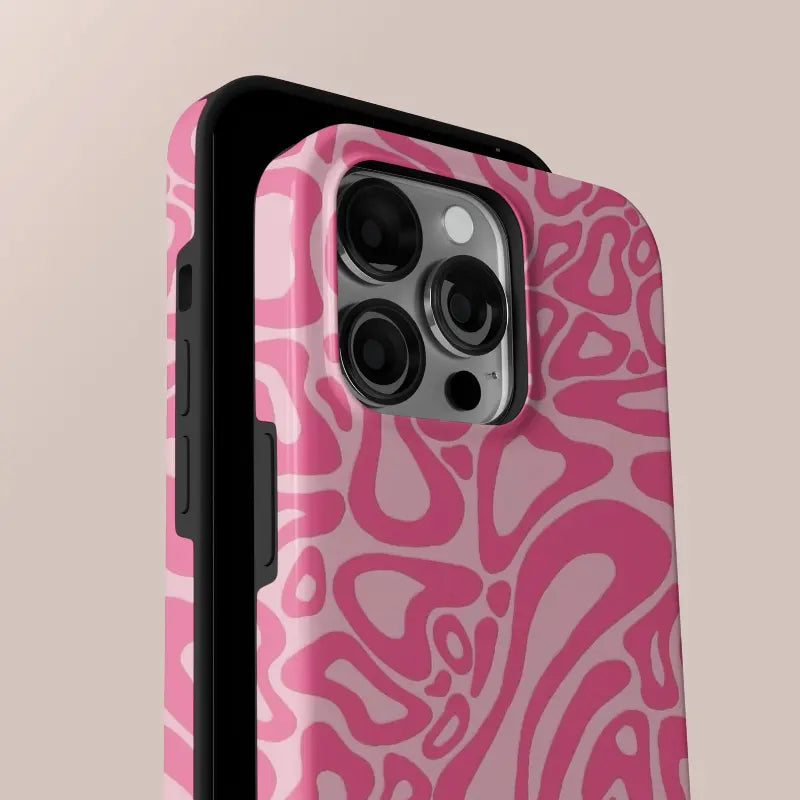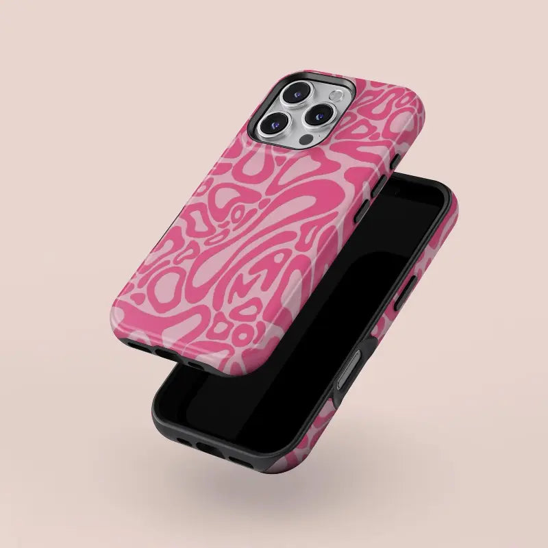 Retro Melt channels classic Y2K energy through flowing, abstract pink shapes that ripple and blend like liquid candy. The organic curves and layered tones create a sense of movement, giving the design a trippy, retro feel that’s equal parts playful and eye-catching.