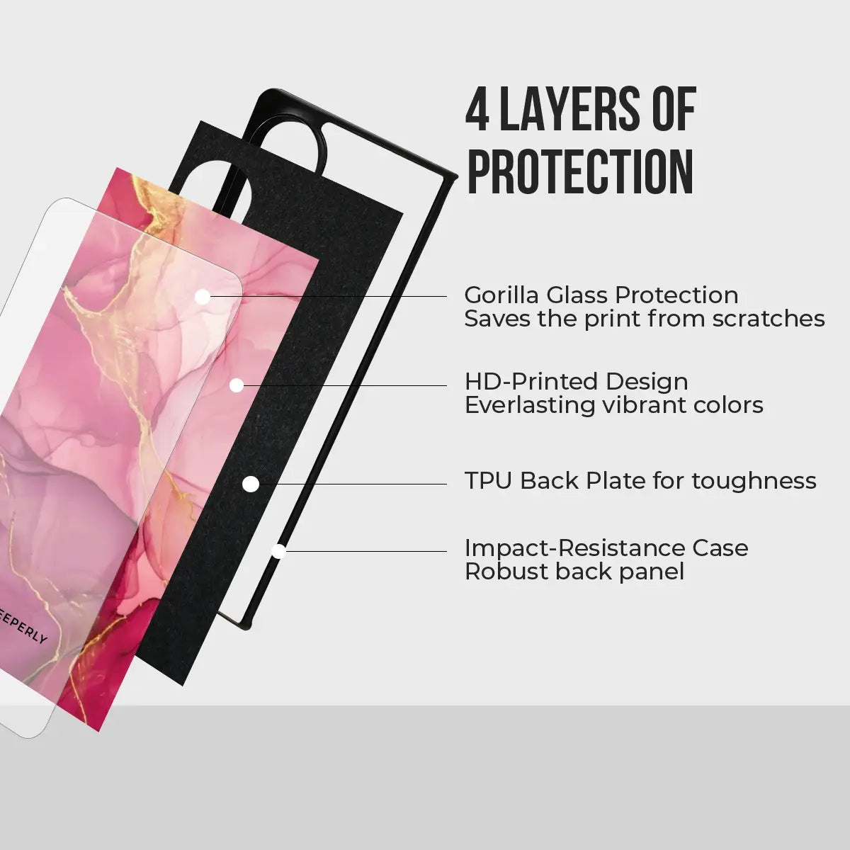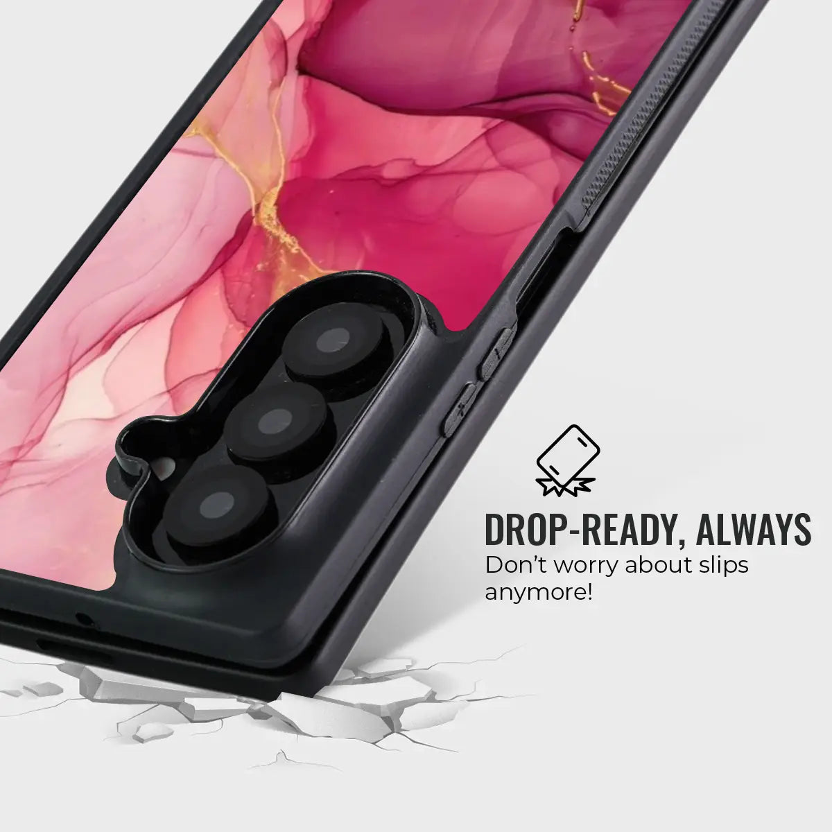 Rose Ember is a striking phone case inspired by flowing pink marble fused with delicate gold-vein accents. The rich rose tones and glowing metallic details create a warm, luxurious feel that’s both bold and elegant.