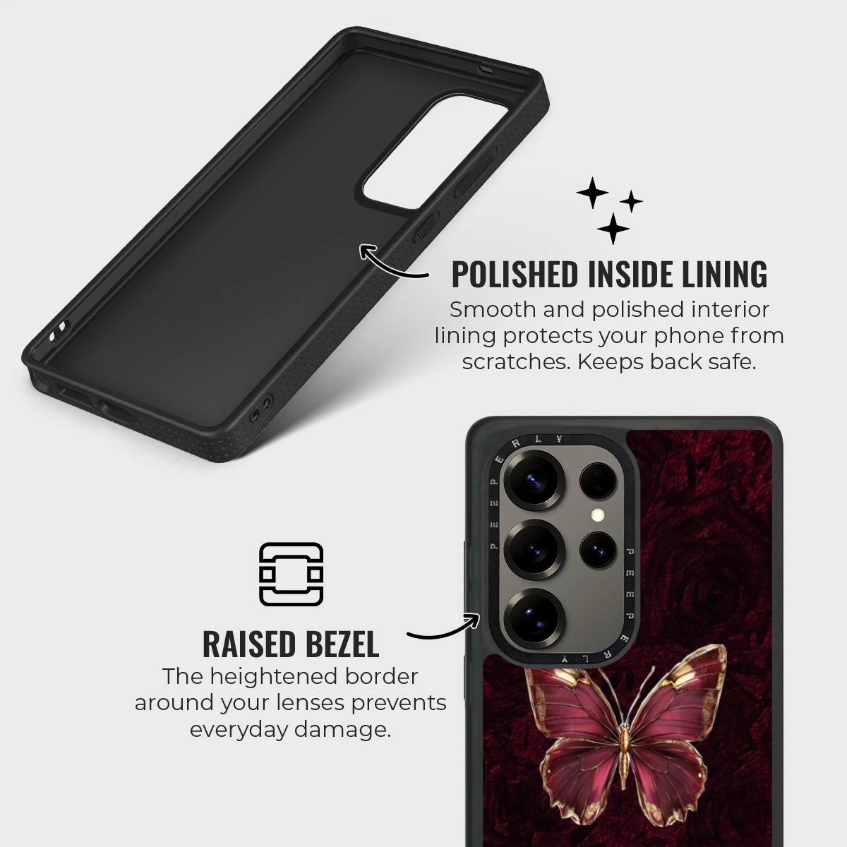 • Polished Inner Lining: Smooth lining shields the phone’s back from scratches.