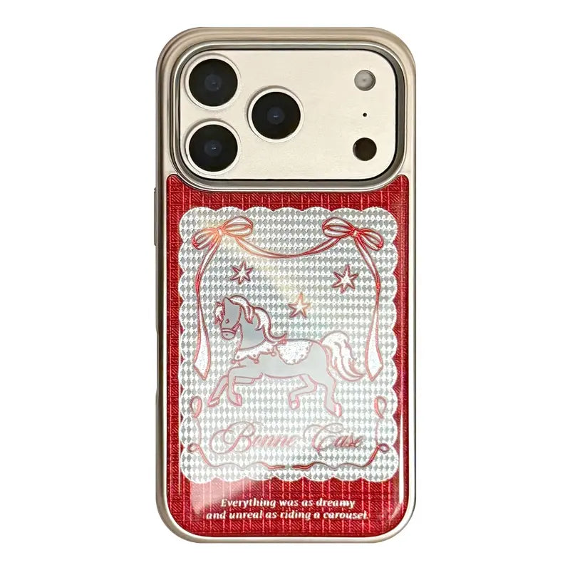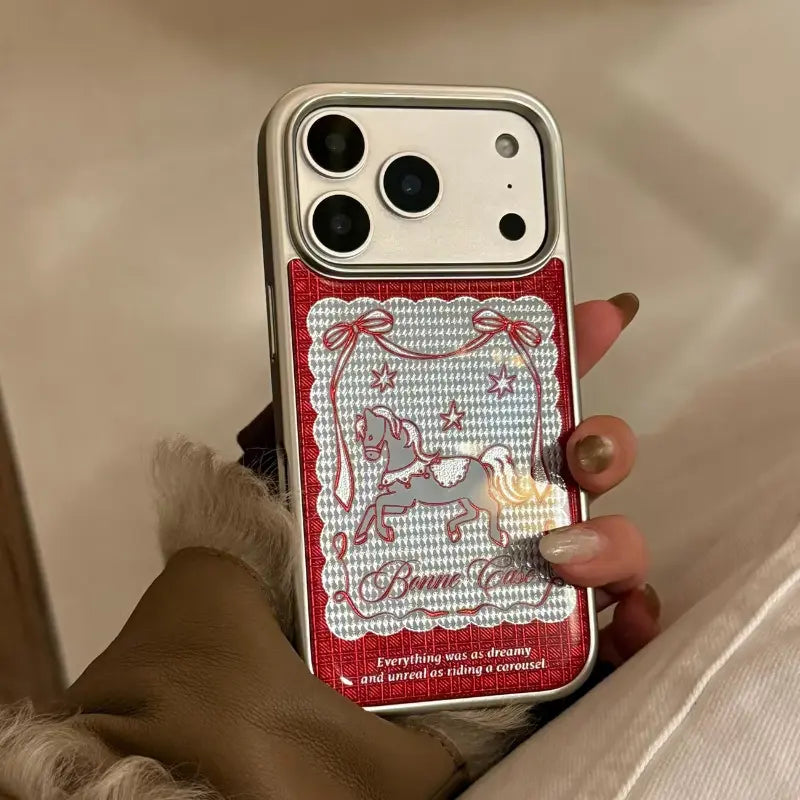 A timeless blend of deep ruby tones and vintage charm, this case captures the magic of old-world fairgrounds and classic elegance. Delicate detailing and rich textures evoke a sense of nostalgia, making it perfect for those who love romantic aesthetics with a hint of royal flair.