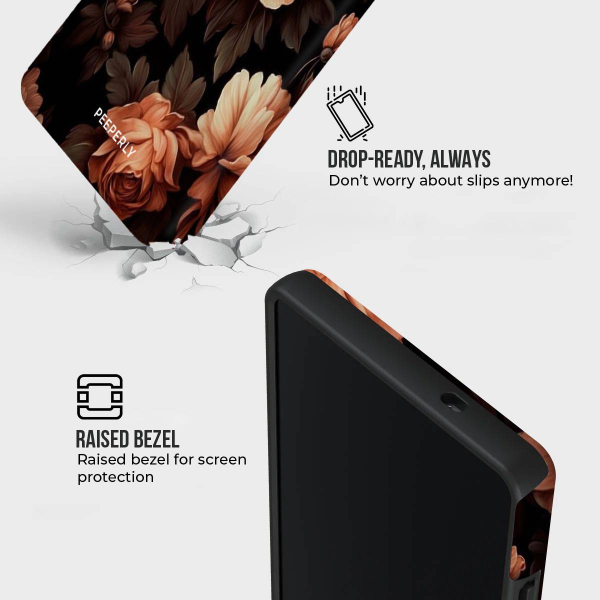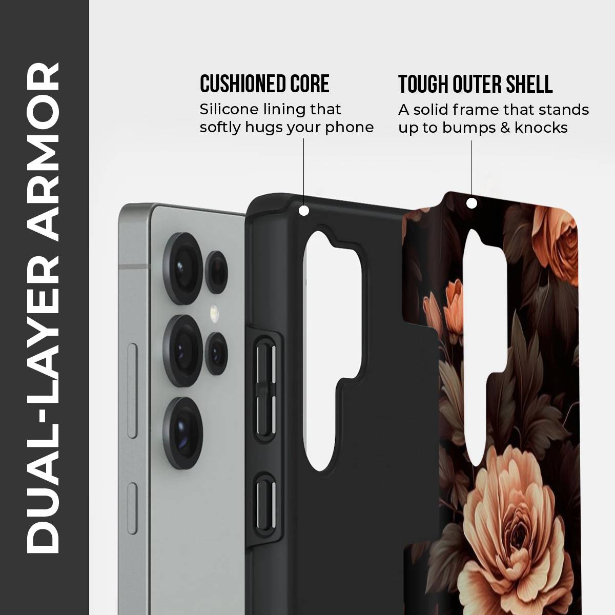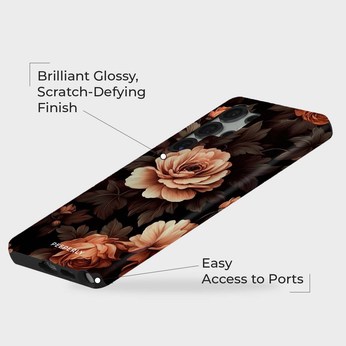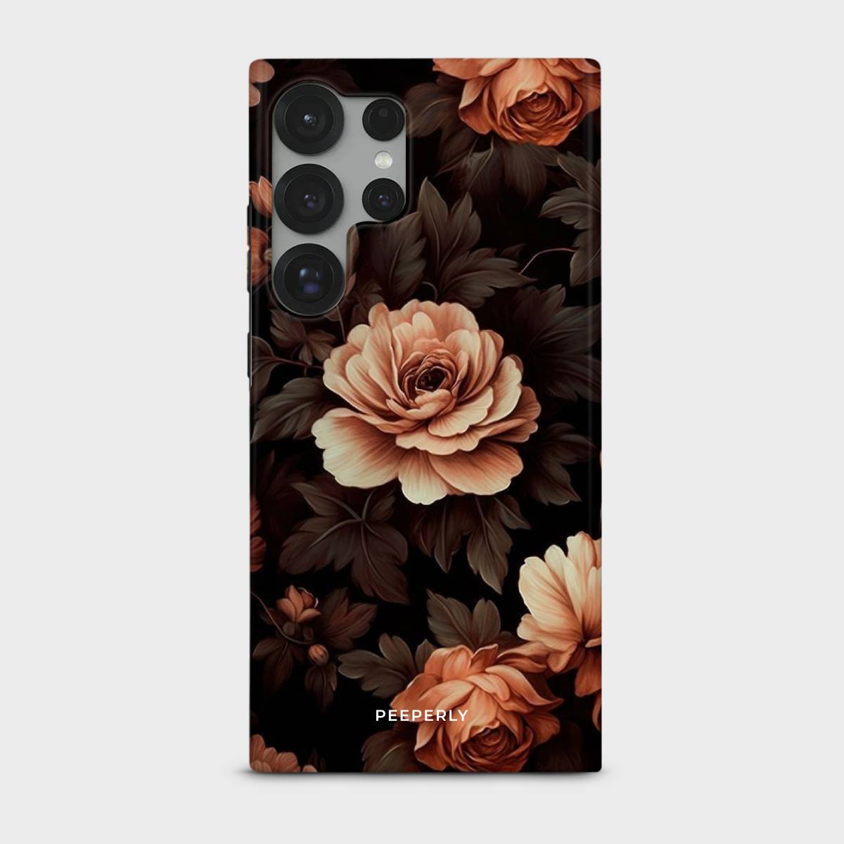 Rustic Elegance captures the charm of timeless florals blended with a touch of vintage warmth. The deep background enhances the delicate blossoms, creating a graceful balance of boldness and refinement. Perfect for those who love understated beauty with a classic twist.