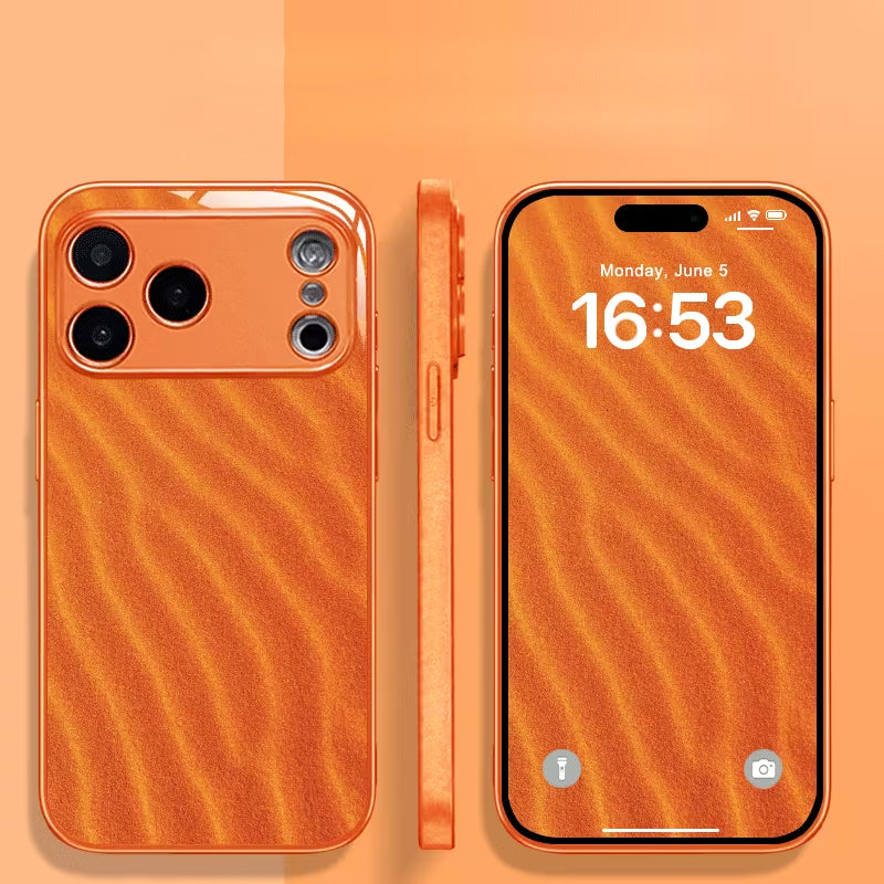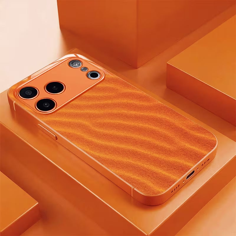 Experience the warmth and elegance of desert-inspired design with the Sandstone Glow Case. Crafted with a uniquely textured back that mimics soft, rippling sand dunes, this case blends premium aesthetics with practical everyday protection.