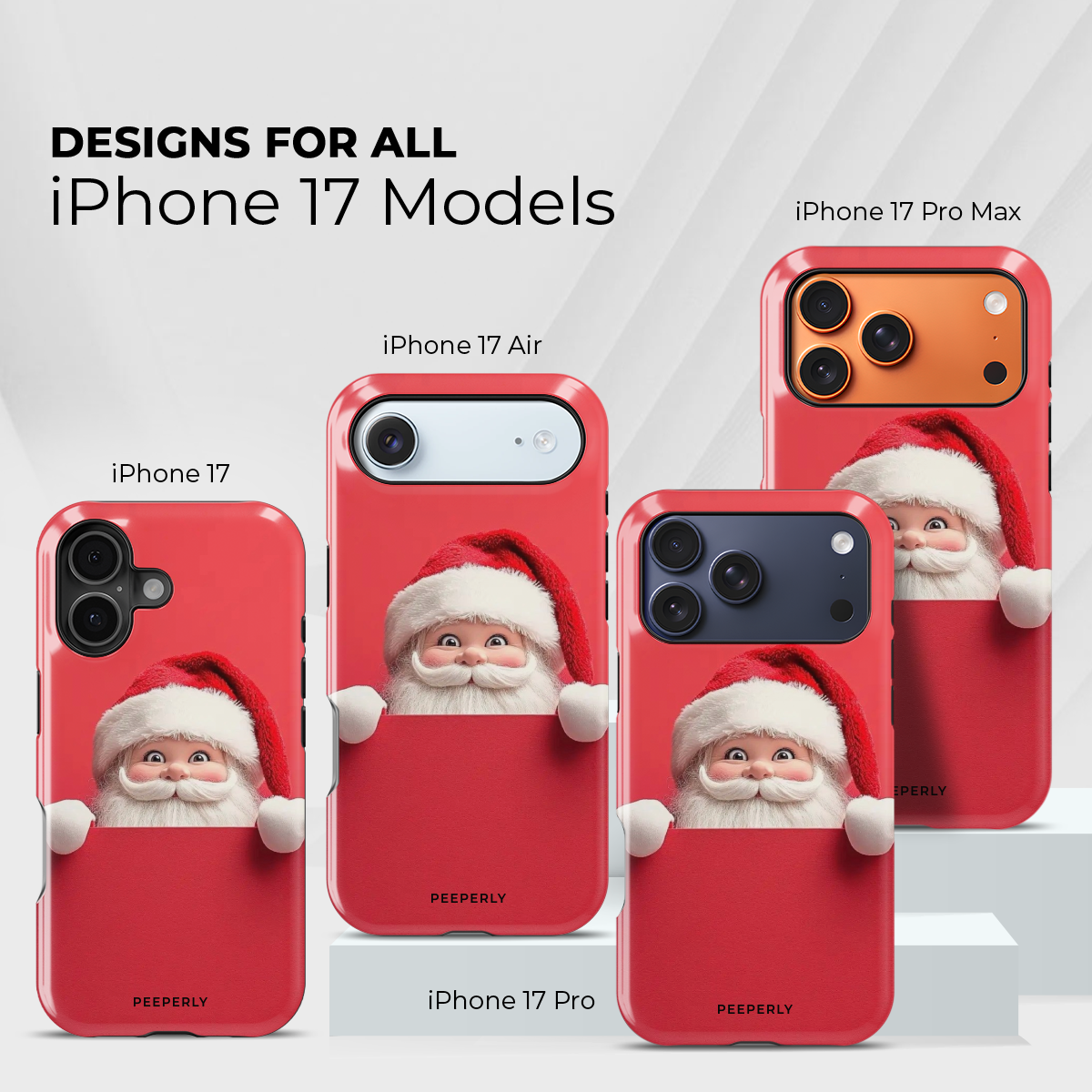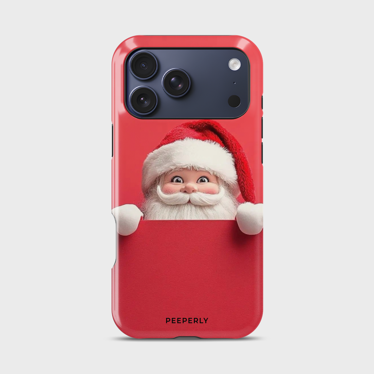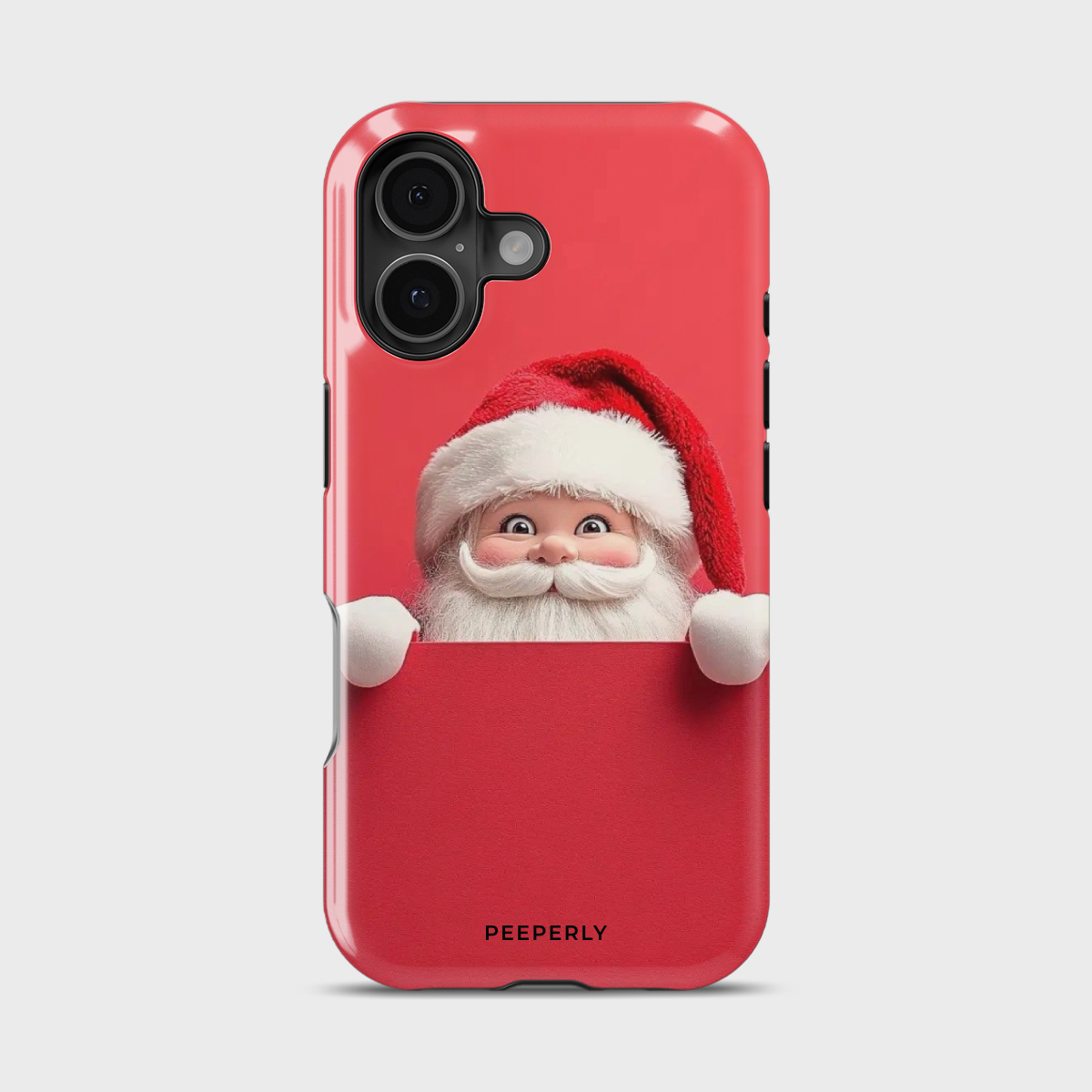 Add a joyful twist to your holiday style with the Santa Surprise phone case. Featuring a playful peek-a-boo Santa design against a rich festive red backdrop, this case captures the magic and fun of the Christmas season.
