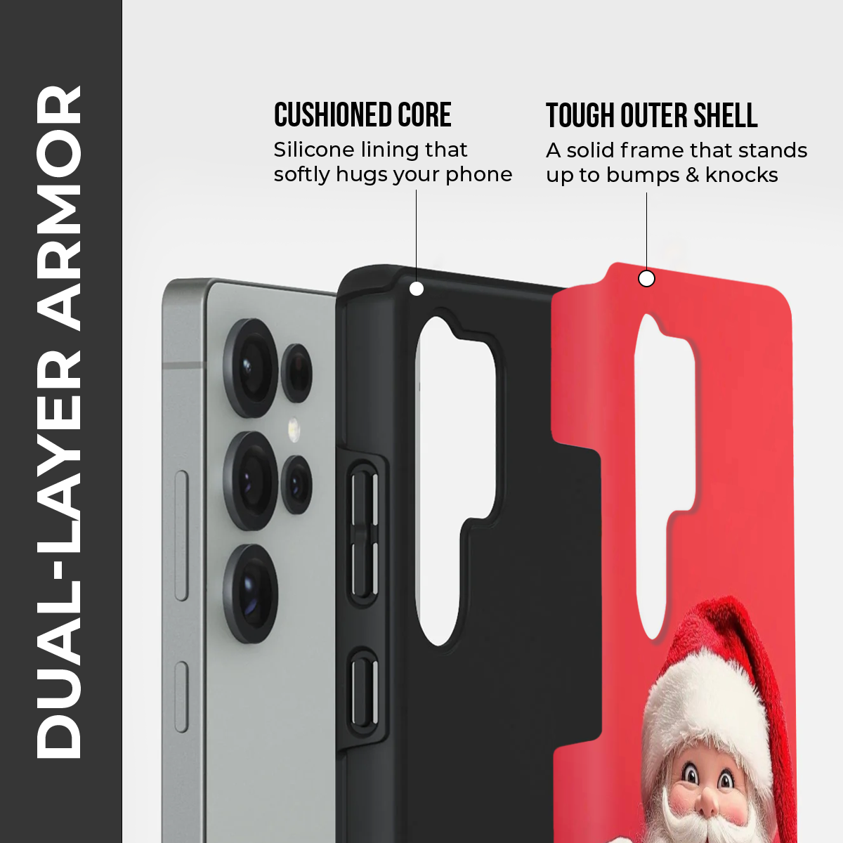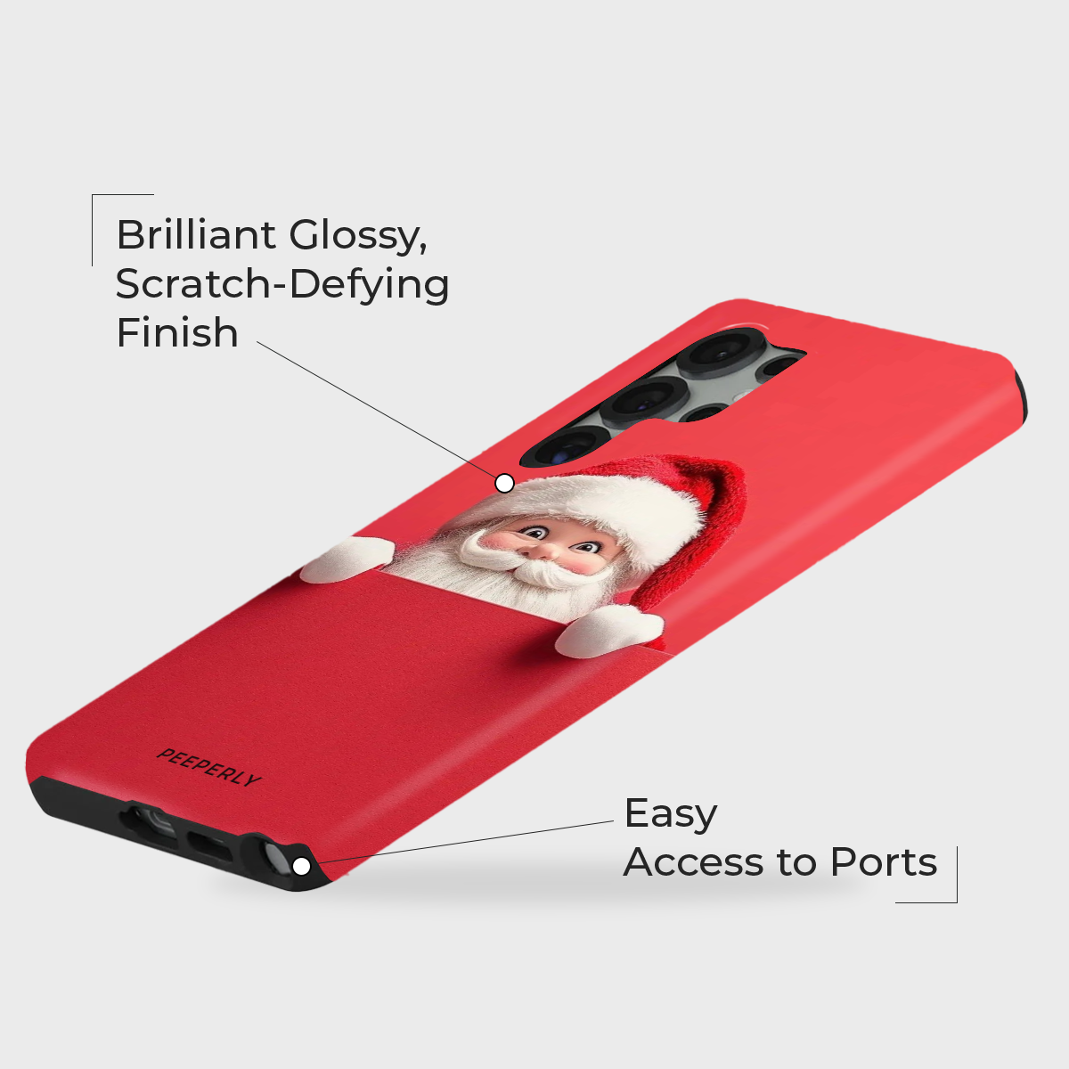 Add a joyful twist to your holiday style with the Santa Surprise phone case. Featuring a playful peek-a-boo Santa design against a rich festive red backdrop, this case captures the magic and fun of the Christmas season.