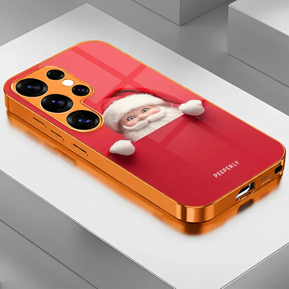 Add a joyful twist to your holiday style with the Santa Surprise phone case. Featuring a playful peek-a-boo Santa design against a rich festive red backdrop, this case captures the magic and fun of the Christmas season.