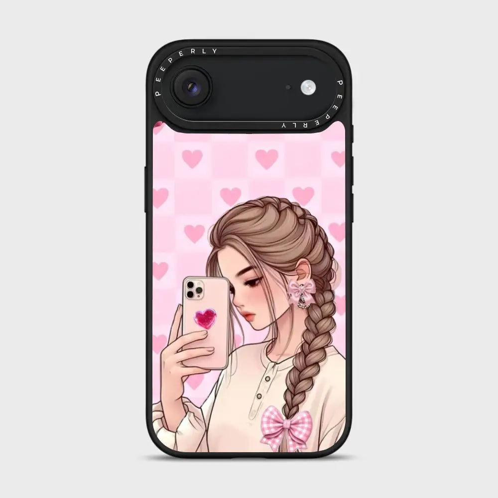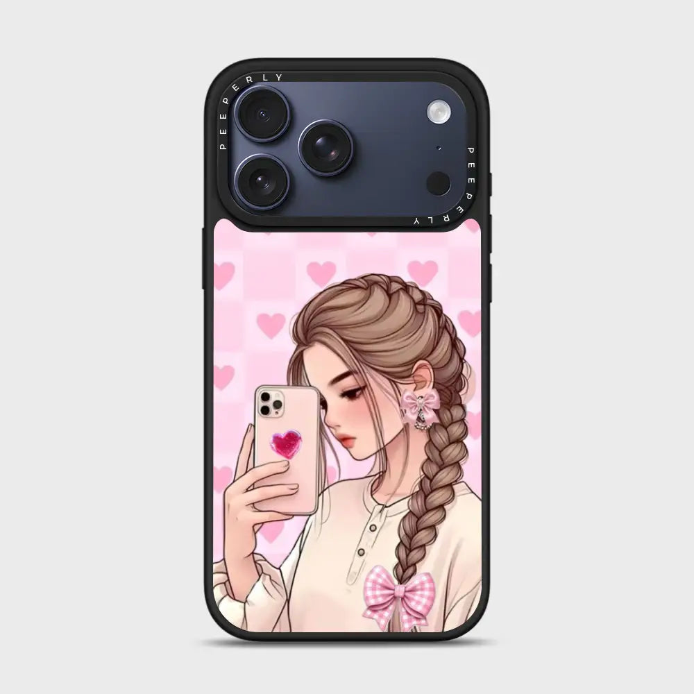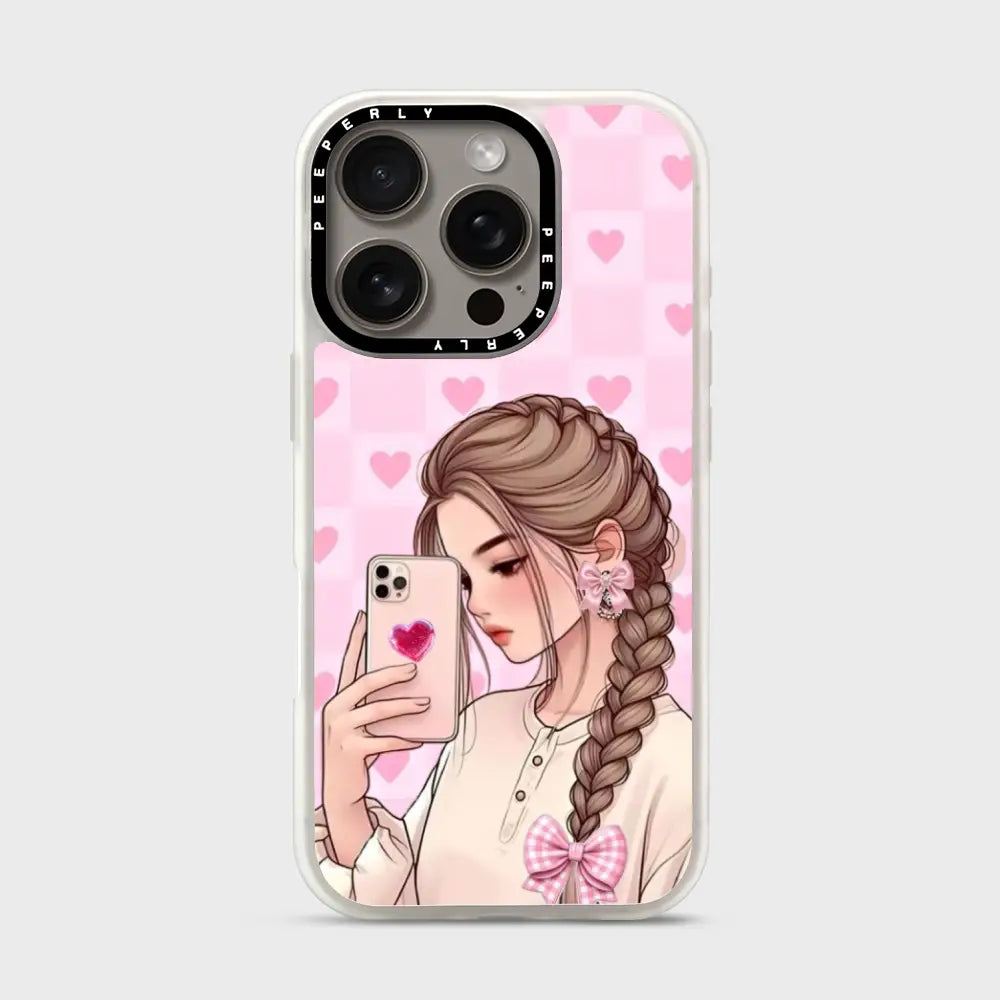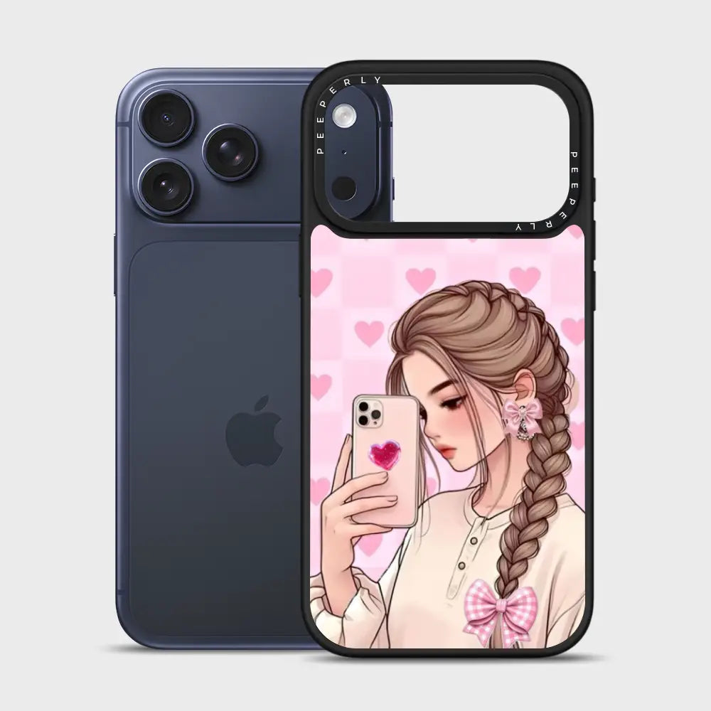 Selfie Crush is all about soft charm and modern romance. Featuring a dreamy illustrated selfie girl set against a blush-pink heart backdrop, this case brings cozy aesthetic vibes to your everyday style. The glossy finish and delicate details make it the perfect pick for anyone who loves cute, expressive designs with a touch of sweetness.