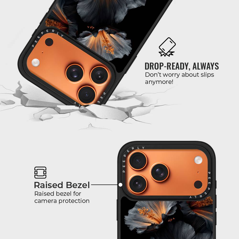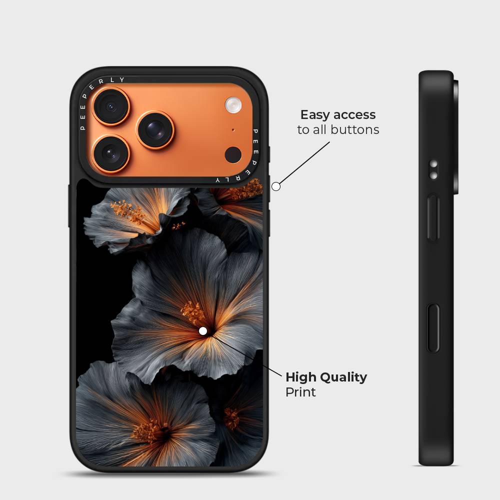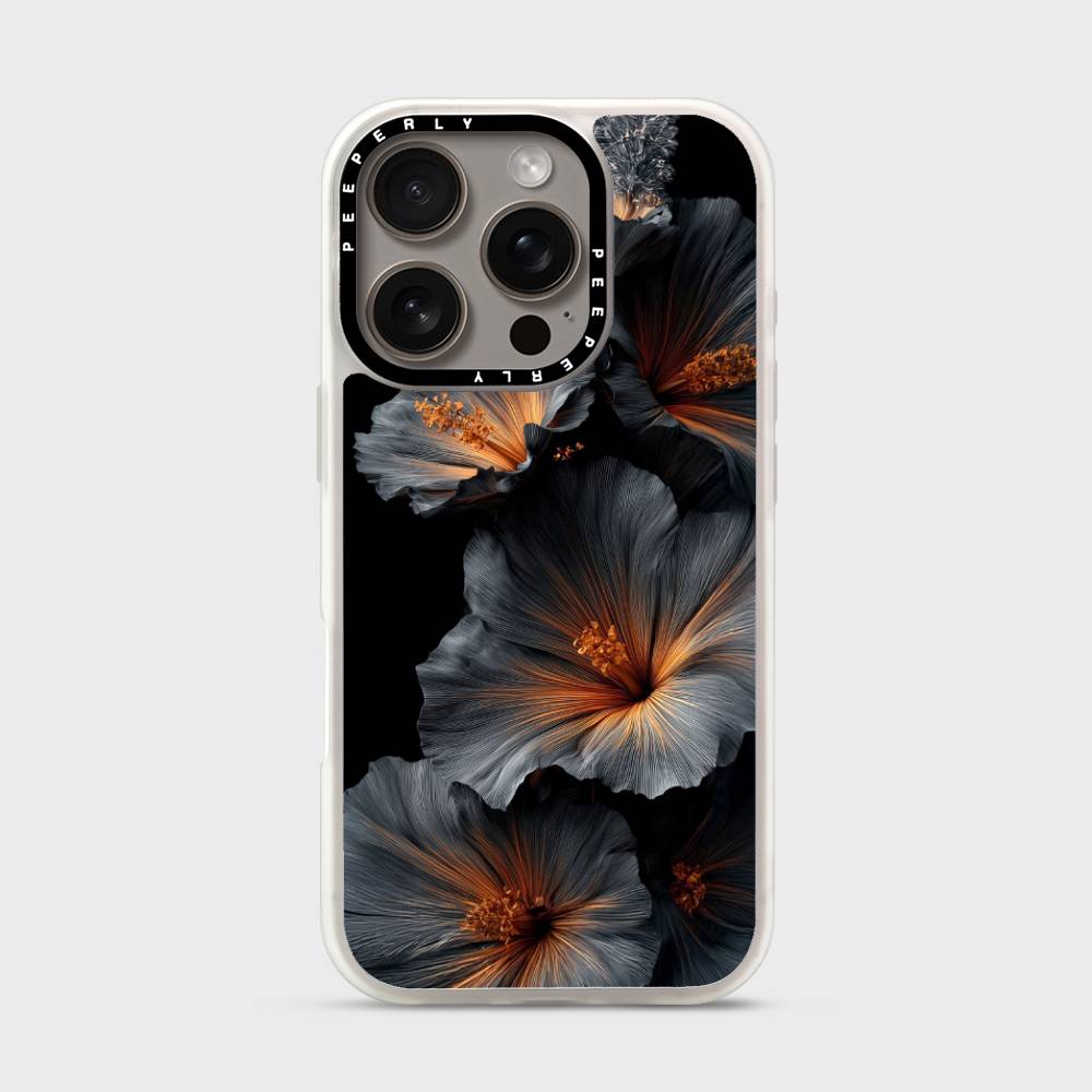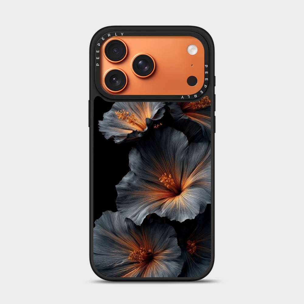 The Smoky Veil Case captures the allure of twilight blooms, blending deep charcoal tones with warm amber highlights for a striking yet sophisticated look. Its artistic floral design feels both mysterious and refined, making it the perfect statement piece for those who love understated elegance with a bold edge.