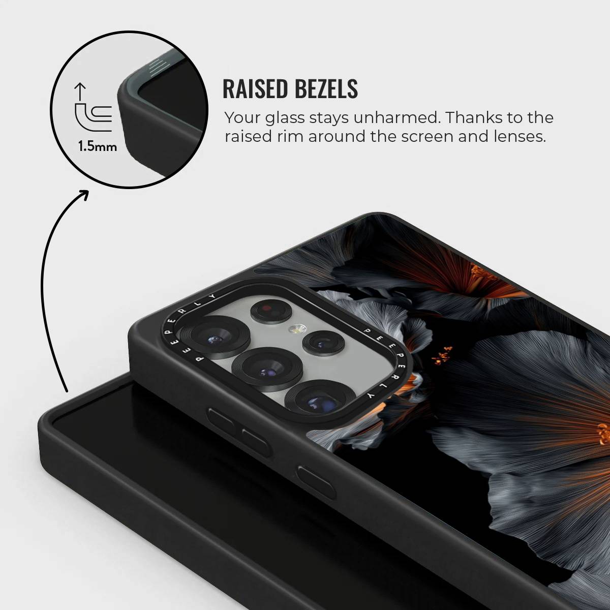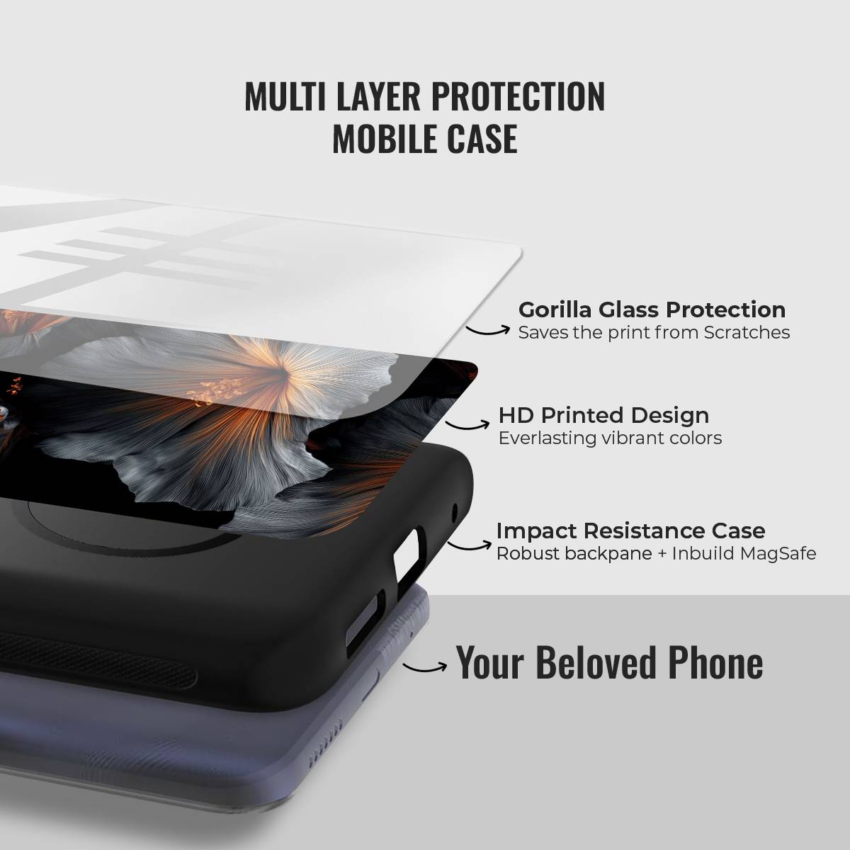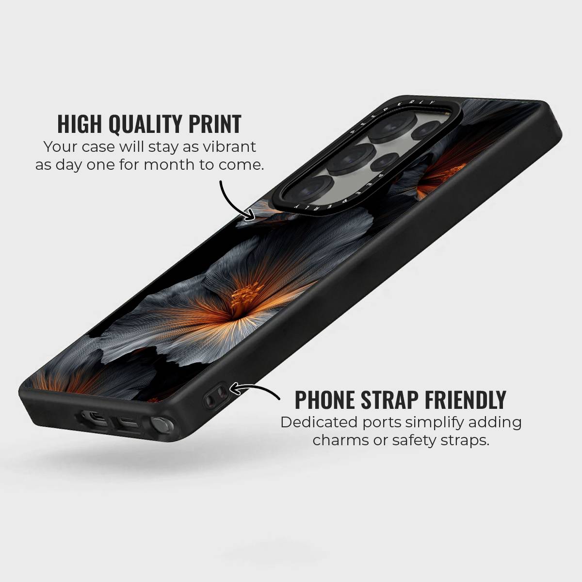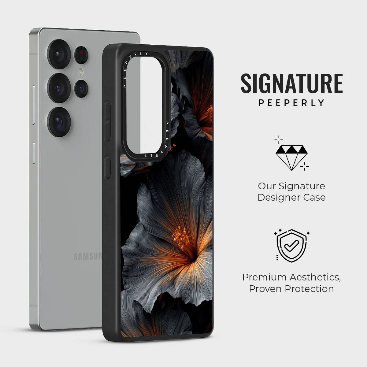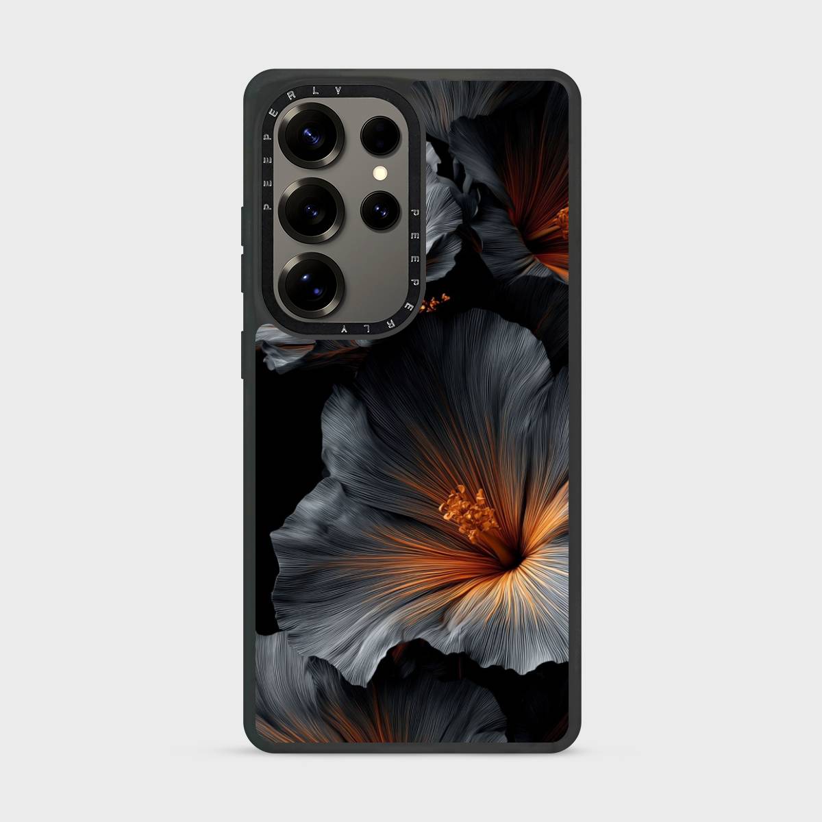 The Smoky Veil Case captures the allure of twilight blooms, blending deep charcoal tones with warm amber highlights for a striking yet sophisticated look. Its artistic floral design feels both mysterious and refined, making it the perfect statement piece for those who love understated elegance with a bold edge.