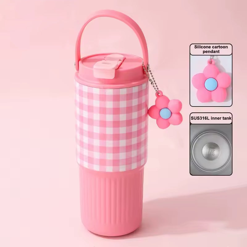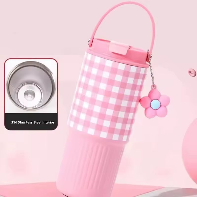 Soft Checkers — a dreamy pastel tumbler wrapped in a gentle lavender gingham pattern, designed for cozy days and aesthetic moments. Featuring an insulated body to keep drinks hot or cold, a secure lid, and an easy-carry handle, it’s perfect for daily routines, picnics, study sessions, or on-the-go sipping.