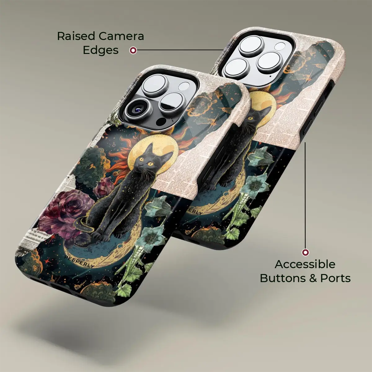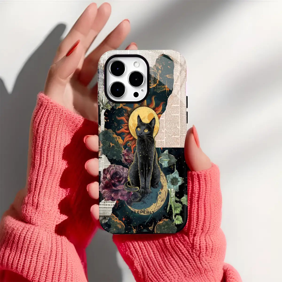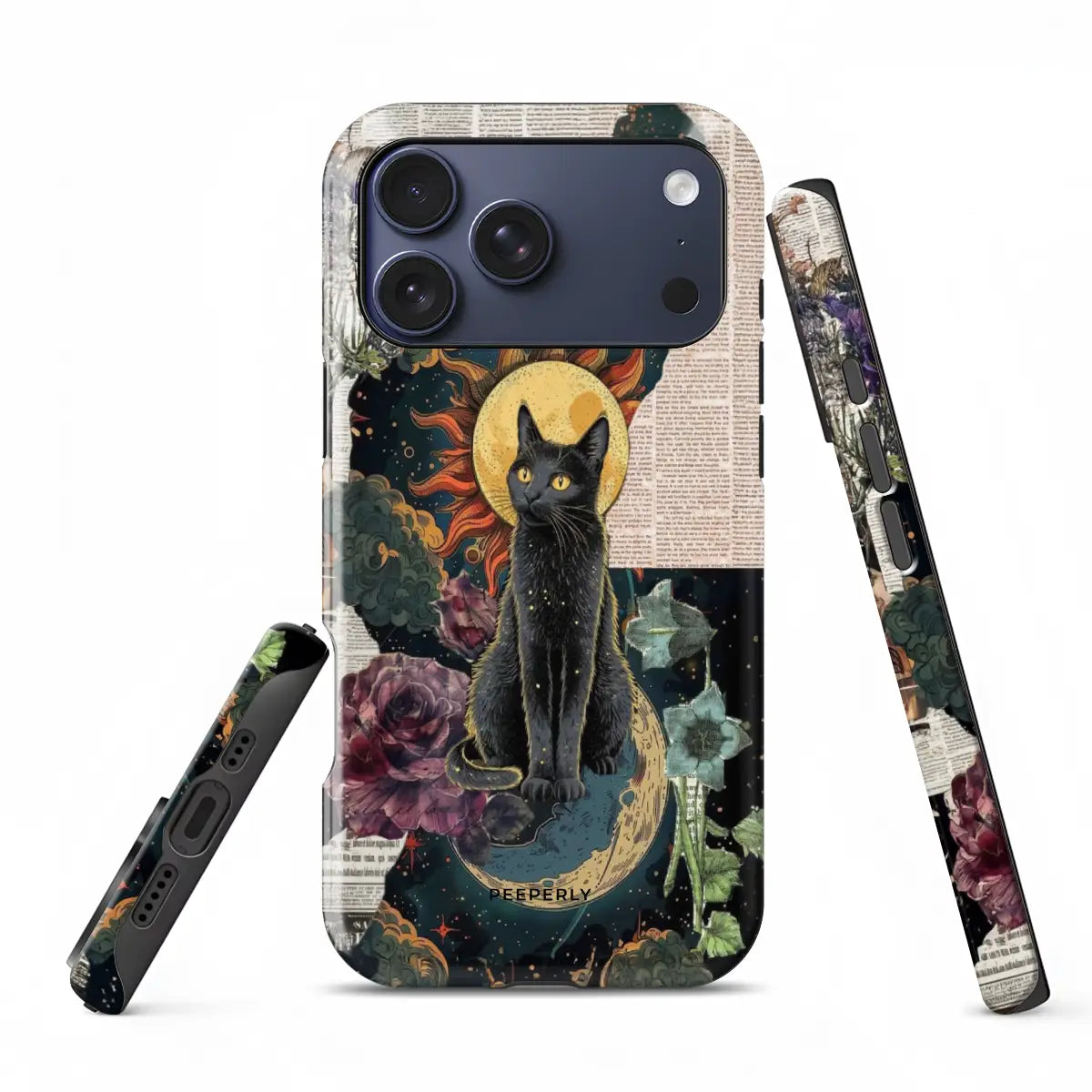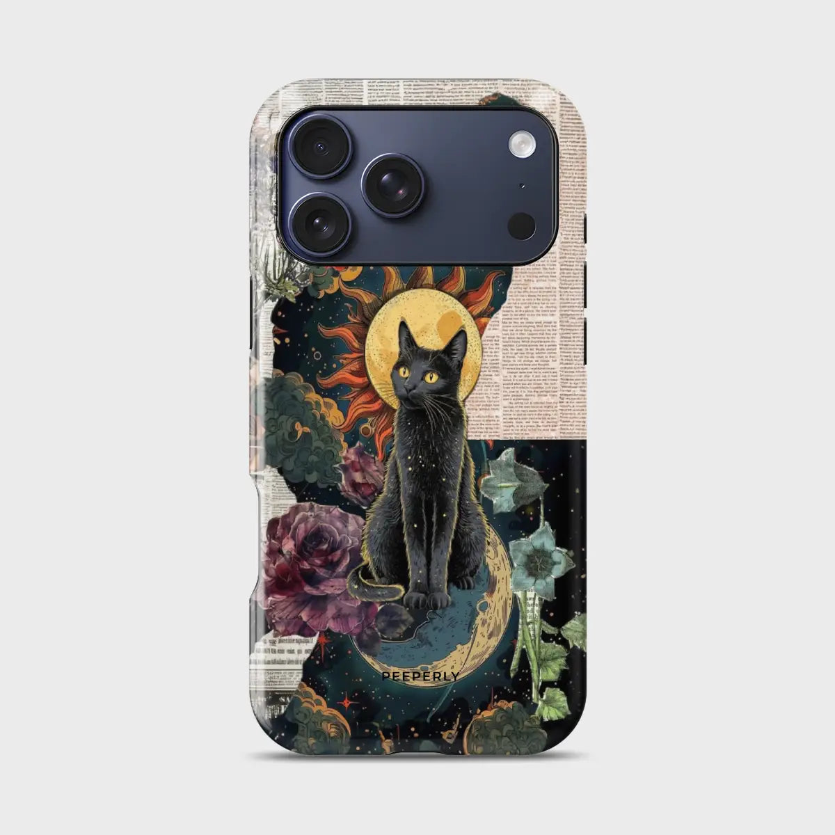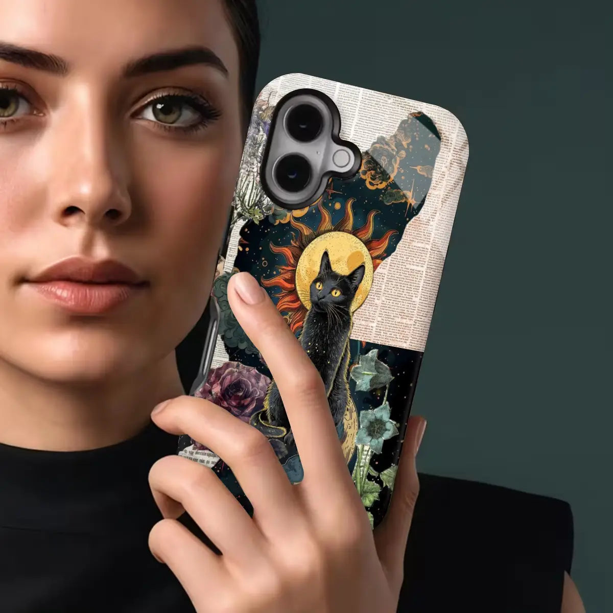 Mystical, artistic, and full of cosmic energy—Solar Moon Cat blends the beauty of celestial elements with a striking feline presence. Featuring a majestic cat framed by the sun and moon, surrounded by dreamy textures and floral accents, this design feels both magical and timeless.