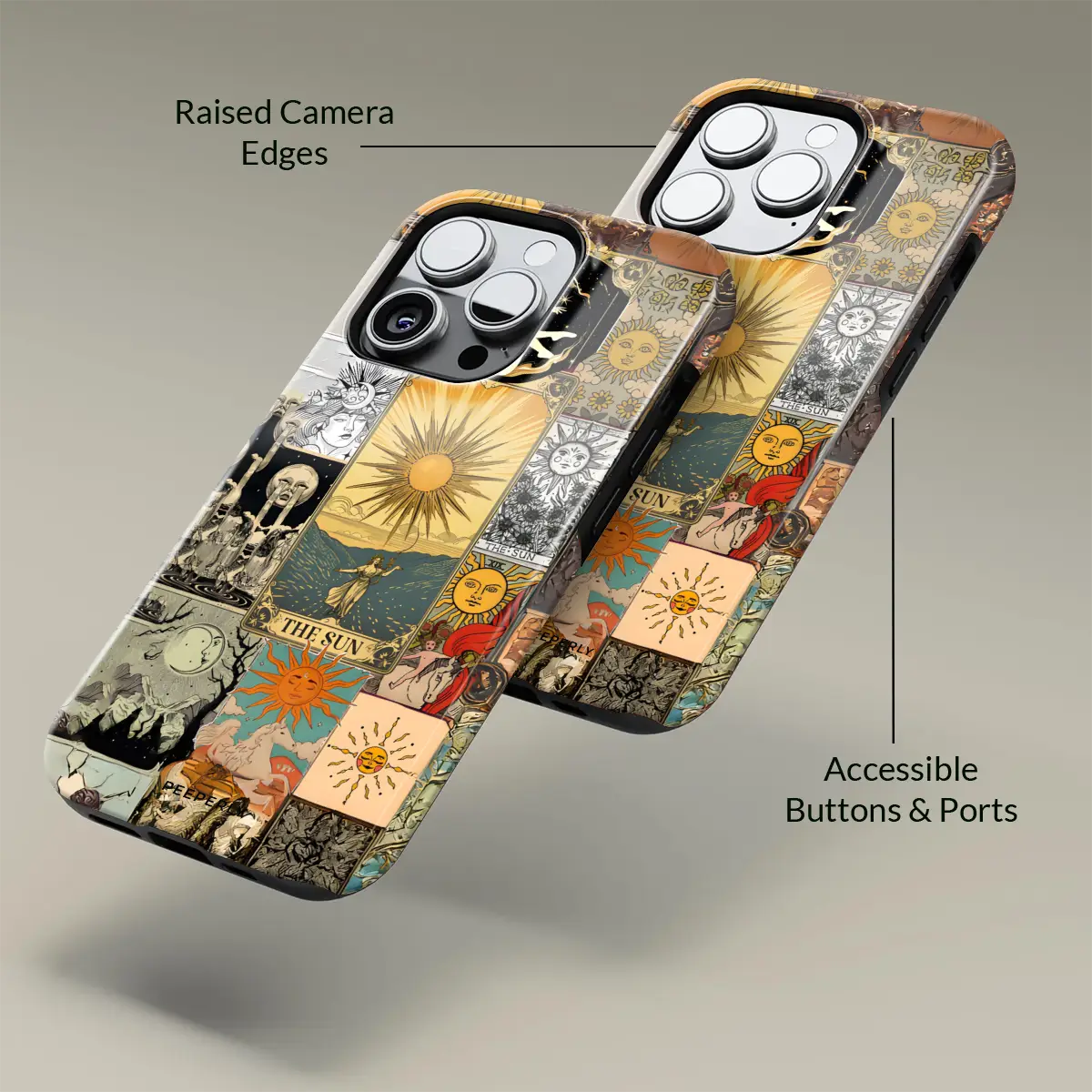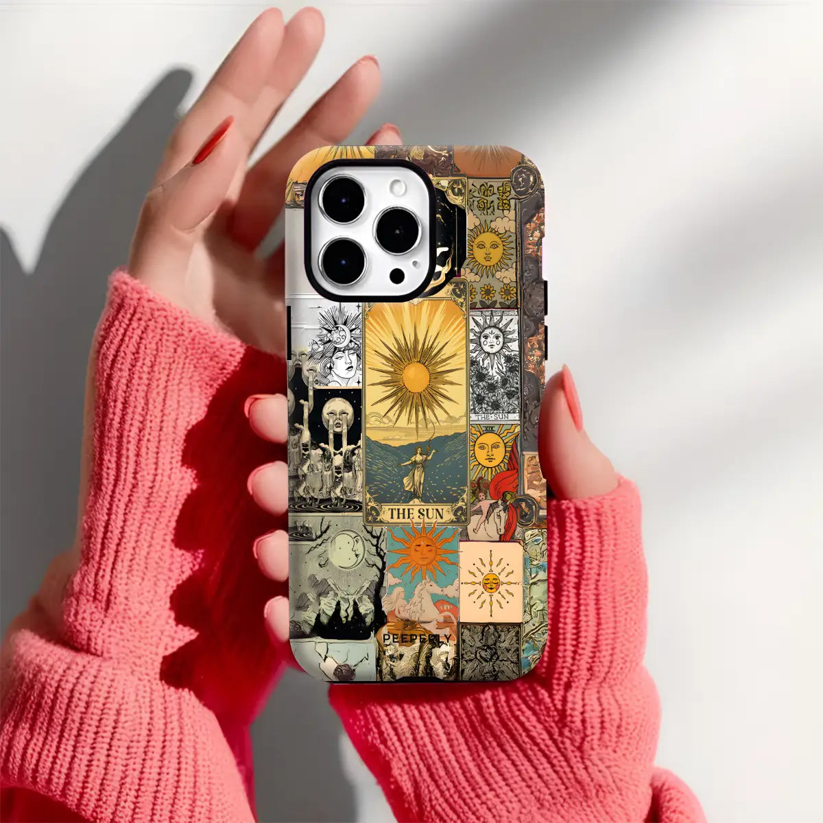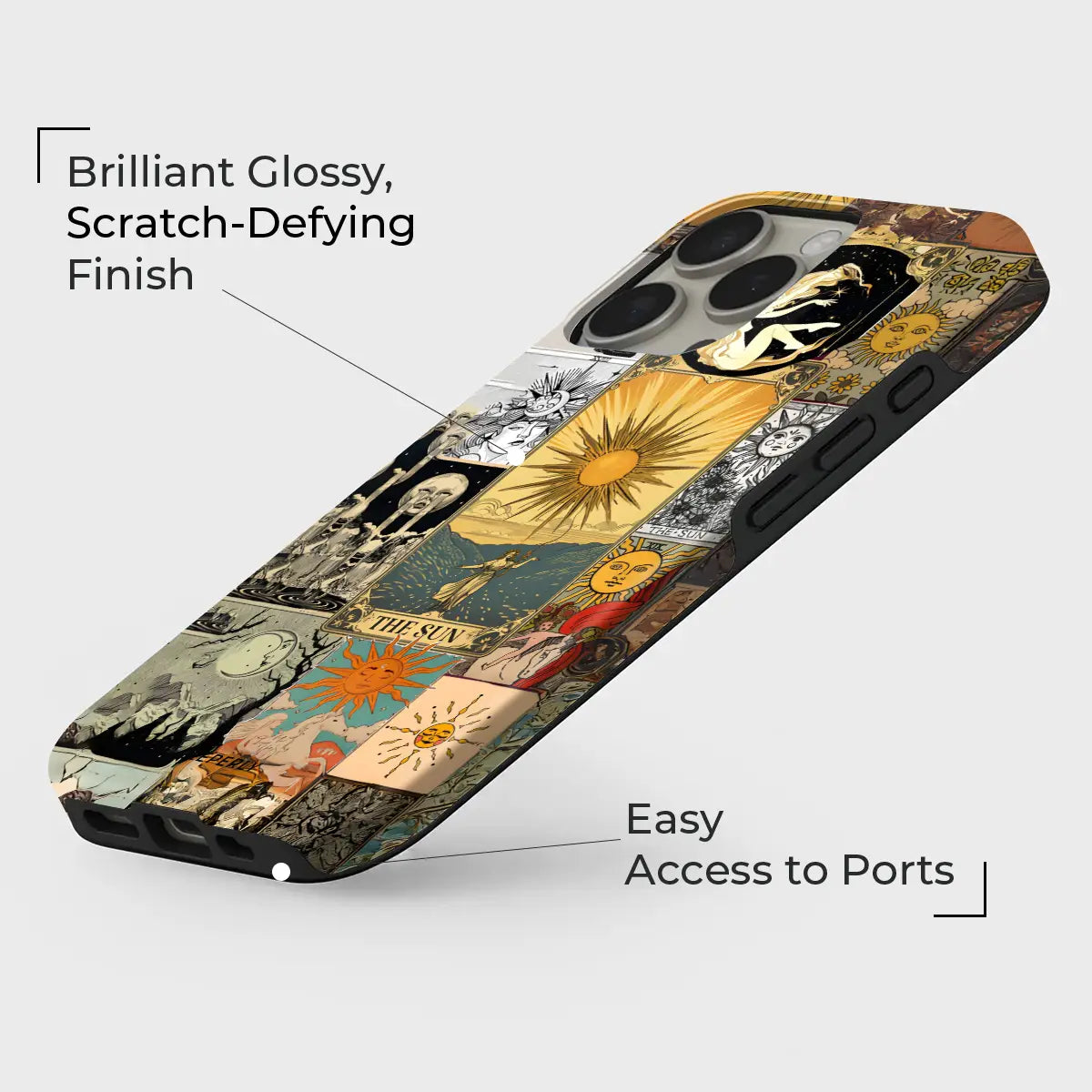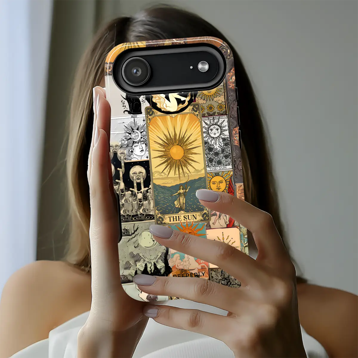 Solar Prophecy weaves together a striking collage of vintage Sun tarot imagery, drawing from centuries of esoteric art and symbolism. Layered illustrations—golden suns, celestial figures, and arcane scenes—merge into a powerful visual narrative centered on illumination, truth, and divine clarity. The warm, timeworn palette gives the design an antique, almost talismanic presence.