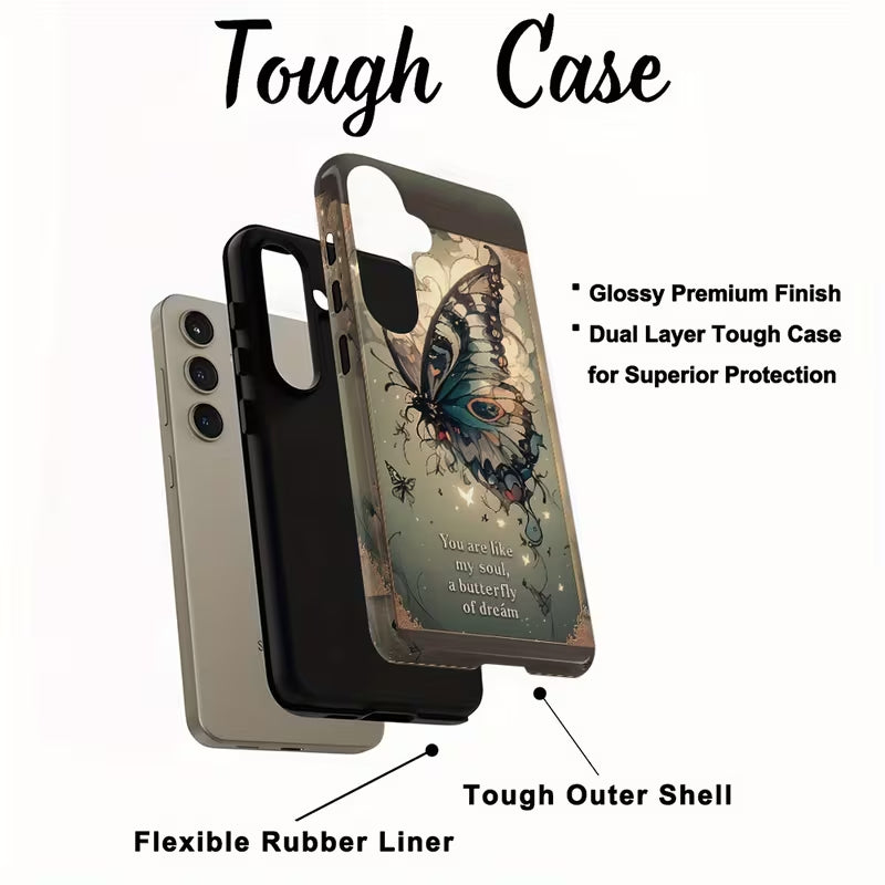 Let your phone carry a whisper of dreams with Soul Flutter. Inspired by delicate butterfly wings and poetic elegance, this case blends soft artistry with everyday protection. Its dreamy design captures the feeling of lightness, freedom, and inner beauty—perfect for those who move through life with quiet grace and a soulful aesthetic.