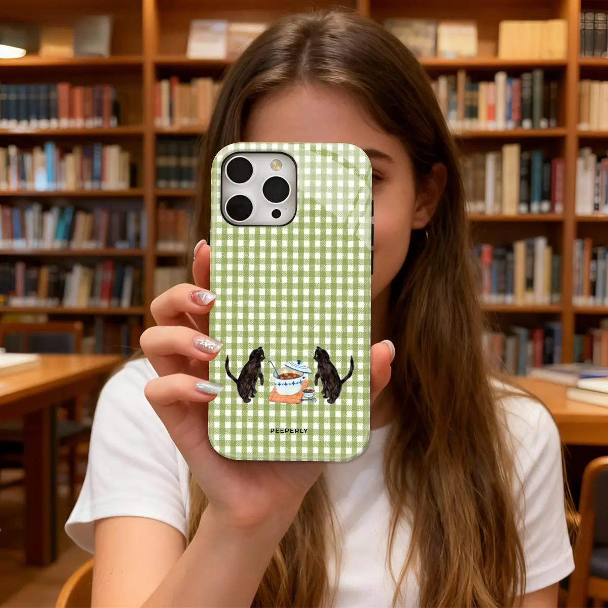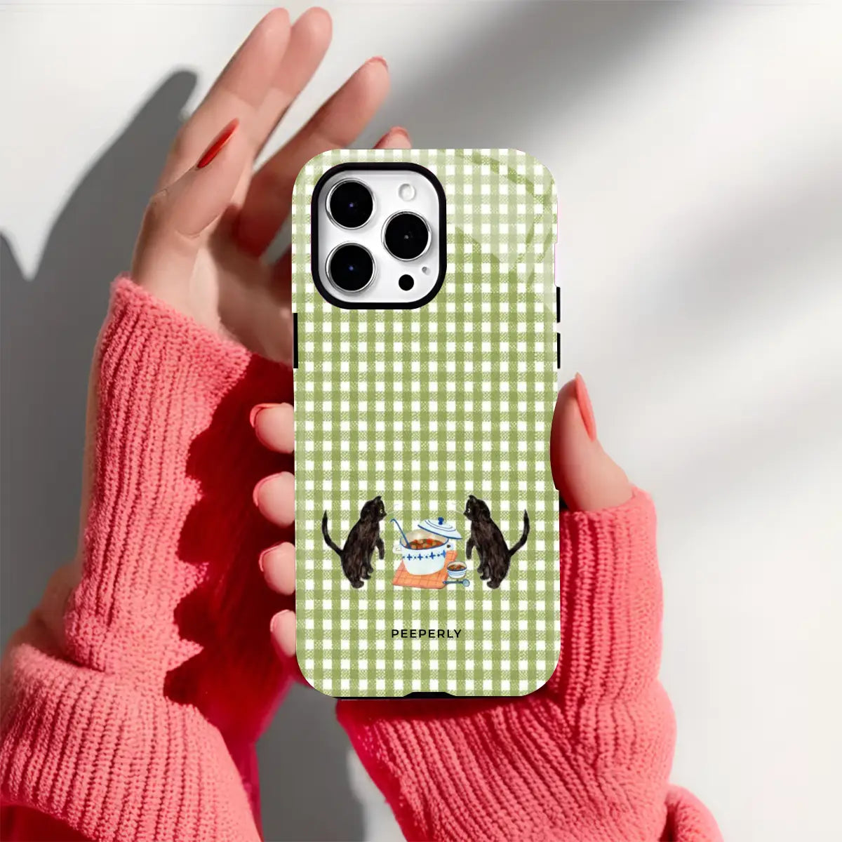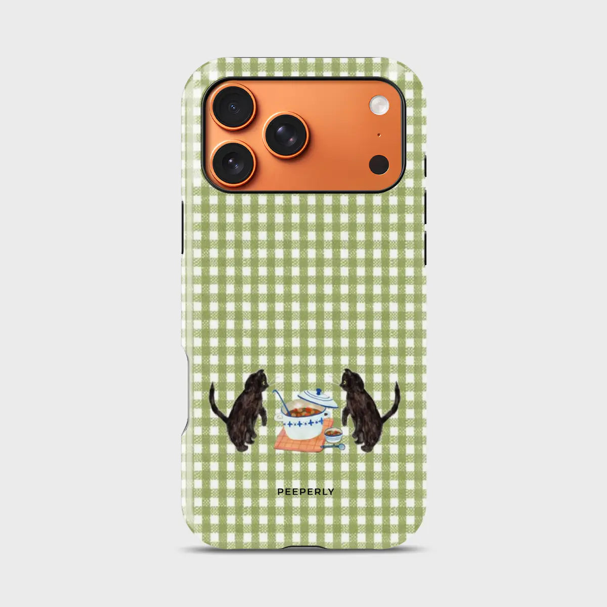 Warm, wholesome, and full of charm—Soup Pals captures a cozy kitchen moment shared between two adorable kitties. Set against a soft gingham backdrop, this design brings a comforting, homey vibe that feels like a quiet afternoon filled with simple joys.