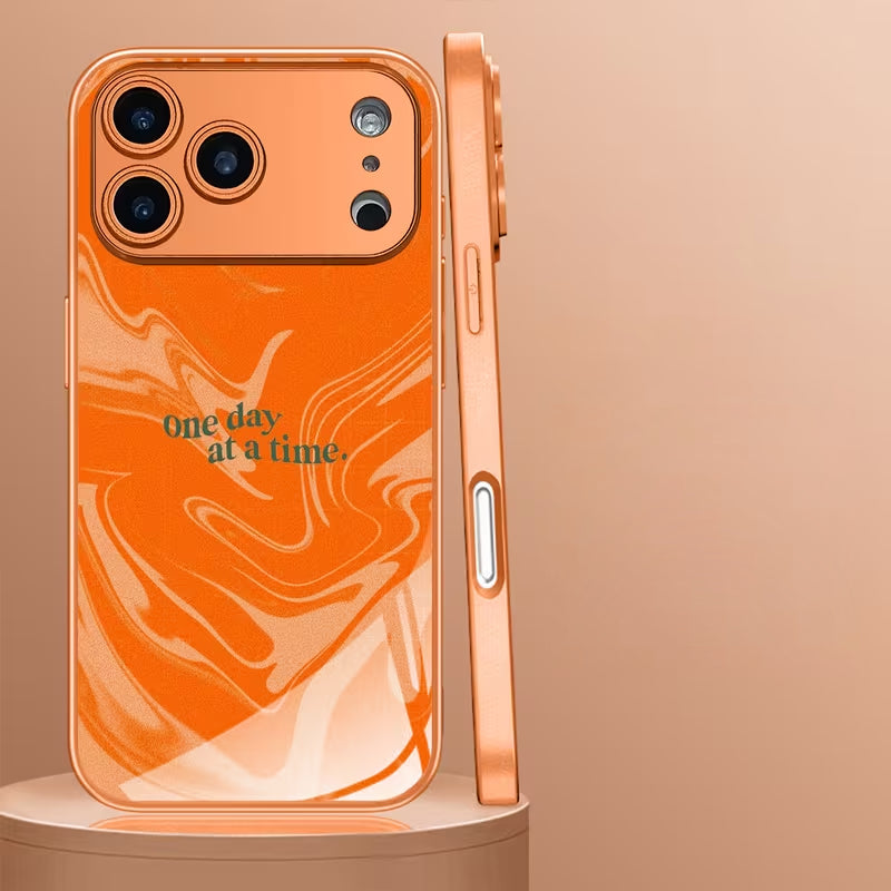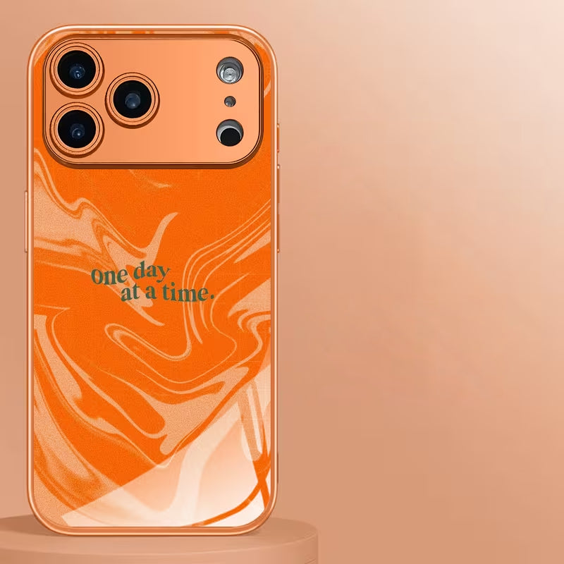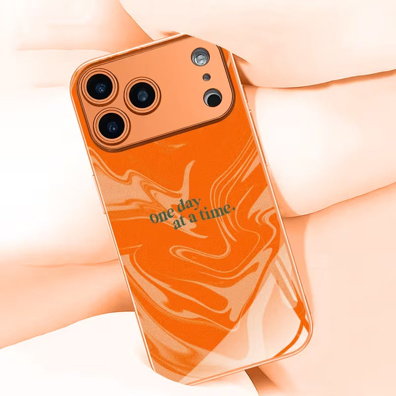 A stylish marble-inspired case designed to remind you to move forward with calm and confidence. Its smooth orange swirl pattern pairs beautifully with the uplifting message “One day at a time,” creating a daily dose of motivation right in your hands.