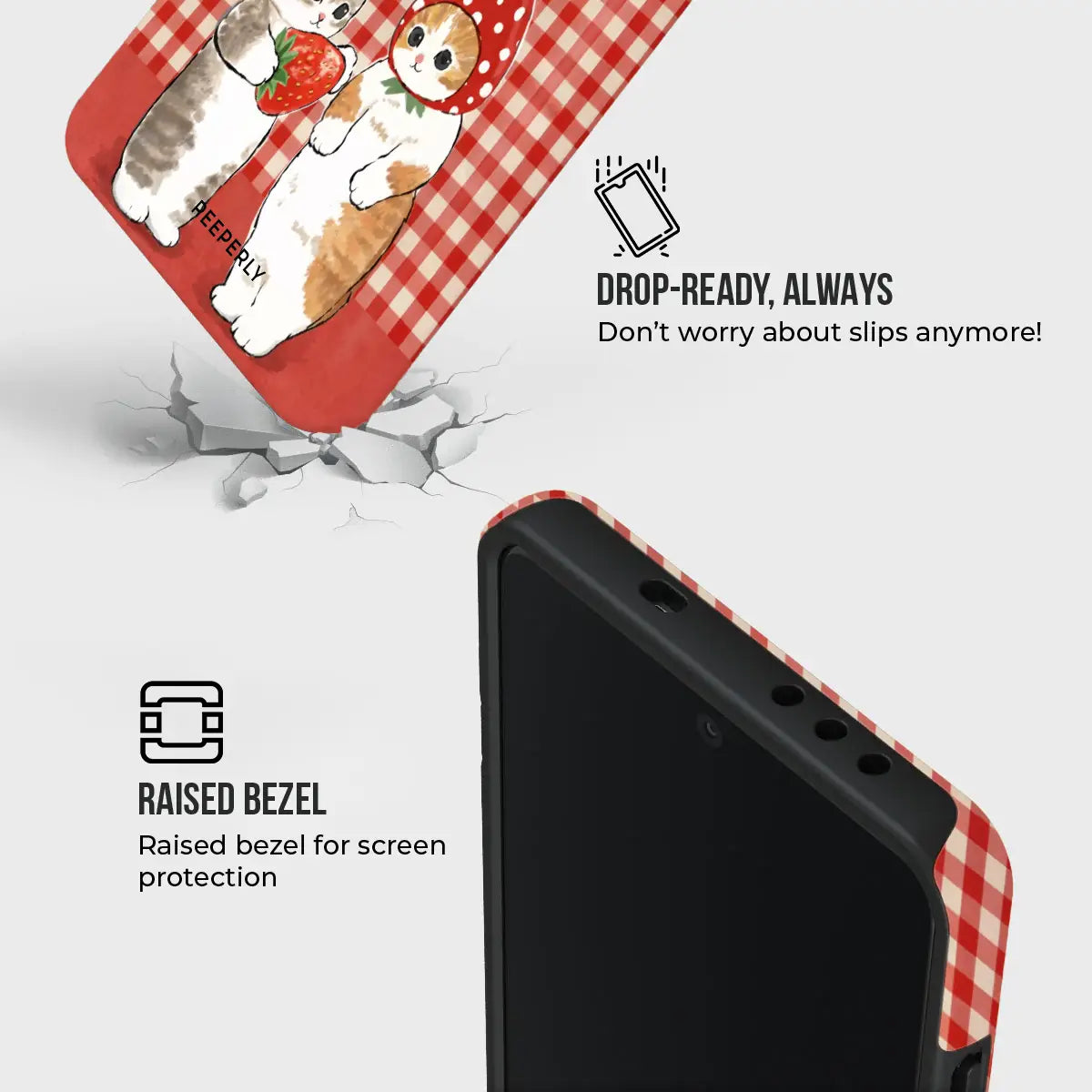 Sweet, playful, and full of charm—Strawberry Pals captures the joy of friendship in the cutest way. Featuring two adorable kitties sharing a strawberry moment against a cozy gingham backdrop, this design radiates warmth, happiness, and wholesome vibes.