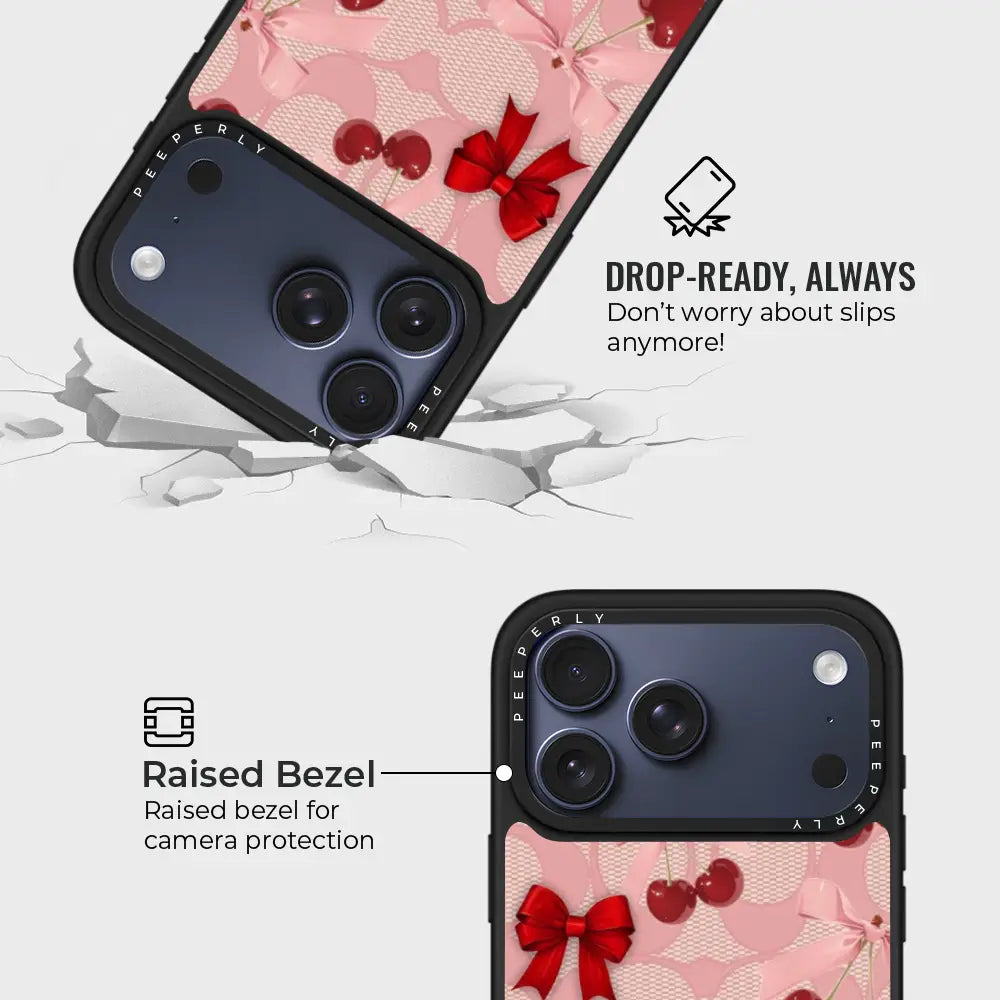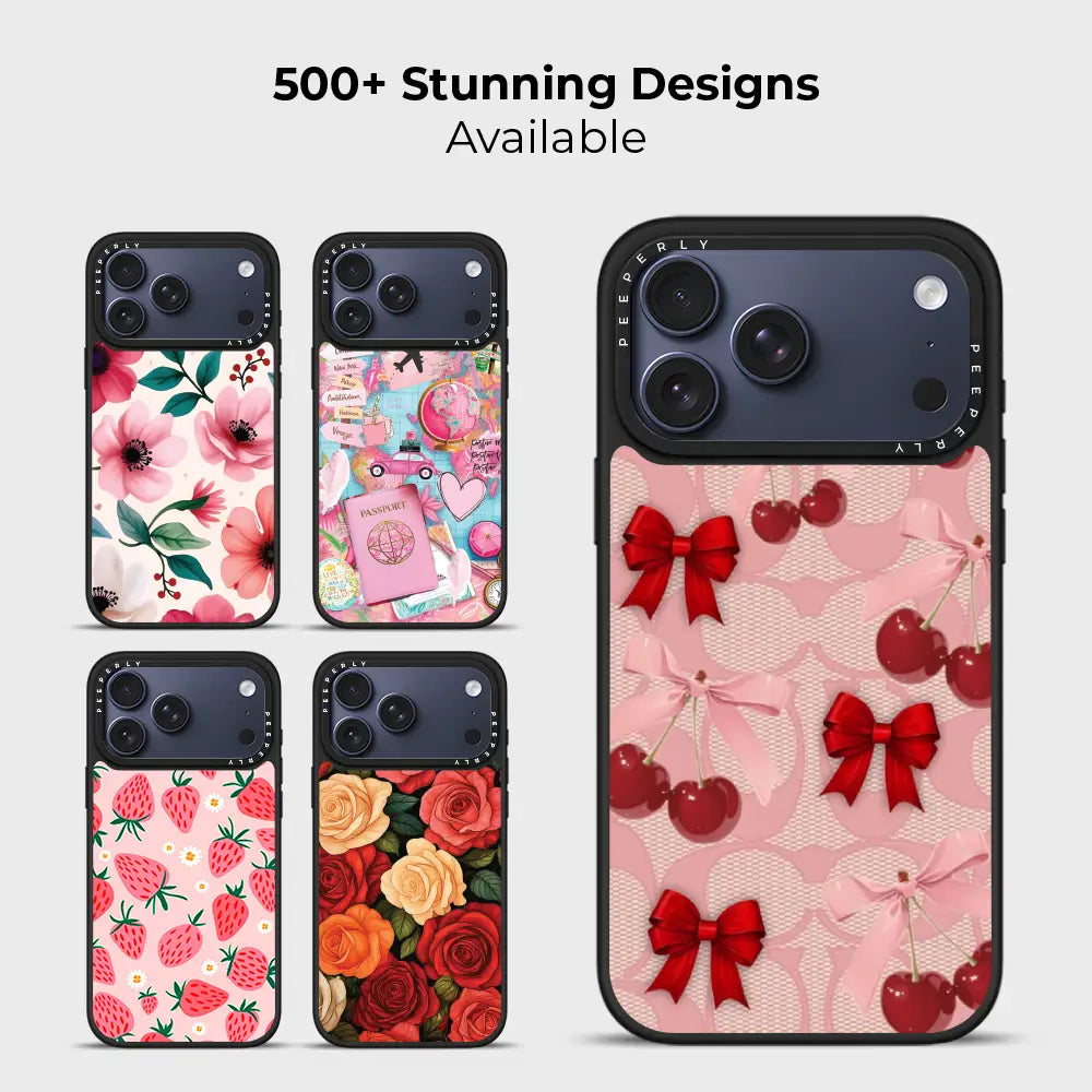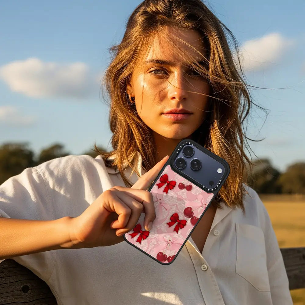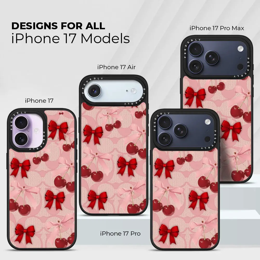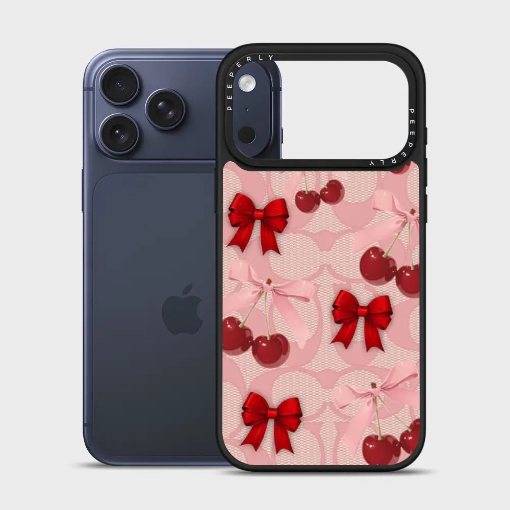 A dreamy pink blend of glossy cherries and dainty ribbon bows, sprinkled with soft romantic charm. This design feels sweet, playful, and effortlessly elegant—like a candy-coated love note wrapped in satin.
